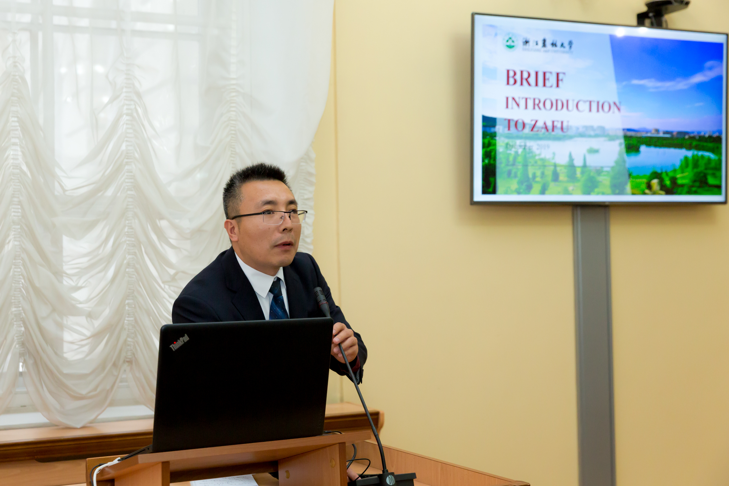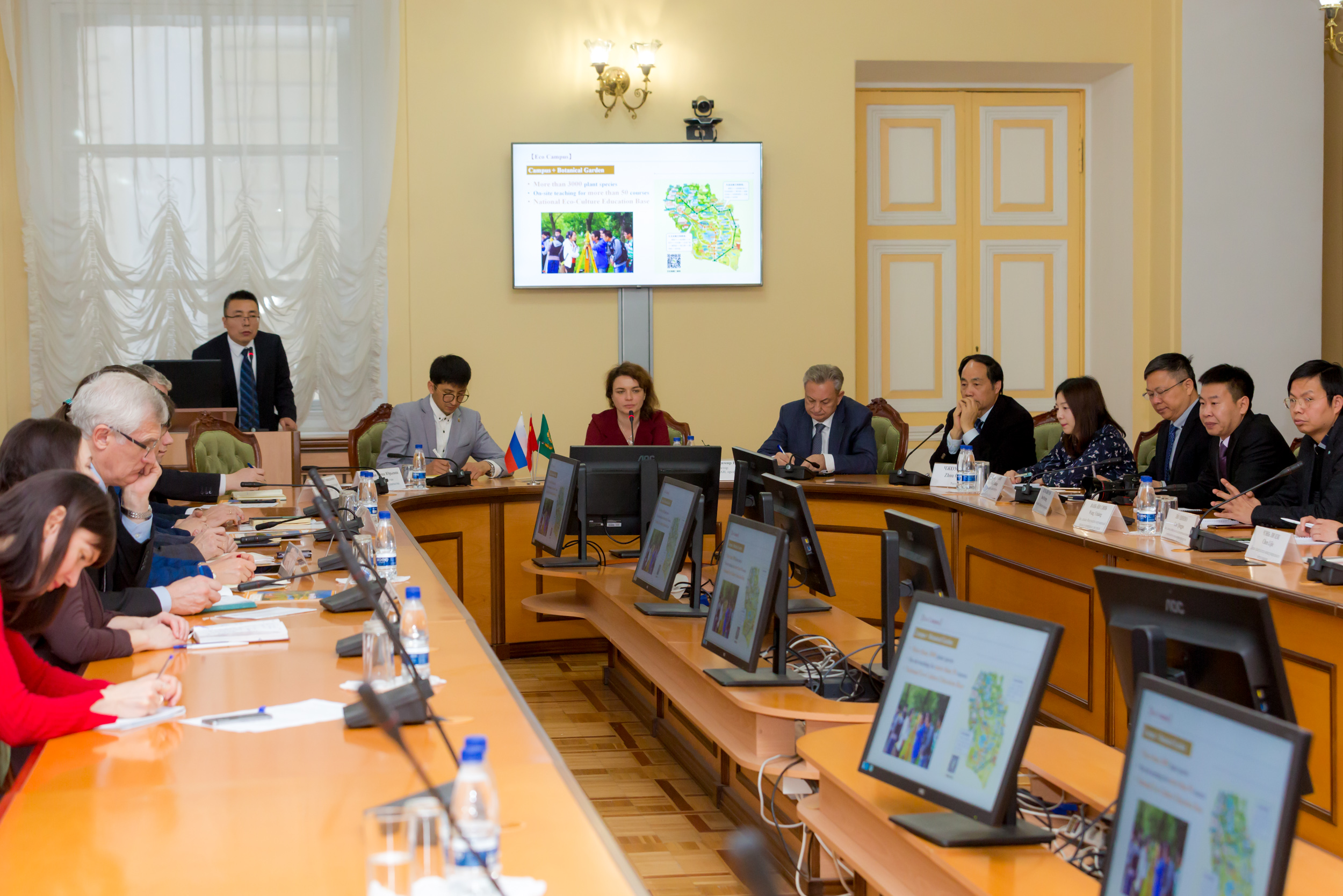 Китайская делегация выступила с широкой презентацией своего вуза, который за 60-летнюю историю прошел путь от лесоводческого колледжа до 114 строчки рейтинга китайских университетов, а по обустройству кампуса в текущем году стал абсолютным лидером среди более чем 1200 университетов КНР.