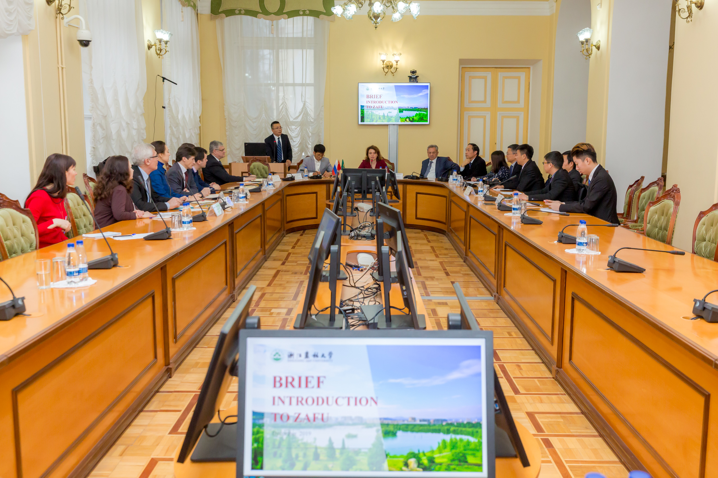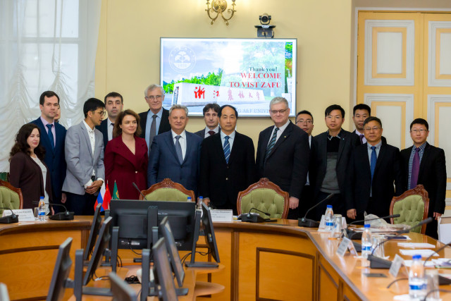 16 декабря в нашем университете побывала делегация Чжэцзянского сельскохозяйственного и лесного университета (ZAFU) во главе с ректором, г-ном Гу Мо Чжоу. В делегацию вошли представители четырех факультетов: факультета агропромышленности и технологии пищевых продуктов, инженерного факультета, факультета окружающей среды и природных ресурсов, факультета международного образования, а также руководитель магистерского направления обучения.