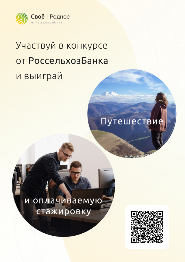 В рамках продвижения отечественной фермерской продукции и принципов здорового питания лидер по финансированию российского АПК АО «Россельхозбанк» приглашает студентов и преподавателей принять участие в Конкурсе амбассадоров цифровой экосистемы «Своё родное».