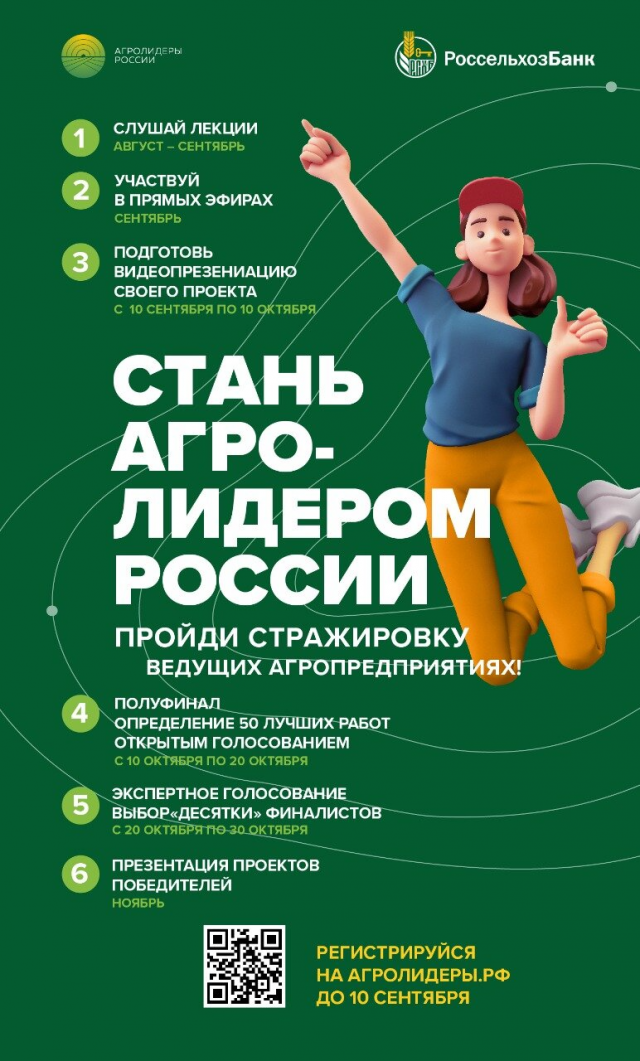 Россельхозбанк объявил о старте образовательного блока проекта «Агролидеры России». Студентам, до 10 сентября прошедшим регистрацию в проекте, будет открыт доступ к лекциям менторов – руководителей и ведущих специалистов компаний аграрного сектора экономики.
