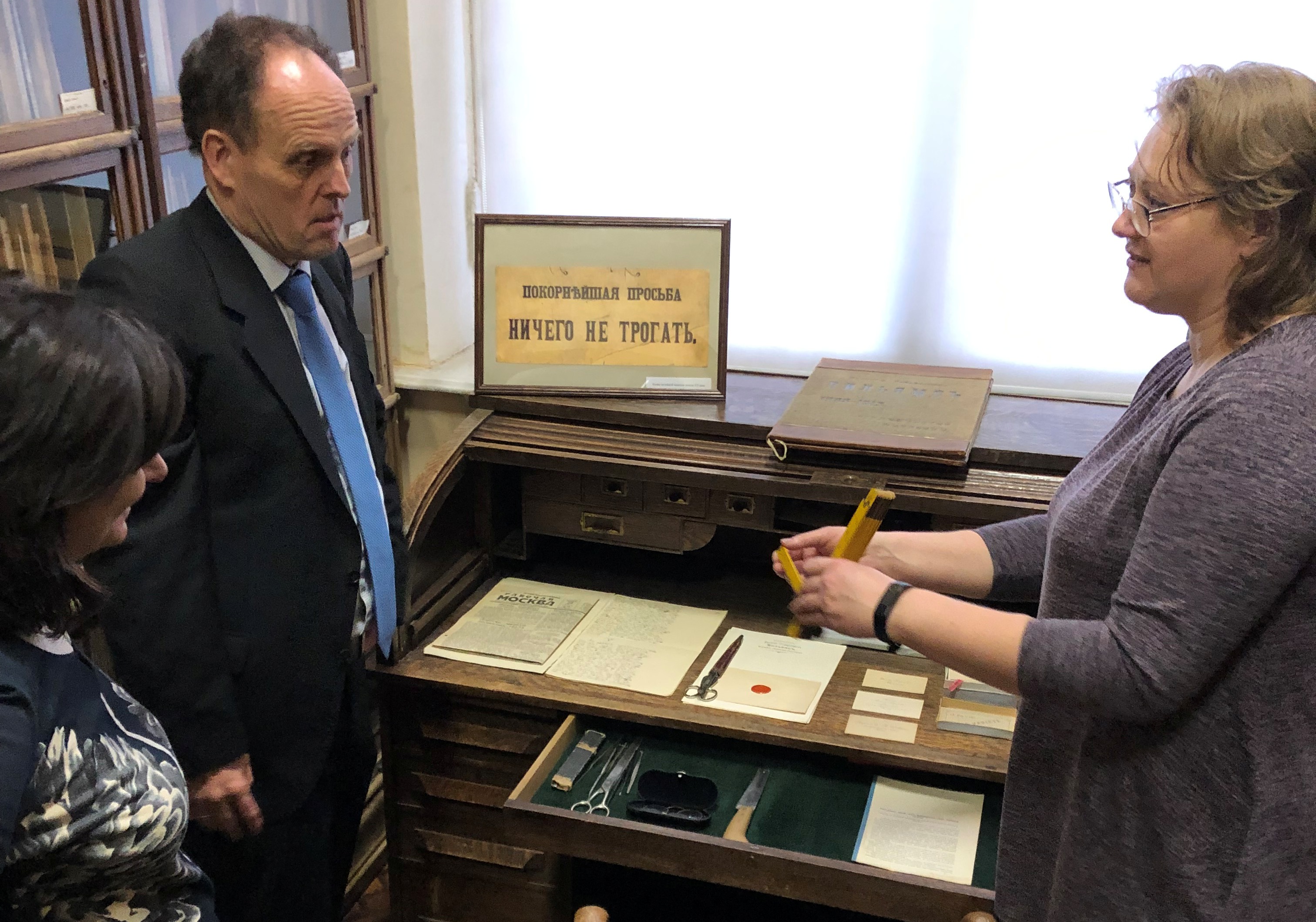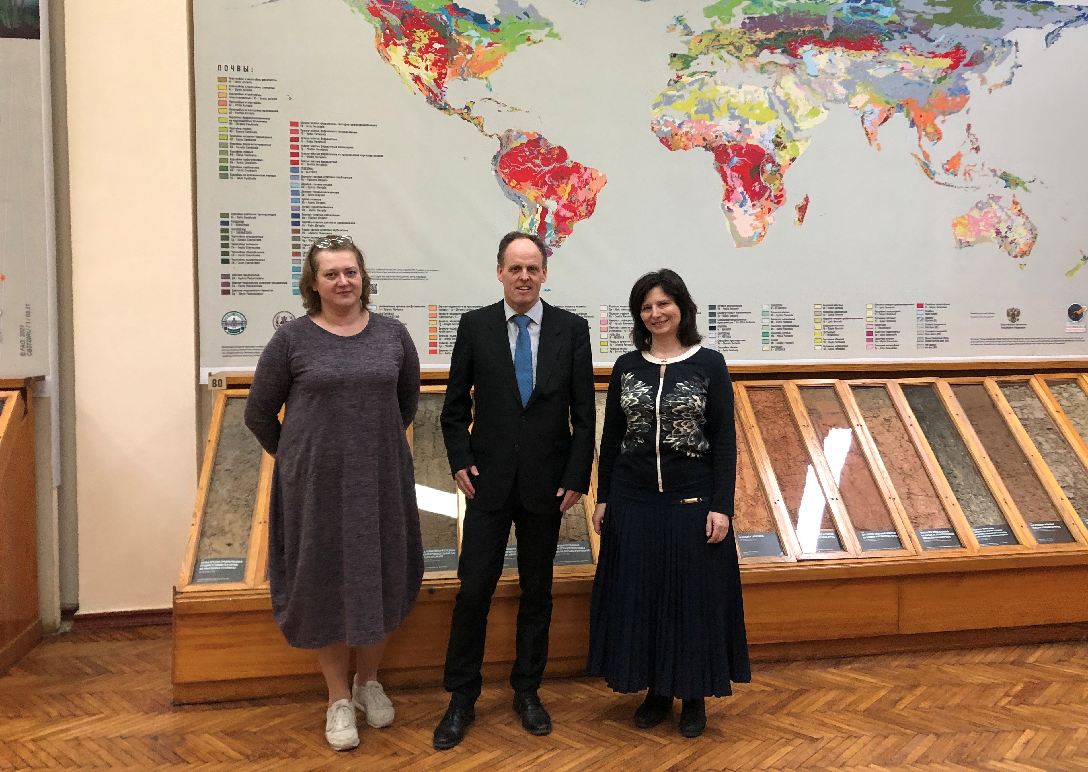 В рамках визита в университет глава LOGO e.V. Хартвиг Меннен посетил Почвенно-агрономический музей имени В.Р. Вильямса. Руководитель музея Ирина Николаевна Селиверстова представила гостю уникальные экспозиции, в числе которых 900 почвенных монолитов от Северного ледовитого океана до тропиков и субтропиков. Возраст многих экспонатов – более 100 лет, они являются экологическими памятниками природы.