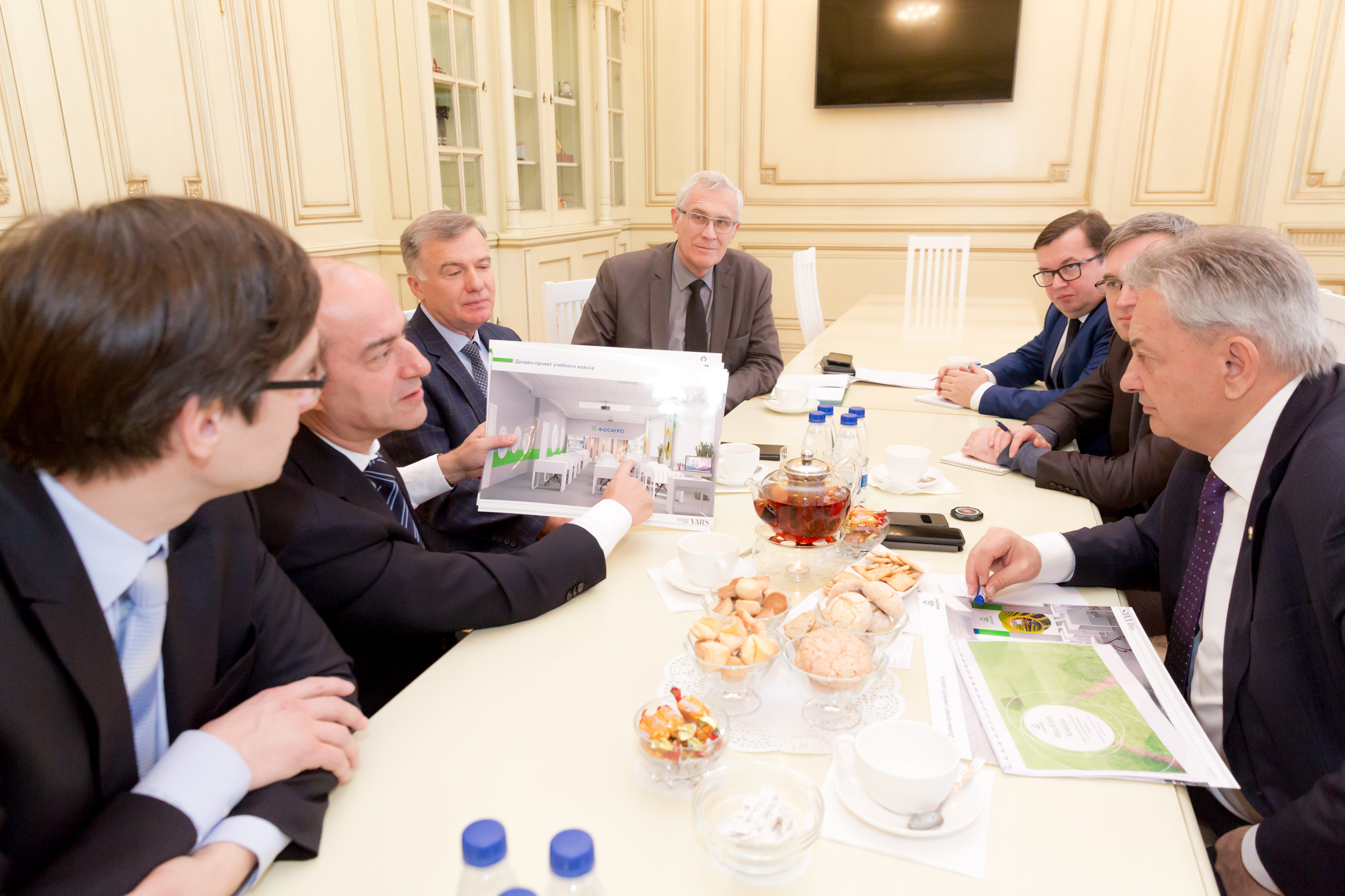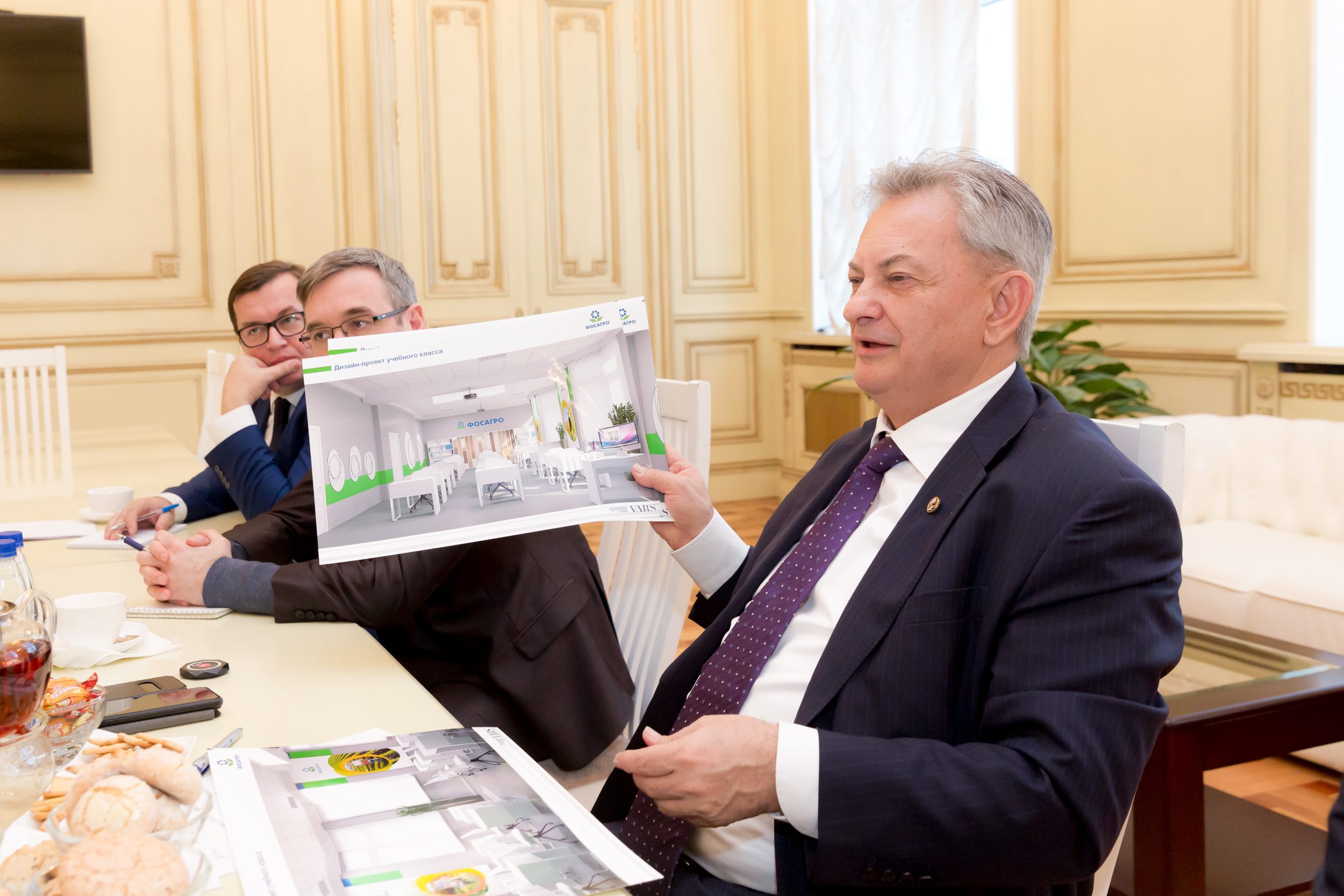 На переговорах обсуждались направления сотрудничества Тимирязевки с компанией «ФосАгро». В частности, В.И. Трухачев поддержал инициативу по созданию на базе Тимирязевки профильного класса «ФосАгро». Компания берет на себя многое – от ремонта помещения до дизайна и оснащения его оборудованием. Причем достигнута договоренность о начале этого проекта в самое ближайшее время.