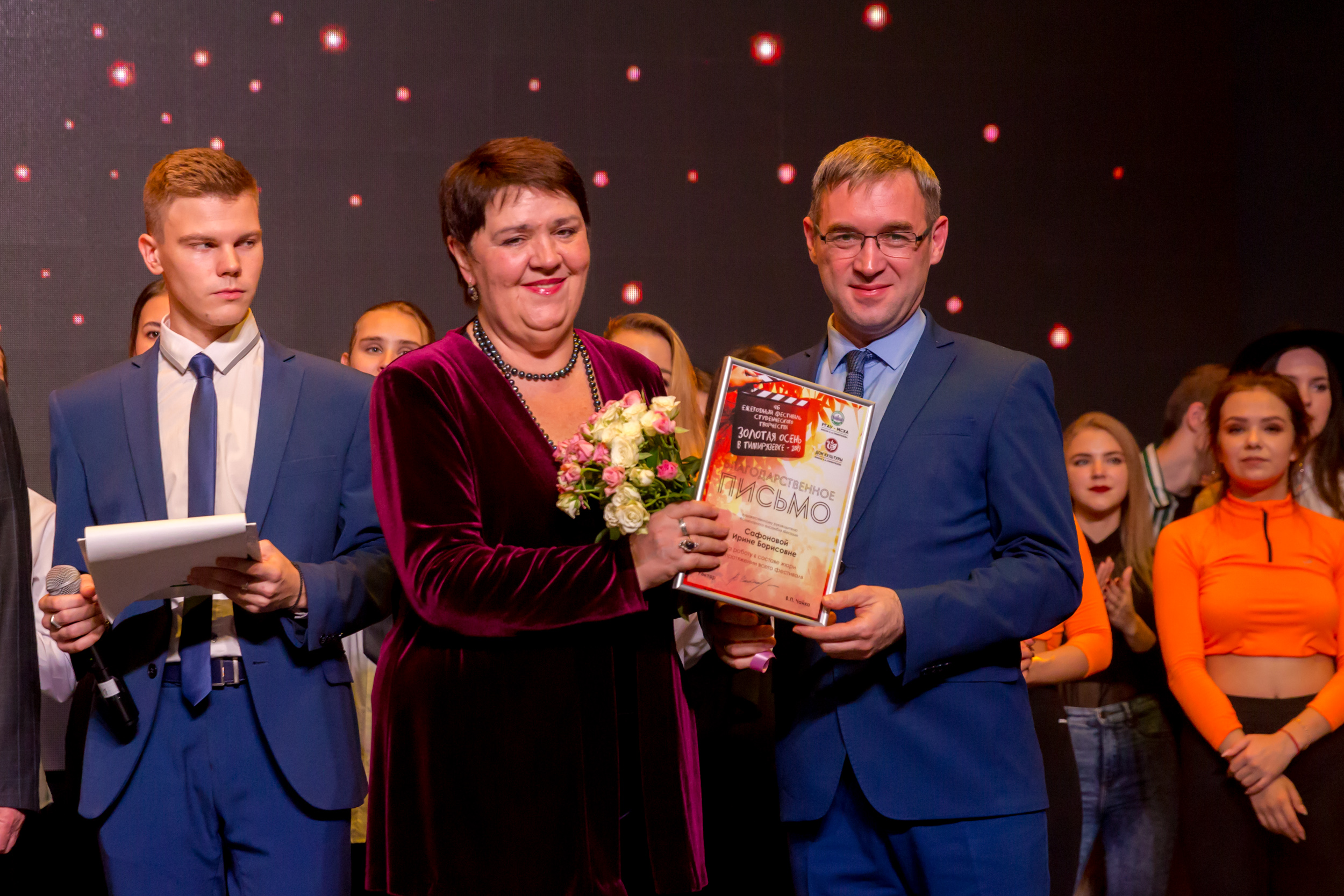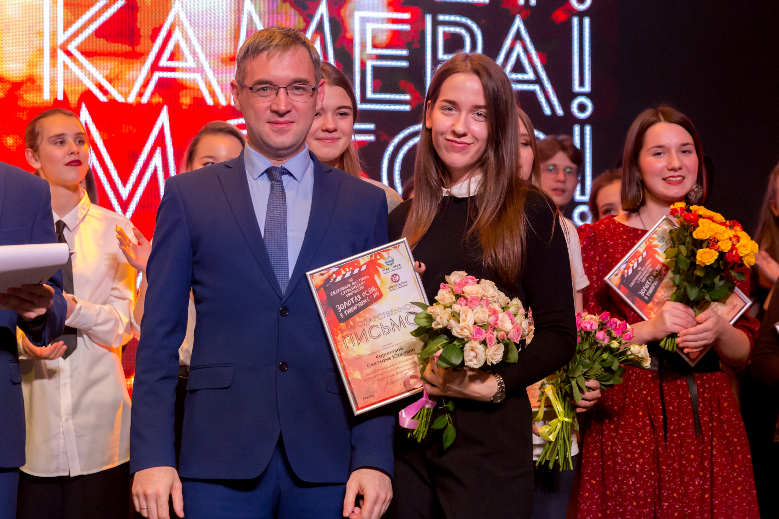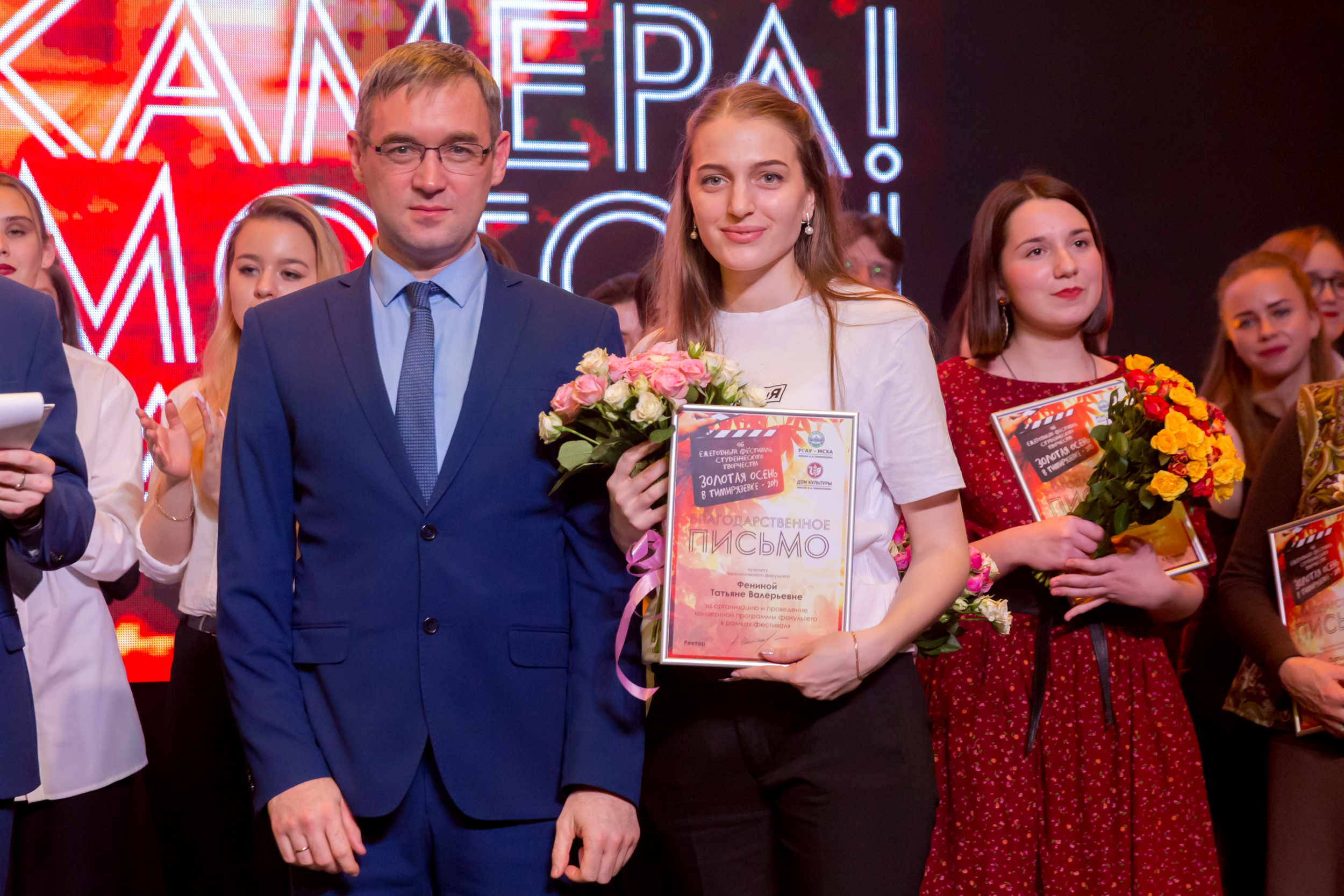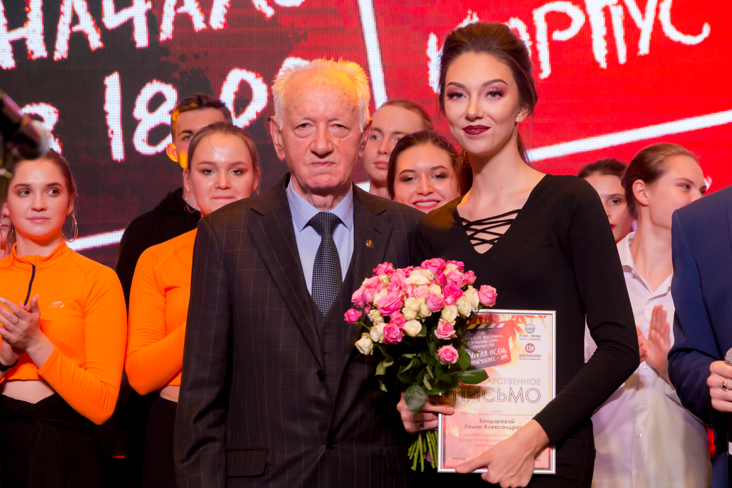 Членам жюри - директору ДК Ольге Папцовой, режиссеру Антону Володину, руководителю фольклорного ансамбля «Беседы» Ирине Сафоновой, руководителю вокальной студии Sound Family Кристине Солодковой, специалисту Центра досуга студентов Вадиму Пронину, а также главному культоргу университета Олегу Марусию и культоргам институтов и факультетов за отличную организацию гала-концерта объявлены благодарности ректора Тимирязевки.