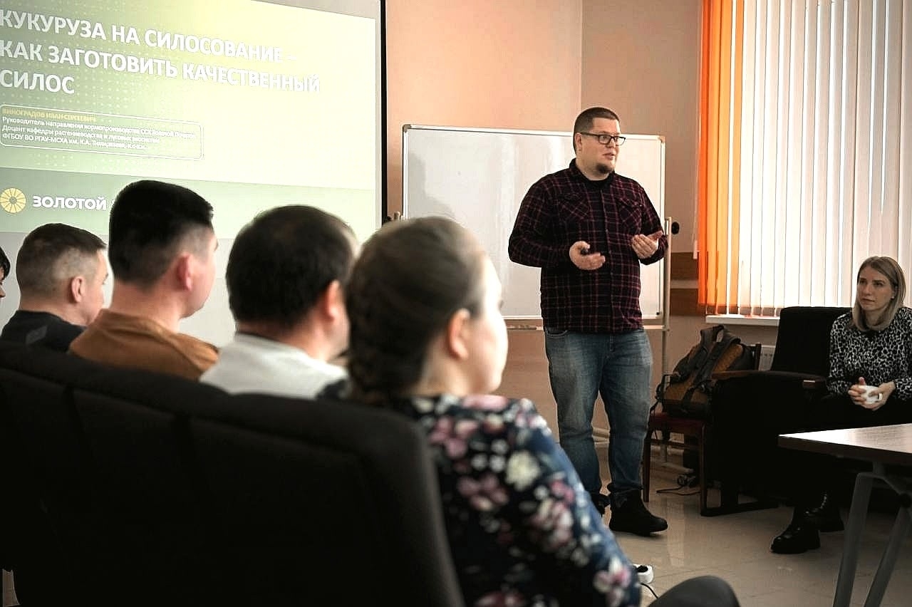 Иван Виноградов представил подробный анализ, касающийся ключевых аспектов качества кормов. В своем выступлении он детально разобрал влияние погодных условий сезона 2025 года на токсичность кормов, а также продемонстрировал преимущества различных сортов и гибридов, имеющих значение для повышения продуктивности животноводства.