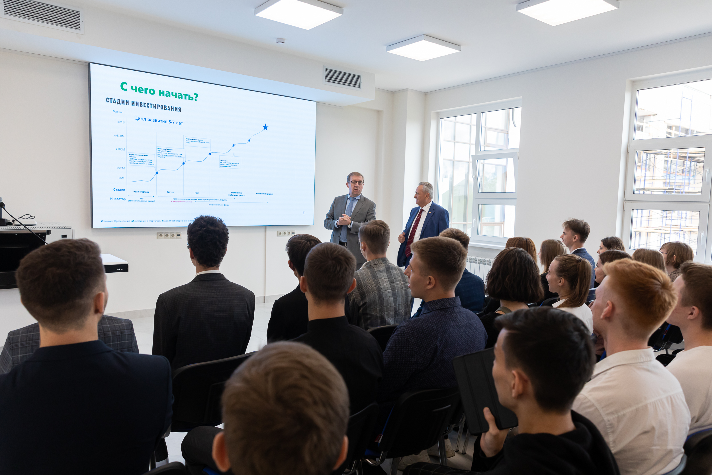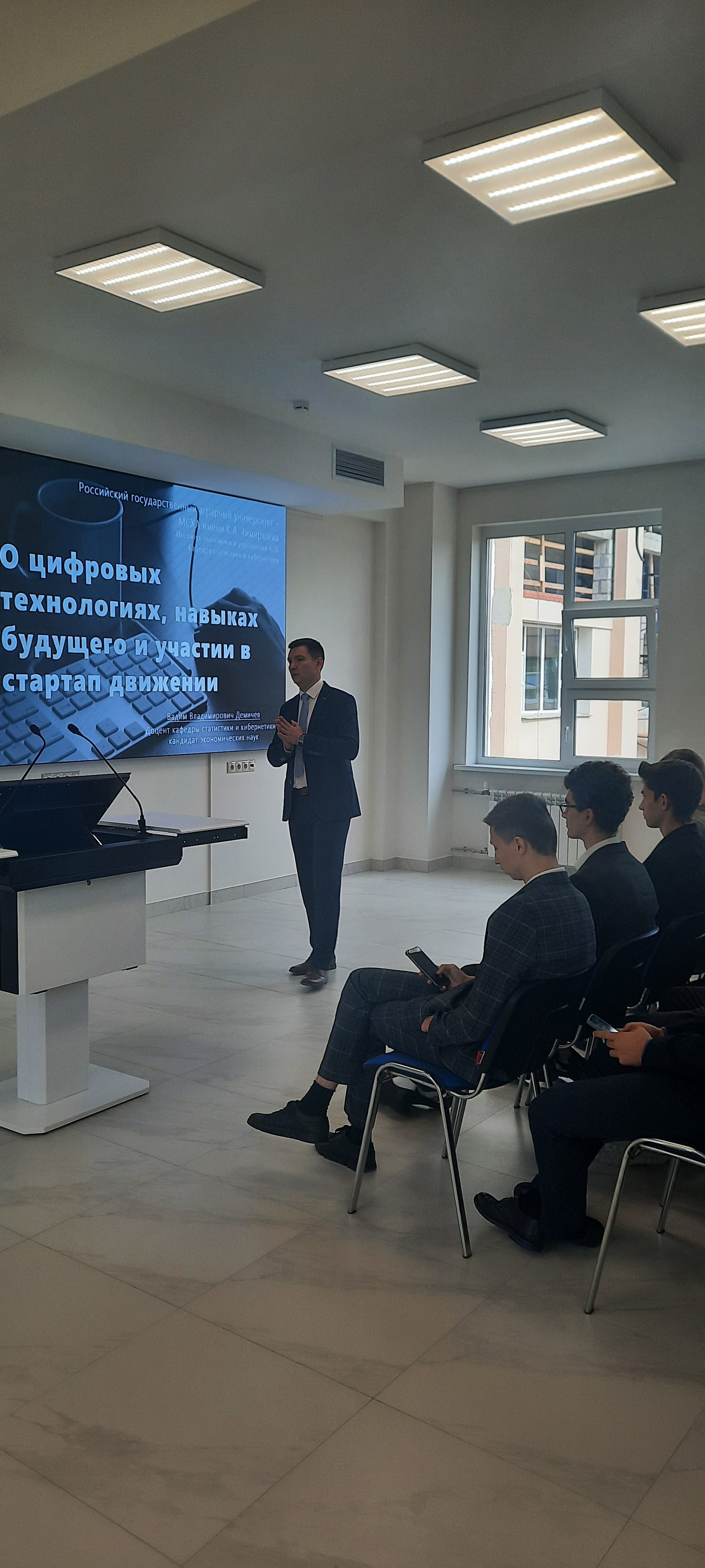 12 Сентябрь / 2022Лекцию для студентов 1 курса прочитал доцент кафедры статистики и кибернетики, кандидат экономических наук Демичев Вадим Владимирович. Она была посвящена изучению наиболее востребованных IT-технологий будущего. Студенты познакомились с особенностями развития и внедрения в бизнес таких технологий, как интернет вещей, интернет тела, блокчейн, цифровые двойники, искусственный интеллект, большие данные, алгоритм GPT-3 и др. Сенатор особенно отметил актуальность рассмотрения на лекции вопроса инвестирования как важнейшей характеристики развития данных технологий.
