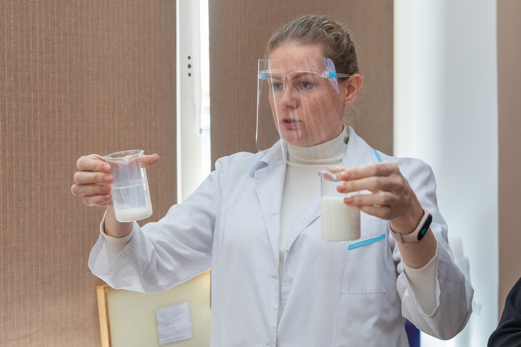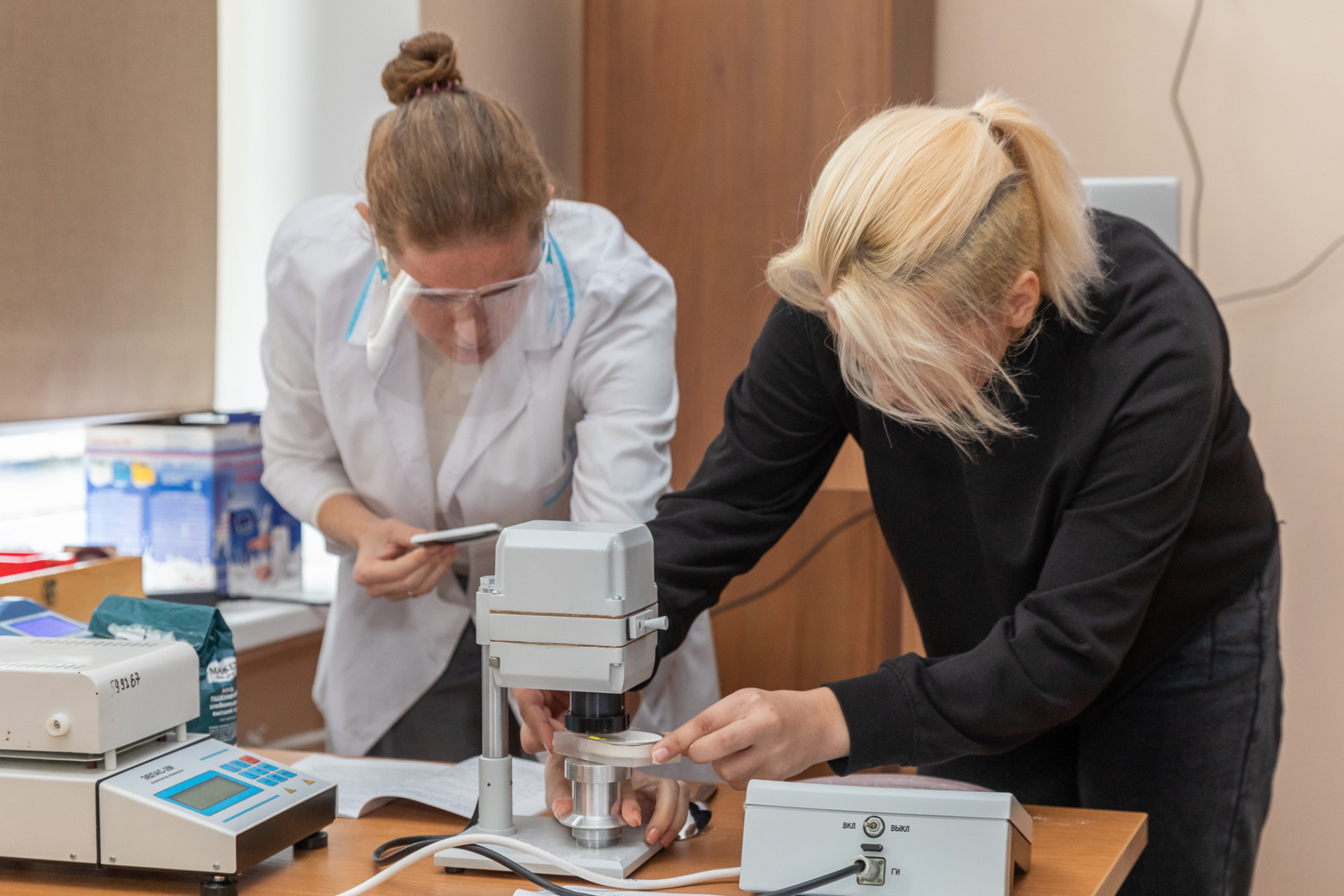 Мастер-класс «Экспертиза пищевых продуктов», организованный кафедрой «Управления качеством и товароведения продукции», провели заведующая кафедрой д.т.н., проф. Дунченко Н.И., к.т.н., доц. Волошина Е.С., и ст.преподаватель Михайлова К.В. На мастер - классе старшеклассники научились проводить дегустационную оценку сыра и определять показатели качества молочных продуктов и муки. Школьники самостоятельно, на приборах, под руководством преподавателей, проводили определение качественных показателей продуктов. Преподаватели кафедры рассказали, как правильно делать заключение и выводы по результатам исследования качественных показателей продуктов питания. Мастер-класс завершился дегустацией проверяемых продуктов с заполнением дегустационных листов.