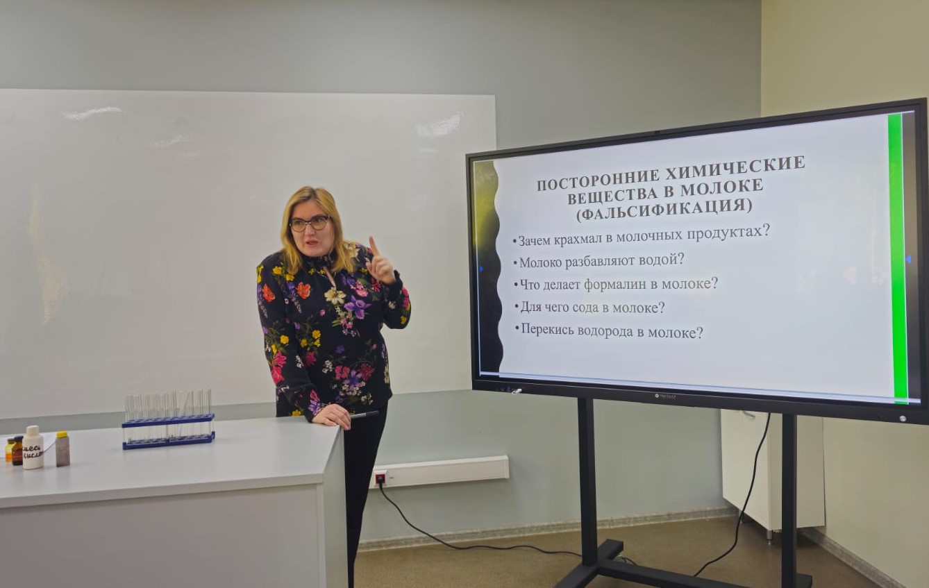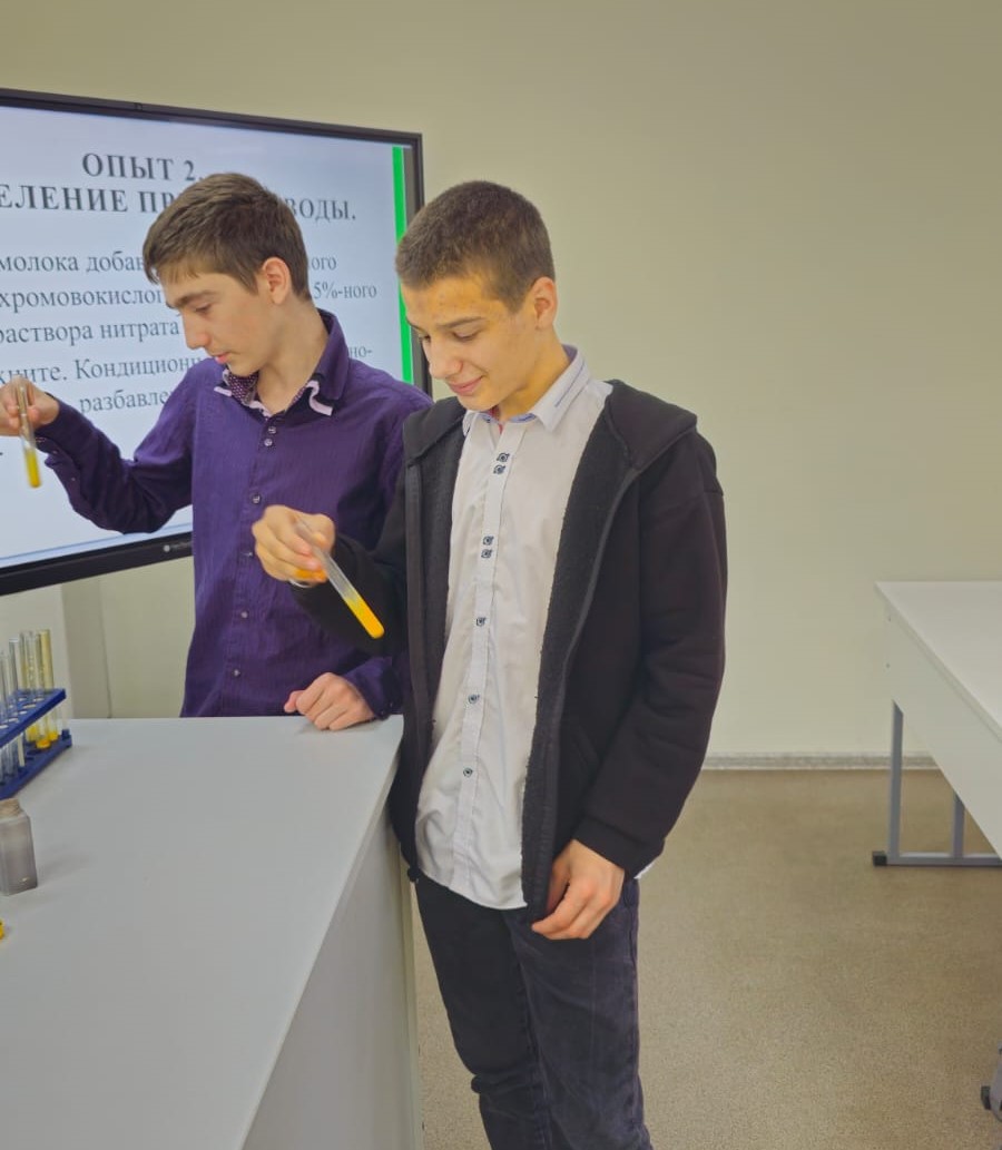 В рамках занятий в агроклассах в г.о. Сергиев Посад, п. Березняки доцентом кафедры частной зоотехнии Сычевой И.Н. было проведено занятие о введении в профессию лаборант-исследователь, на котором учащиеся смогли провести реакции, позволяющие определить наличие в цельном молоке воды, крахмала и формалина.