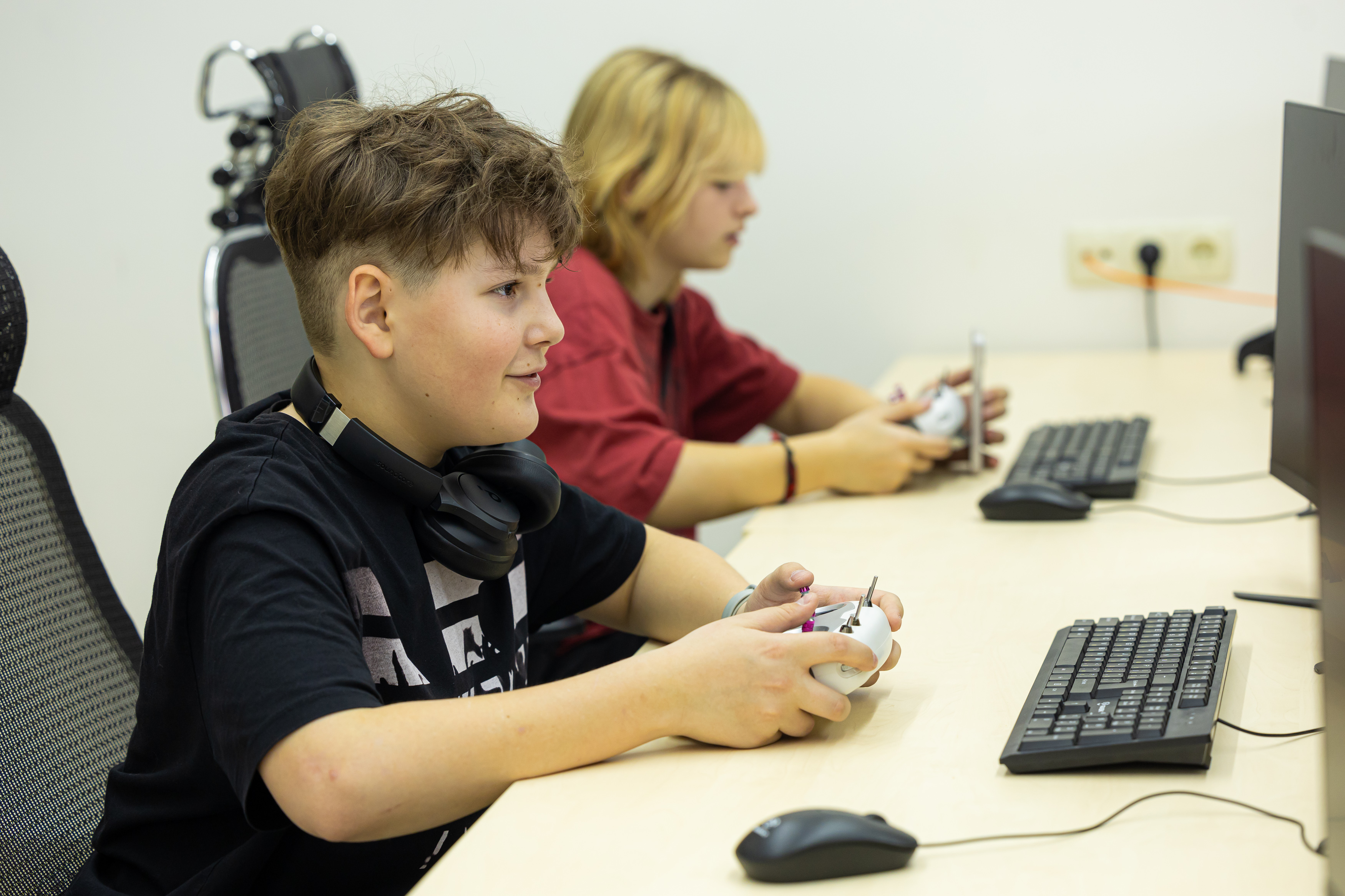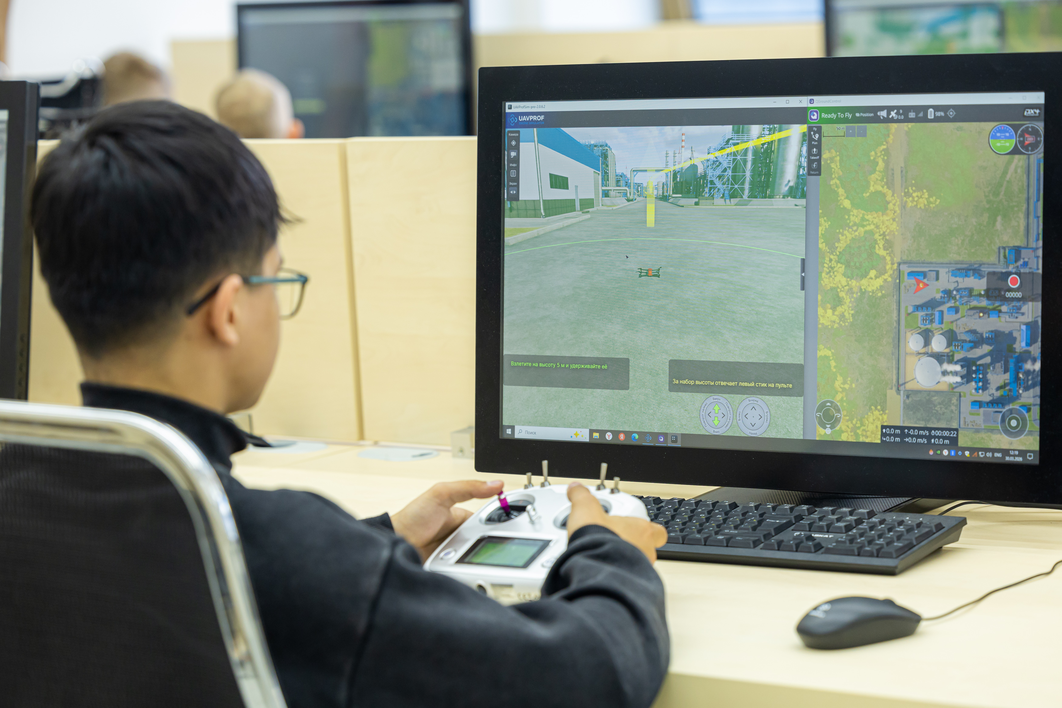 Закрепить теоретические знания на практике ребята смогли на следующем этапе. На базе учебного центра участники протестировали свои навыки на профессиональных симуляторах полётов. Обучение проходило с использованием эмулятора от UAFProf – отечественной профессиональной среды имитации. UAFProf Drone Simulator, включенный в Реестр отечественного ПО, позволяет обучать и отрабатывать навыки эксплуатации мультироторных, самолетных и гибридных БВС в безопасной среде. Он включает более 40 учебных отраслевых миссий для сельского хозяйства, геодезии, картографии, строительства и других областей. Это позволило школьникам почувствовать себя операторами БПЛА в безопасной виртуальной среде, отработав взлёт, посадку, навигацию, а также ручное пилотирование, построение автоматических полётных заданий (НСУ QGroundControl) и программирование с применением ИИ.