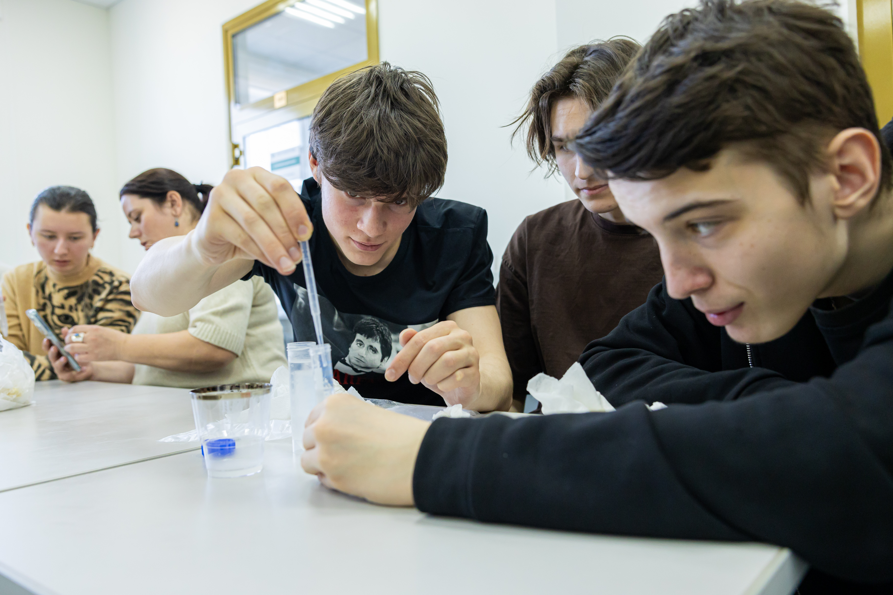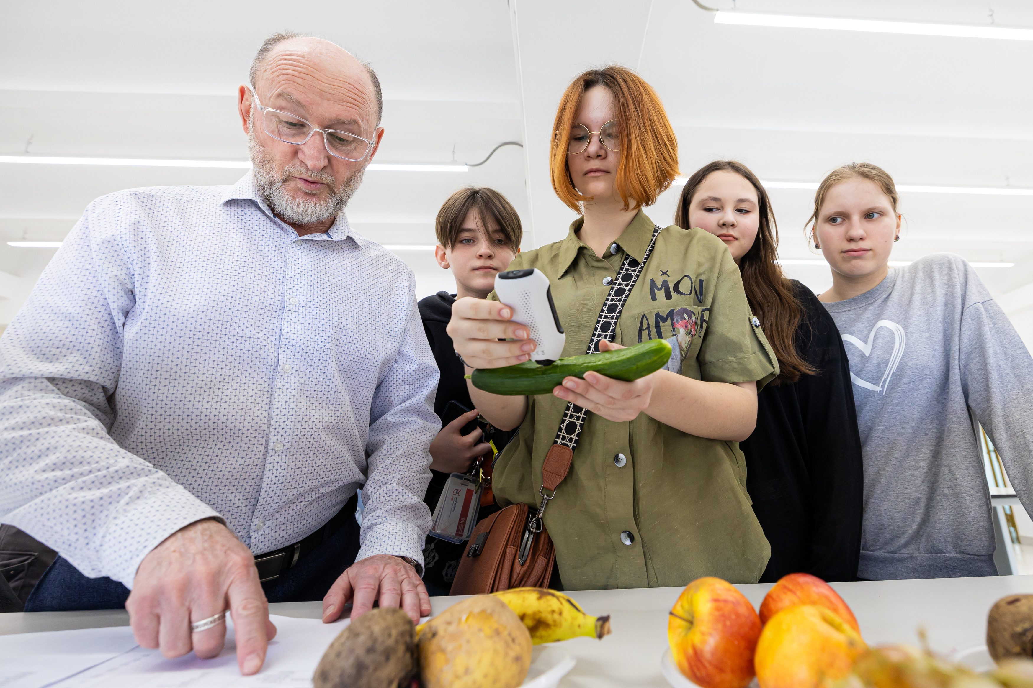 Третьим пунктом программы стало посещение лаборатории кафедры экологии. Здесь юным гостям предложили погрузиться в реальную научную работу. Под руководством преподавателей школьники провели экспресс-анализ фруктов из свободной продажи. Ребята научились измерять уровень нитратов и определять кислотно-щелочной баланс (pH) продукции, что является важным навыком для обеспечения продовольственной безопасности.
