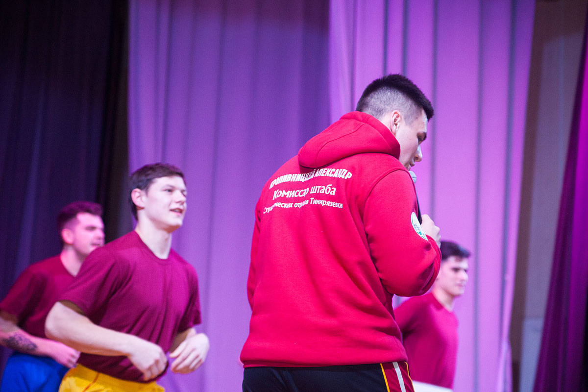 Этим вечером здесь царила необыкновенно дружеская и теплая атмосфера, присутствовало чувство единения студентов Тимирязевки. Ребята исполняли гимны отрядов, а харизматичные бойцы из «Восхода» и «Тимирязевца» — всем известный танец «Агитка», зарядив присутствующих энергией и оптимизмом. В зале их поддерживали задорными кричалками.