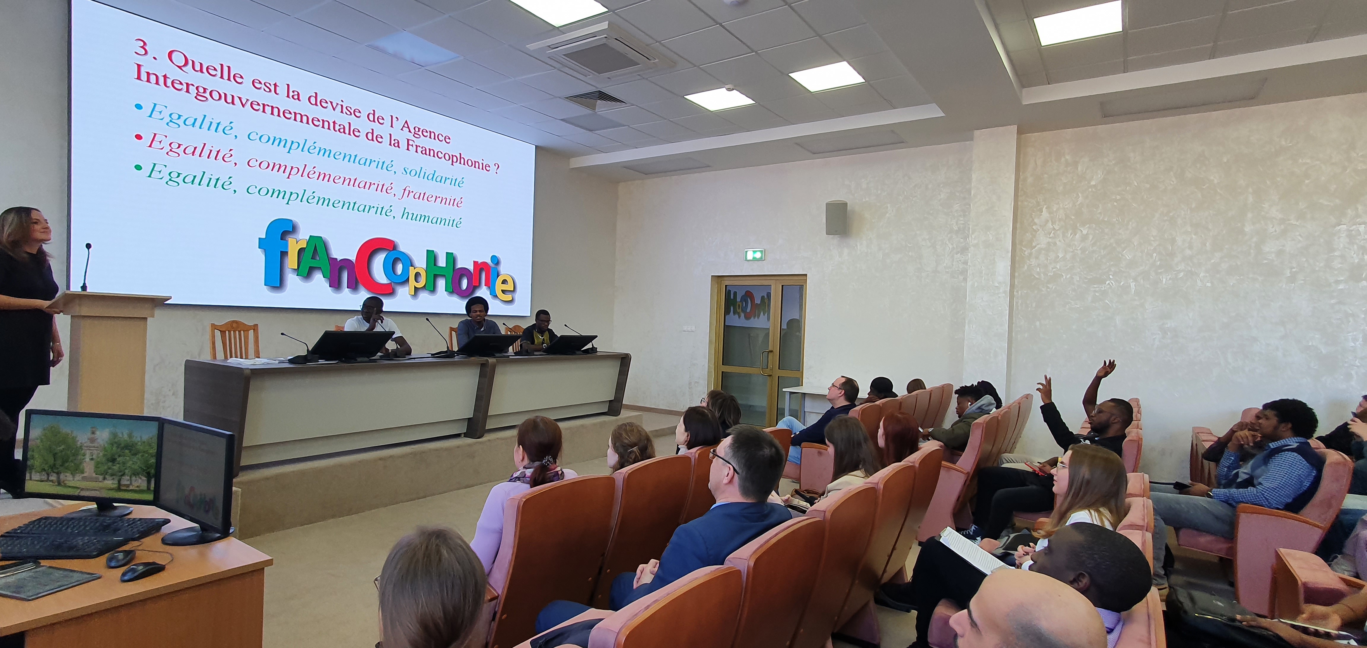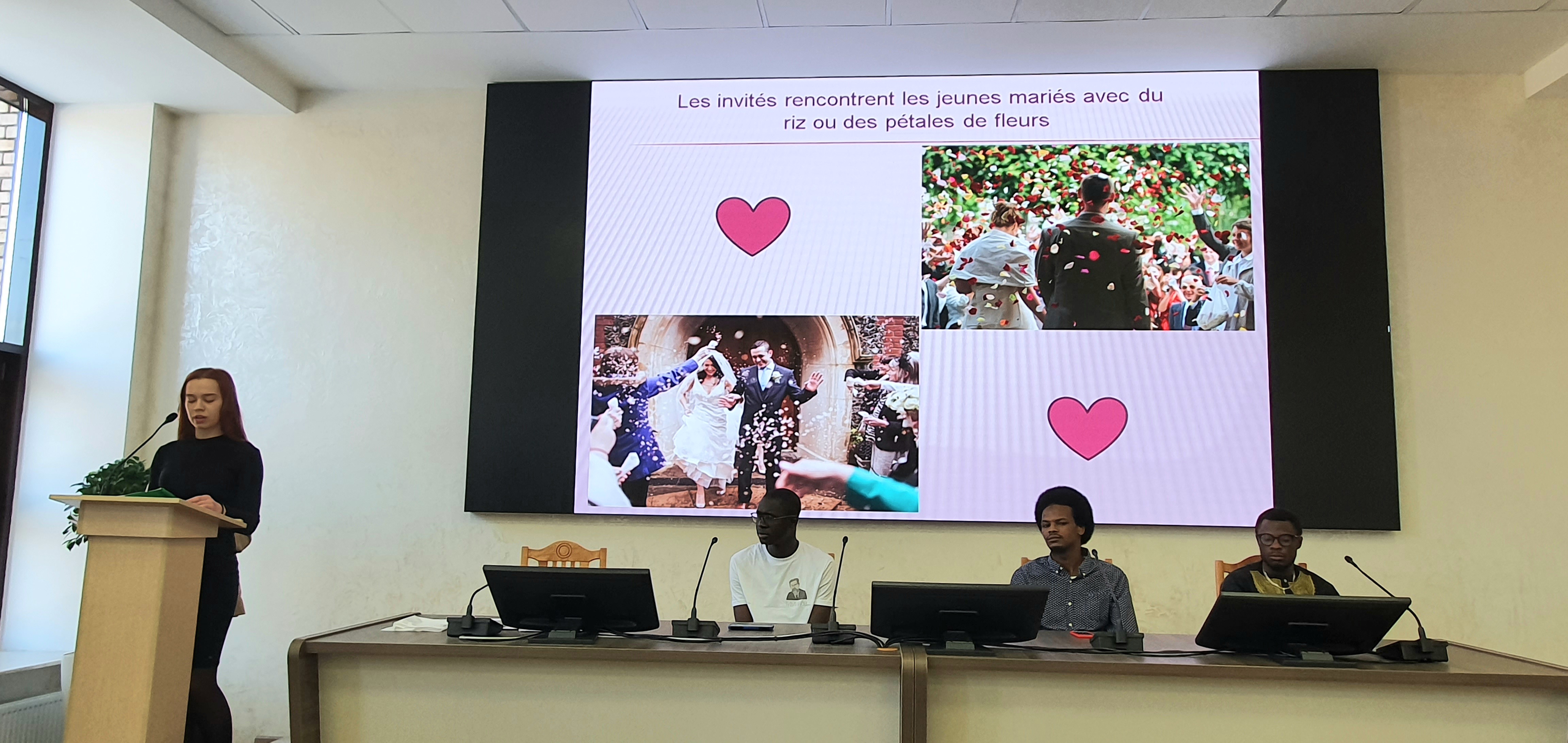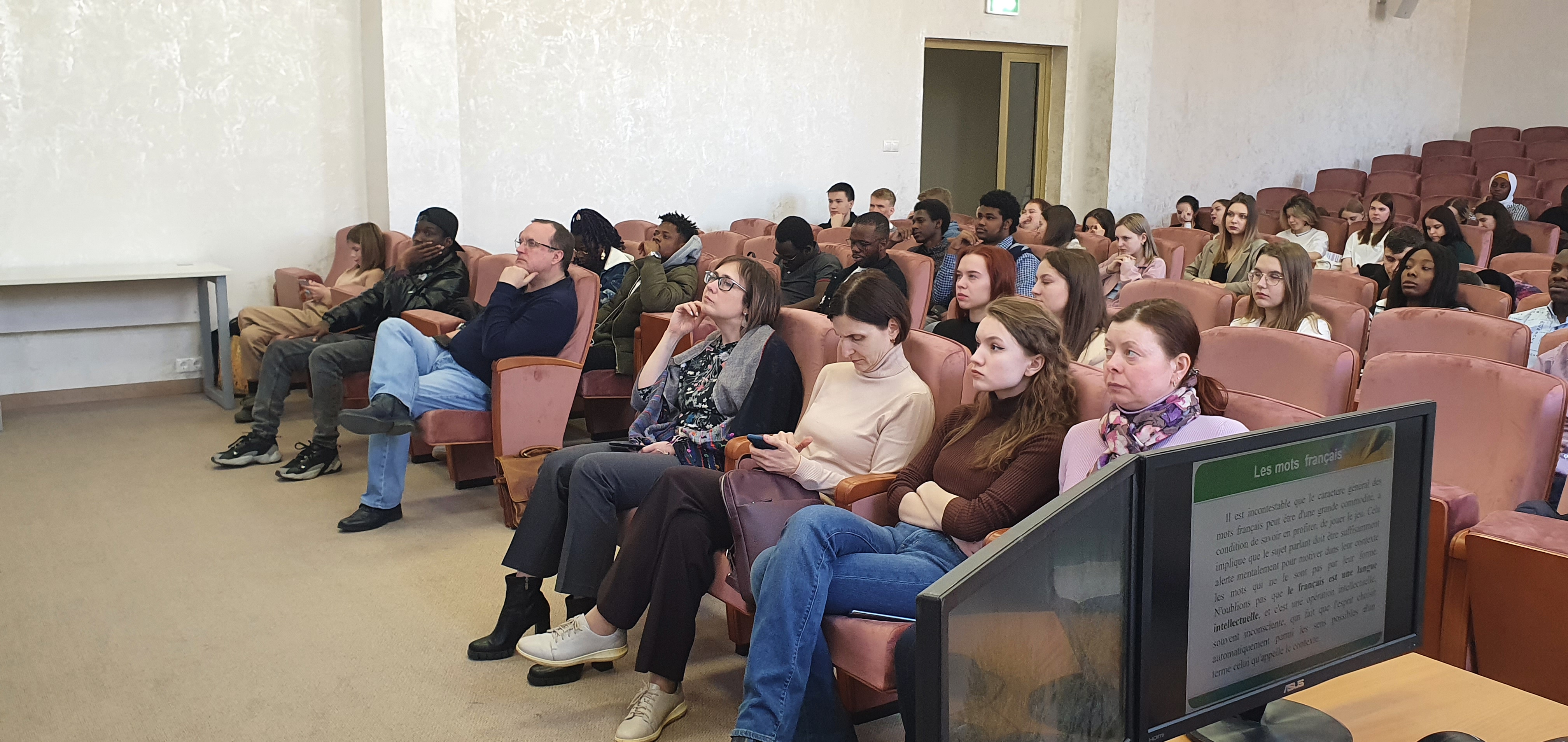 28 Март / 2022В мероприятии приняло участие более 120 студентов и преподавателей. Среди участников дискуссии были российские студенты, изучающие французский язык, а также иностранные студенты из Сенегала, Бенина, Чада, Замбии и др., для которых французский язык является родным. Спикеры - доценты кафедры иностранных и русского языков,канд.филол.наук А.А Зайцев и канд.пед.наук О.В.Таканова рассказали о лингвистических особенностях французского языка и Франкофонии в России. Студенты в докладах рассказали об административной структуре Франции, ее традициях и экологических проблемах. Студенты-иностранцы прочитали стихотворения на французском языке.