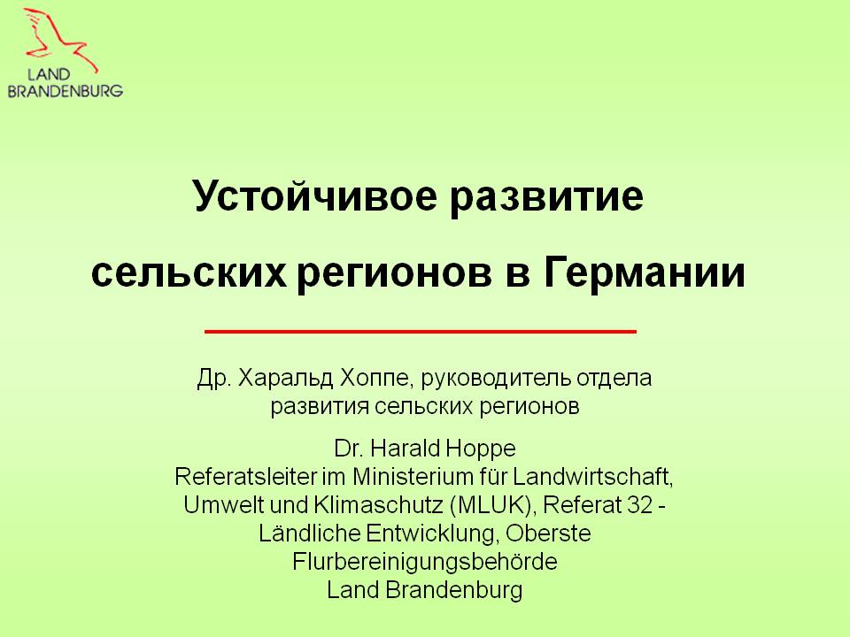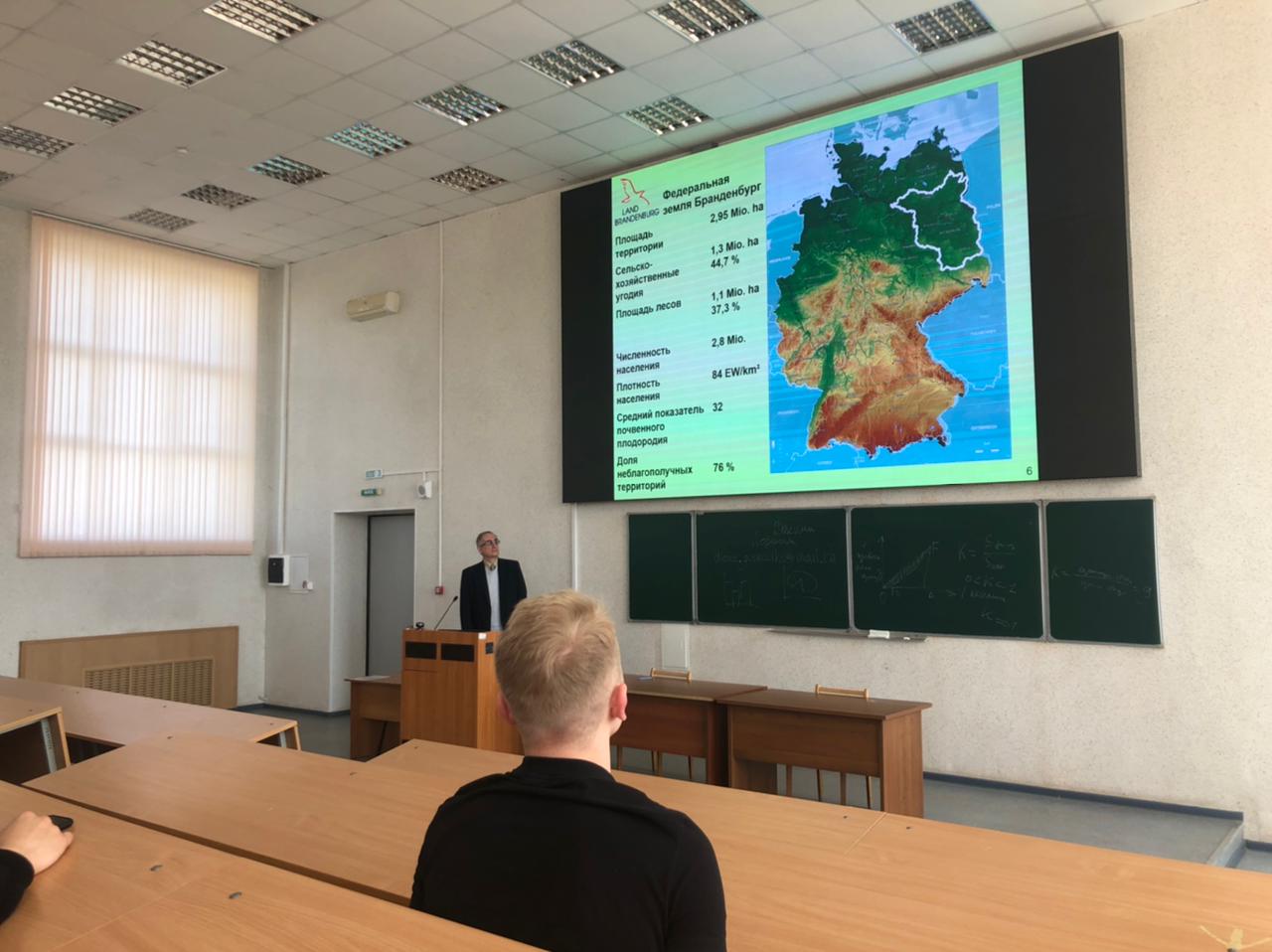 18 Май / 2021В проведении занятия принял участие Др. Харальд Хоппе, руководитель отдела развития сельских регионов Министерства инфраструктуры и сельского хозяйства Федеральной земли Бранденбург (Dr. Harald Hoppe, Referatsleiter im Ministerium für Landwirtschaft, Umwelt und Klimaschutz, Referat 32 - Ländliche Entwicklung, Oberste Flurbereinigungsbehörde, Land Brandenburg, Deutschland). Др. Хоппе в дистанционном формате прочитал доклад на тему «Устойчивое развитие сельских регионов в Германии (на примере Федеральной земли Бранденбург)». Докладчик затронул такие интересные и важные вопросы как цели реализации концепции устойчивого развития на международном уровне (Sustainable Development Goals), общие цели развития сельских регионов, вызовы в контексте развития сельских территорий (в том числе - изменение роли сельскохозяйственных предприятий, проблемы демографического развития и др.), стратегия устойчивого развития села и основные инструменты поддержки развития в сельских регионах и многое другое. Было отмечено, что инициативы по противодействию последствиям демографических изменений, поддержке проектов развития, создающих рабочие места, а также меры по обеспечению базовых услуг в сельских районах играют большую роль в региональной политике. Благодаря широкому участию местных субъектов происходит мобилизация внутренних потенциалов развития, развиваются взаимозависимые и функциональные отношения между сельскими и городскими районами, усиливается местная собственность, поощряется межмуниципальная деятельность.
