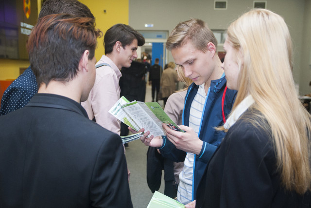 Прогуливаясь по четырехэтажной экспозиции учебных заведений и компаний-работодателей и запасаясь многочисленными буклетами, учащиеся оживлялись при виде экспонатов главного аграрного. Овощи как с картинки, макеты аграрной техники и уголок живых растений не оставляли гостей равнодушными.