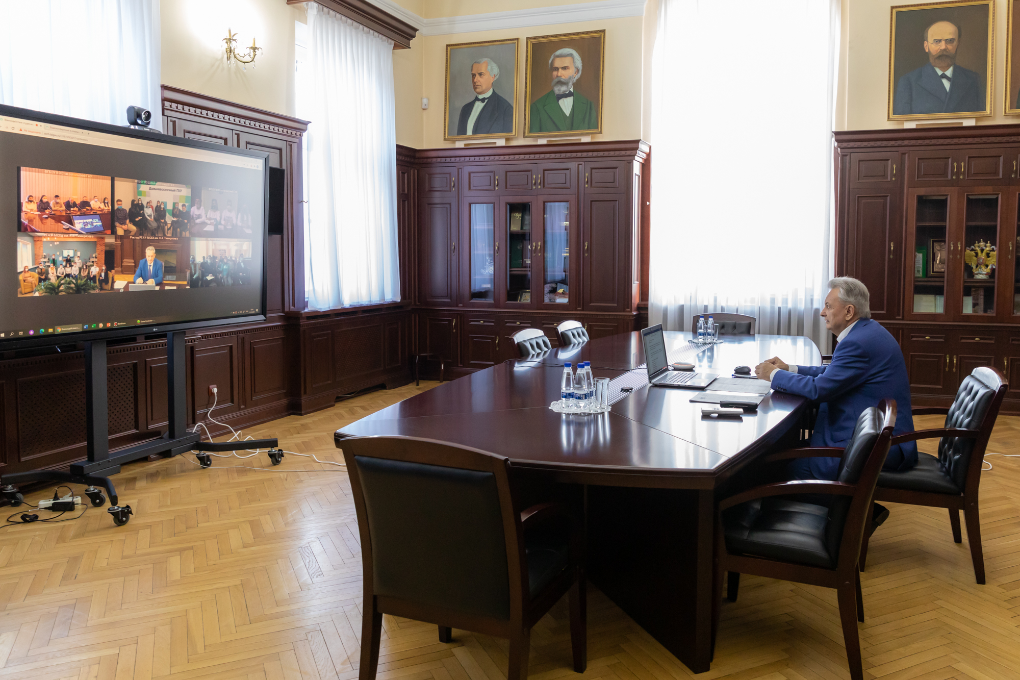 Ректор Тимирязевской академии пожелал всем участникам телемоста продуктивного общения, конструктивного обмена мнениями, а также полезных решений.