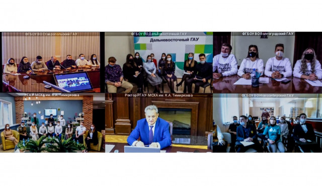 29 Октябрь / 2020Первый телемост был организован Дальневосточным государственным аграрным университетом. Инициативу поддержали студенческие объединения четырех университетов, подведомственных Минсельхозу России - РГАУ-МСХА имени К.А. Тимирязева, Ставропольского государственного аграрного университета, Волгоградского государственного аграрного университета и Новосибирского государственного аграрного университета.