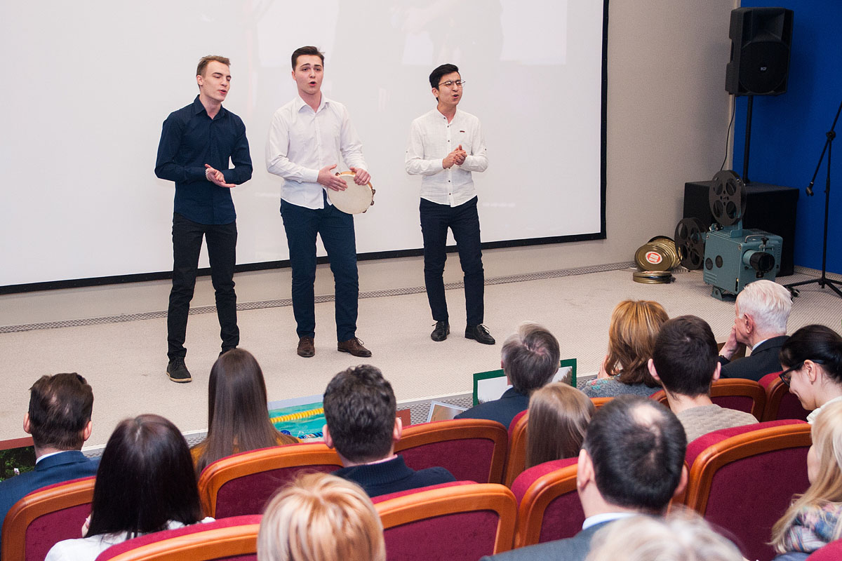 Далее гости торжества были приглашены в кинозал Тимирязевской академии. Место проведения праздника было выбрано неслучайно, ведь студенческая жизнь так похожа на ленту кинофильма! Столько забавных, волнительных, счастливых случаев происходит в это время, жизнь каждого студента в университете — отдельный сценарий!