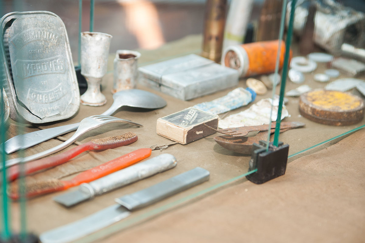 Другой интересный экспонат – отечественная металлическая фляга. Промышленный выпуск таких емкостей для воды длился всего два года: с 1928 по1929. Поэтому такую находку можно назвать большой удачей.