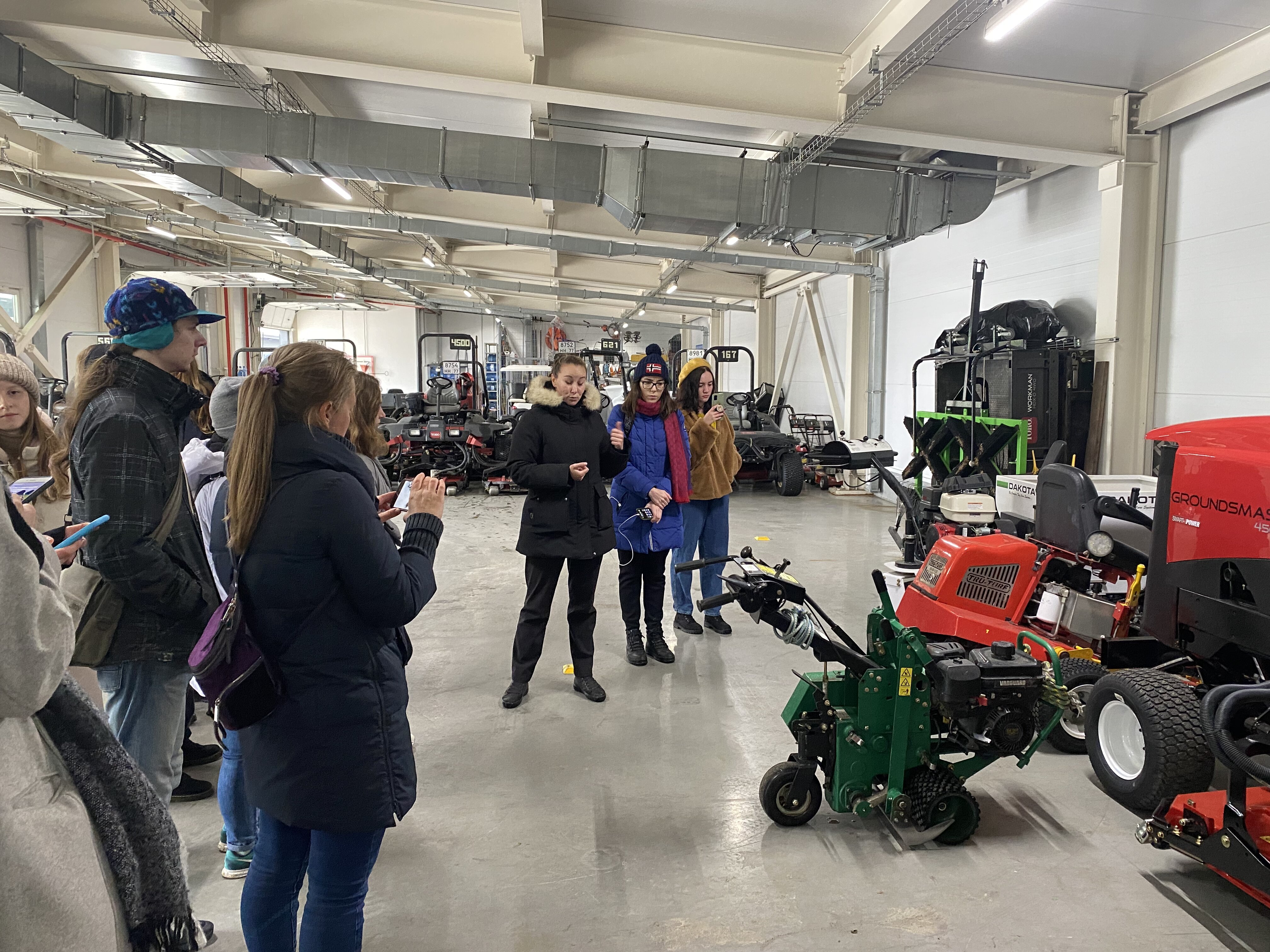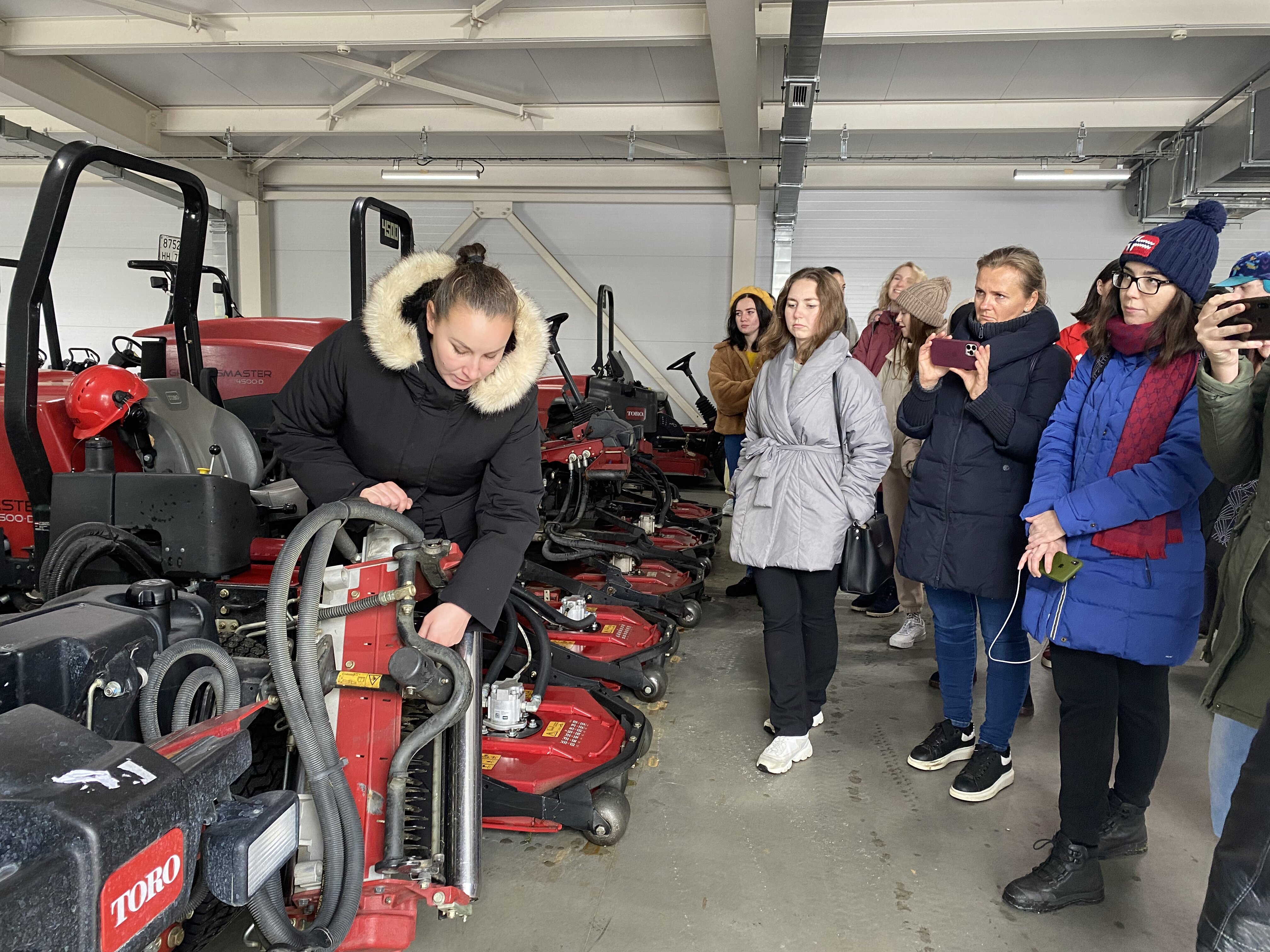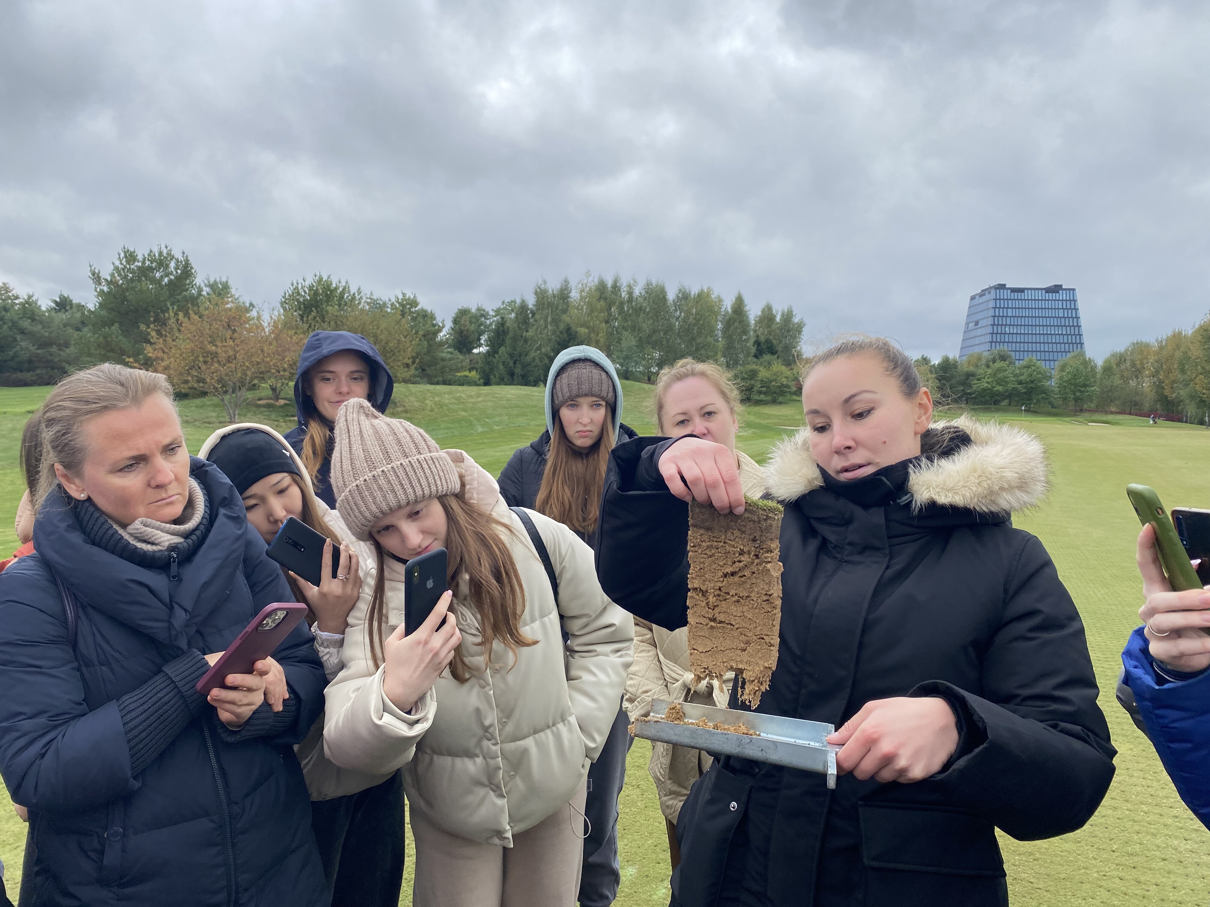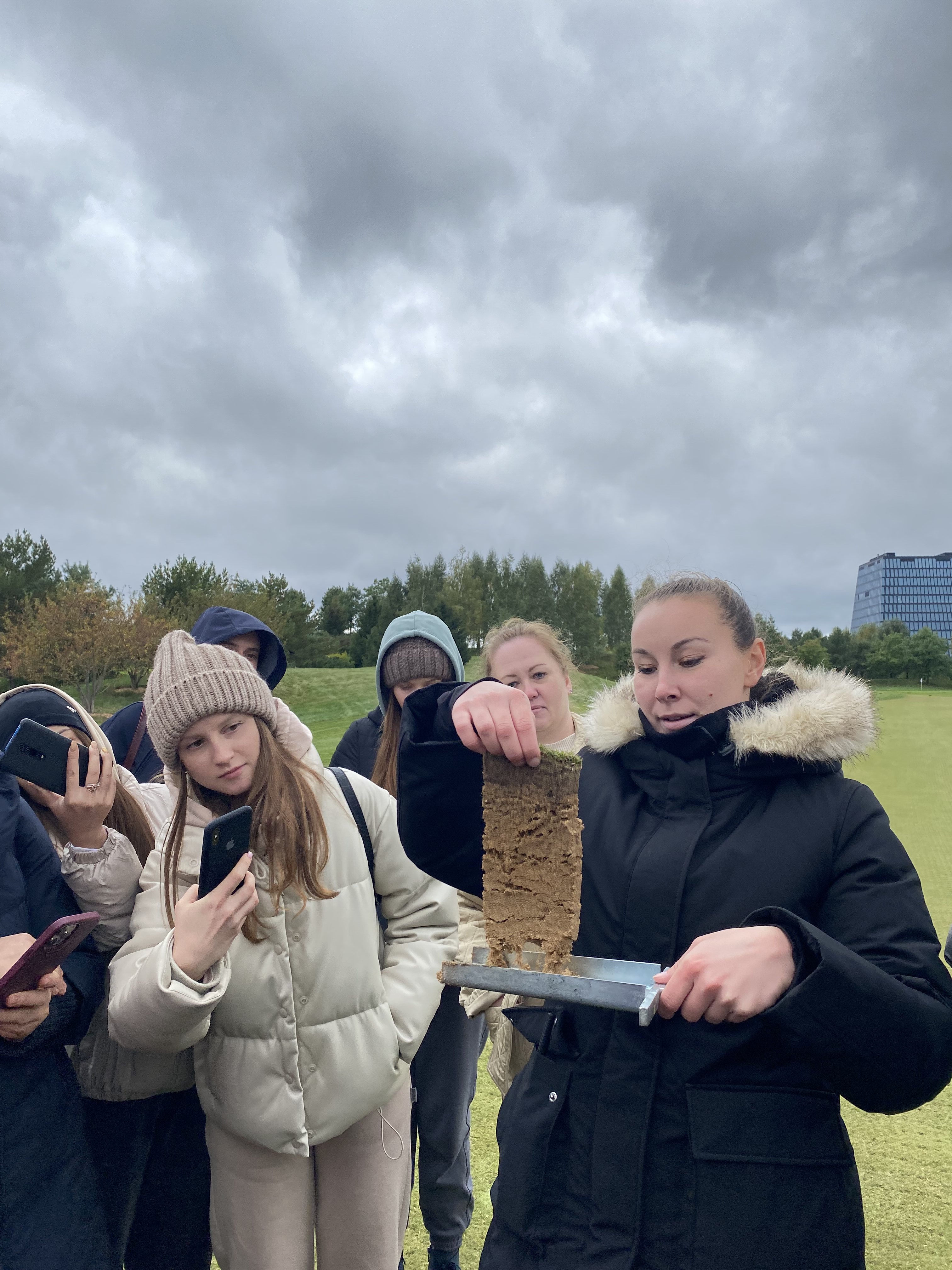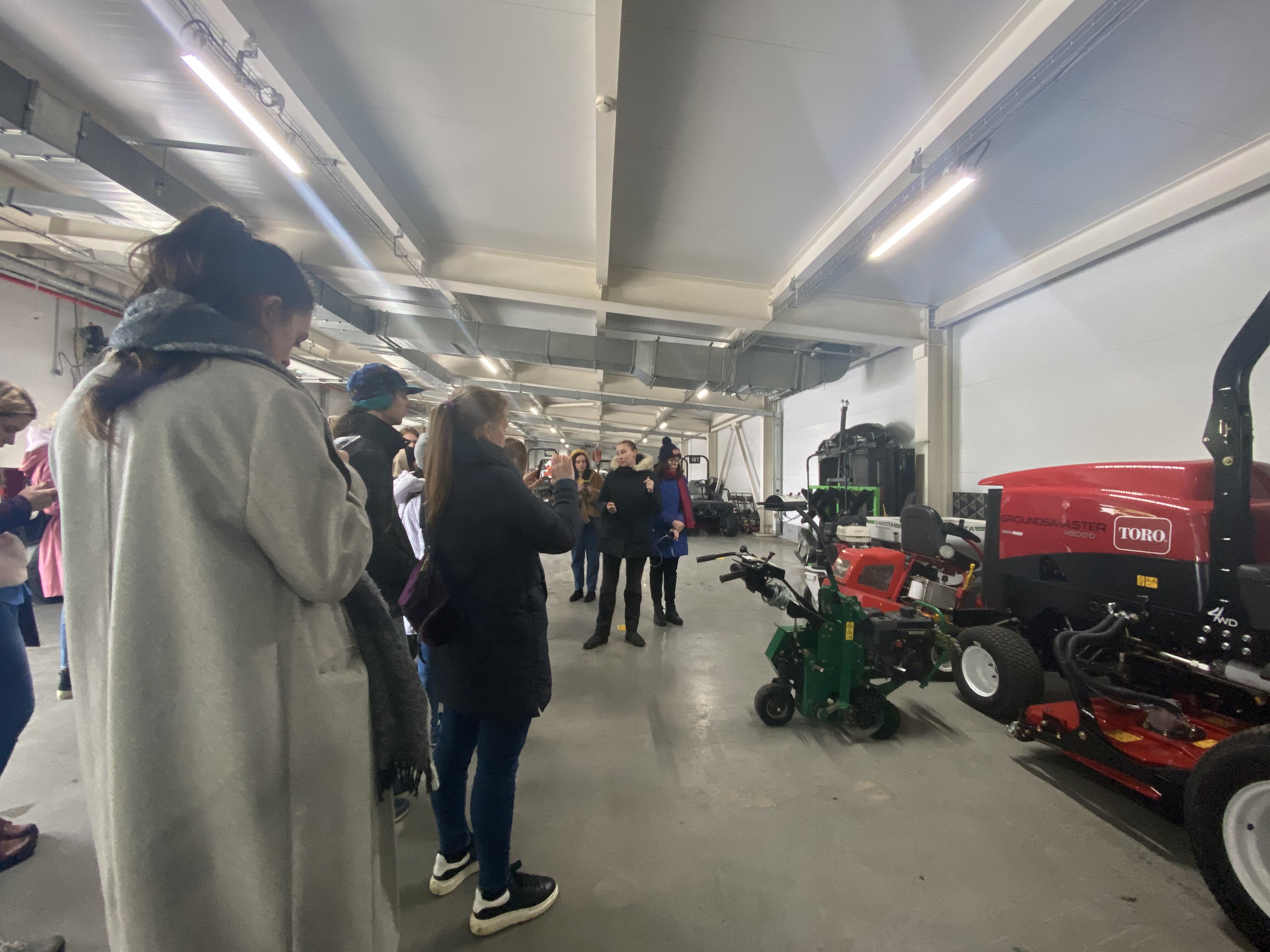 Экскурсию по клубу студентам провела главный агроном, выпускница Института Садоводства и ландшафтной архитектуры Новолодская Милана Сергеевна. Она ознакомила студентов с планом расположения лунок на гольф-поле, рассказала, что данное поле выполнено по  стилю Паркленд, так же рассказала об особенностях и функциях каждого участка на игровом поле. Студенты ознакомились с растительным составом используемый на территории и узнали какие травы для газонов используются на различных участках игрового поля.