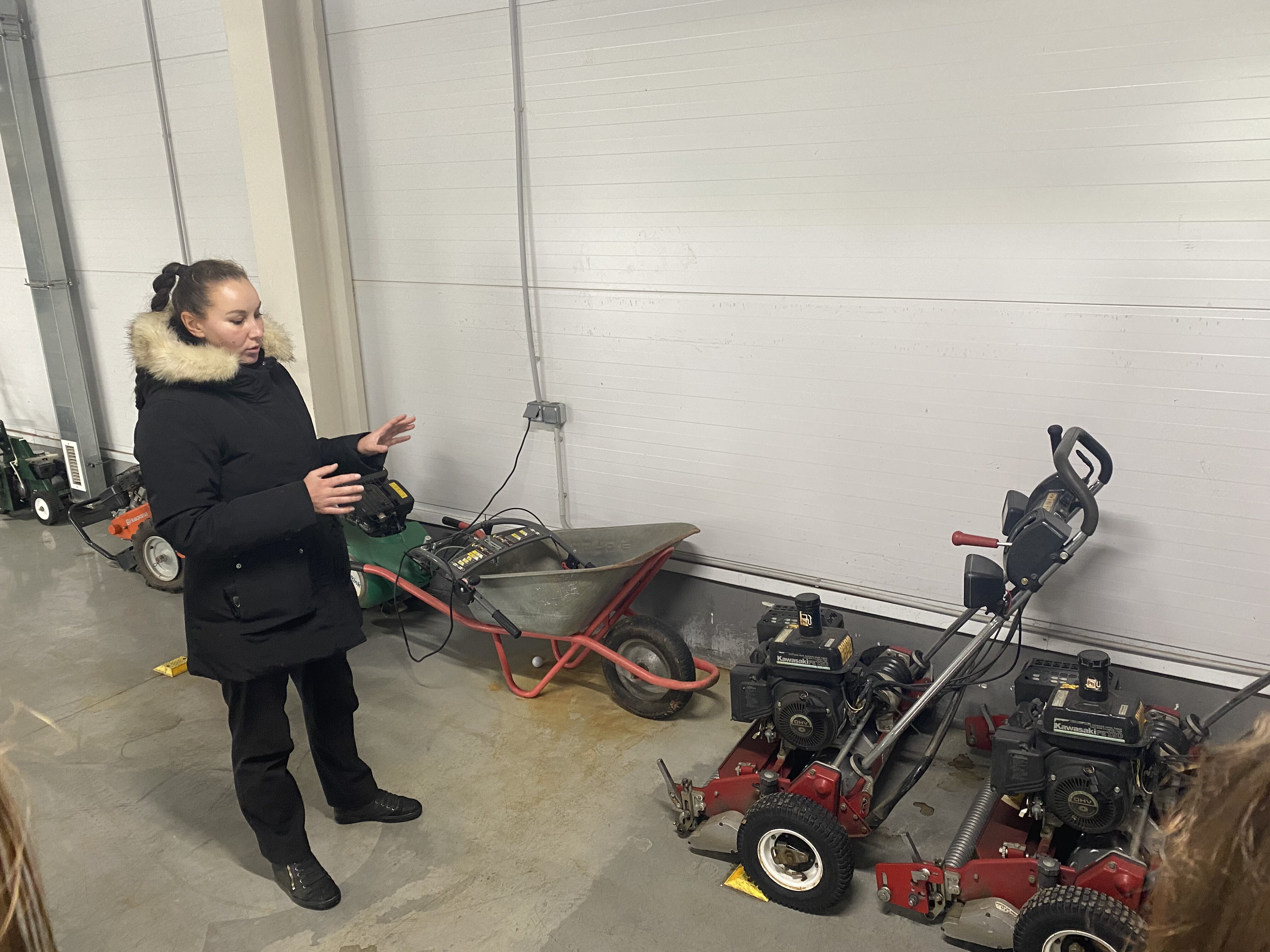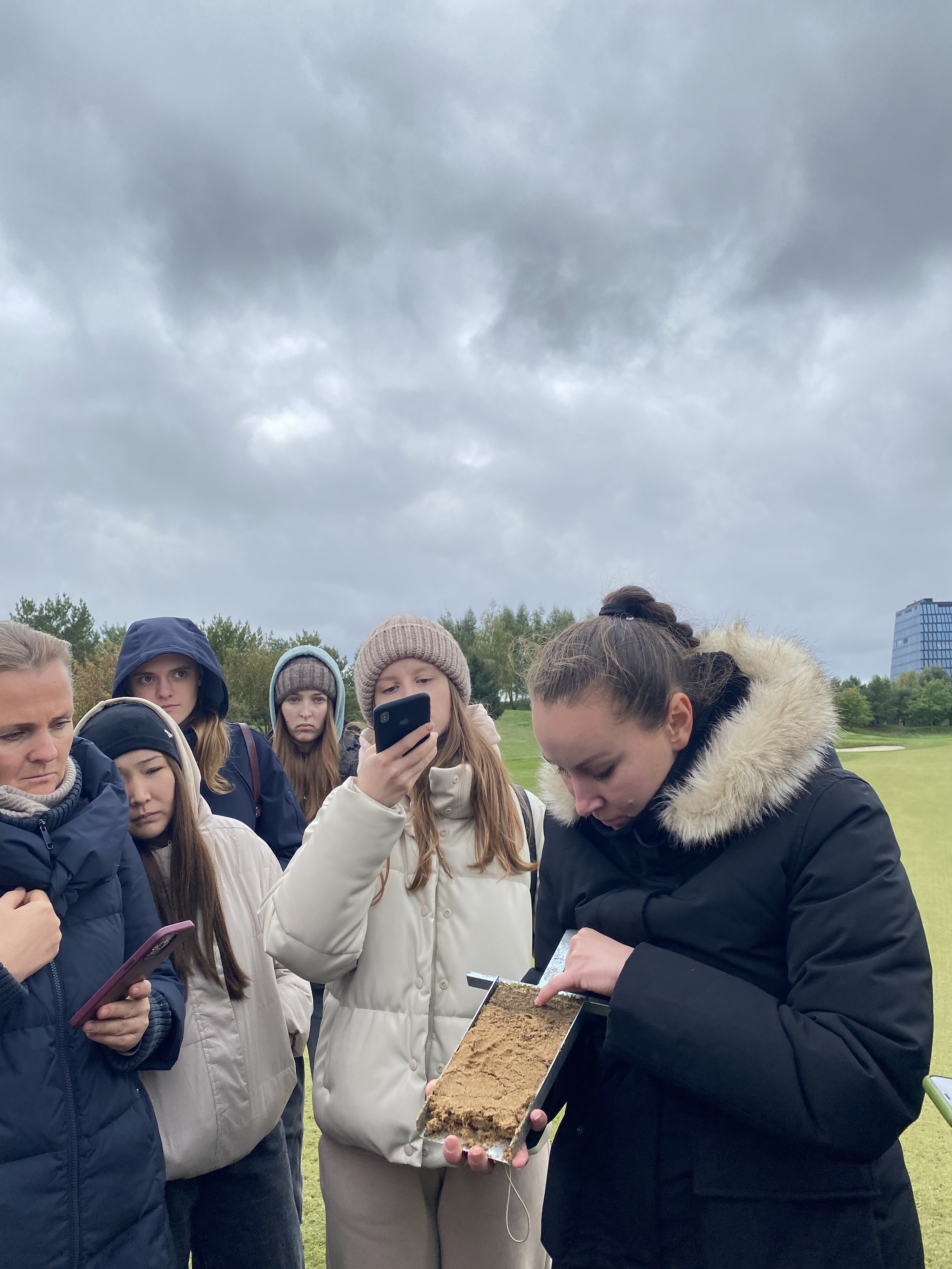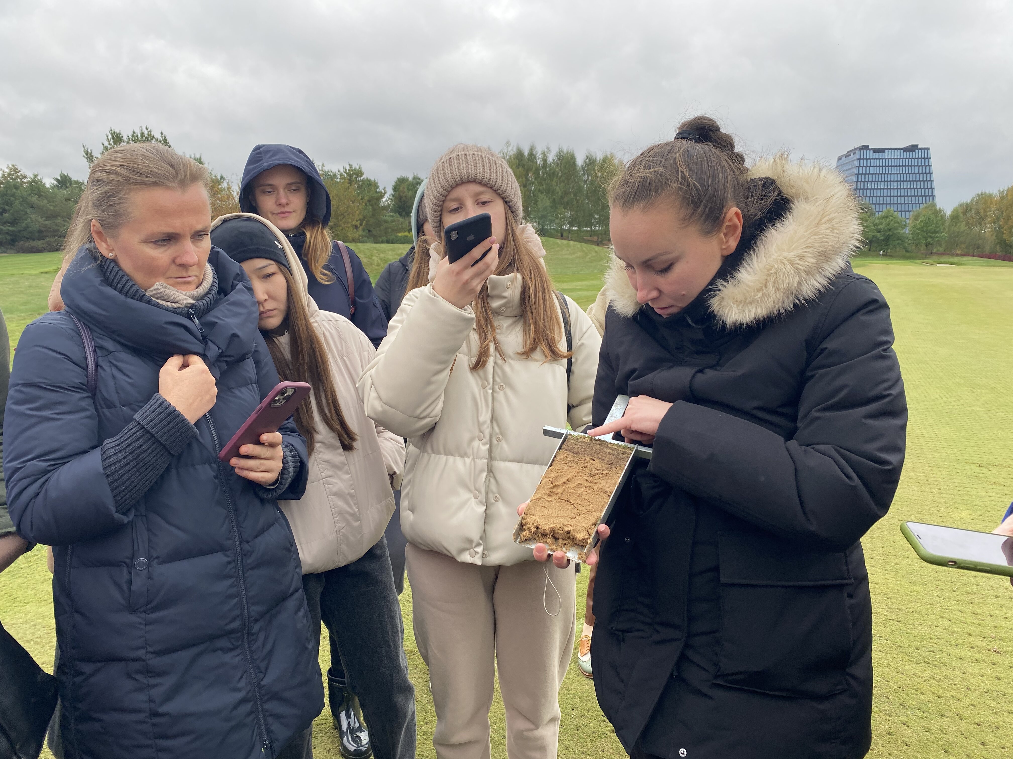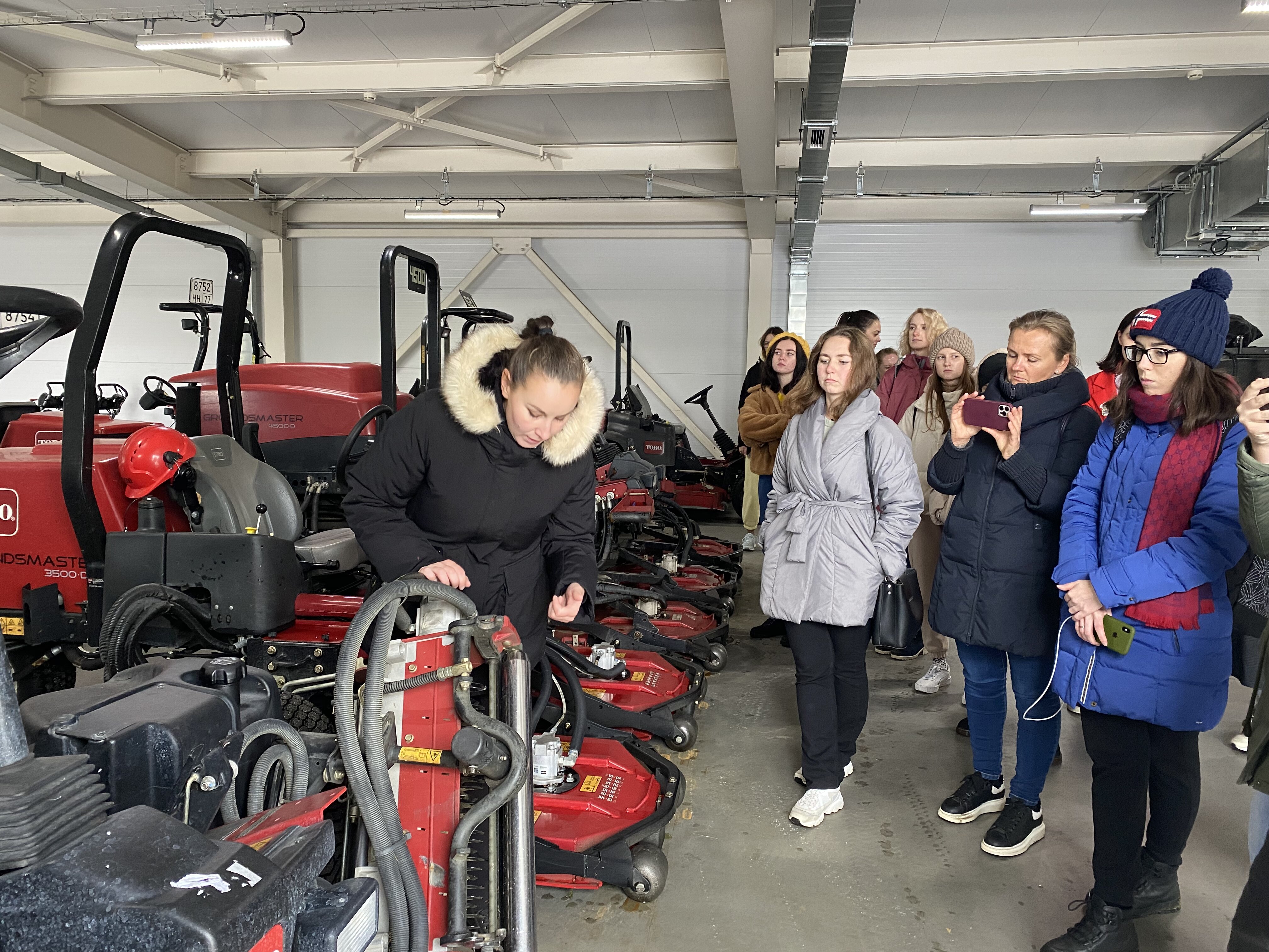 Экскурсию по клубу студентам провела главный агроном, выпускница Института Садоводства и ландшафтной архитектуры Новолодская Милана Сергеевна. Она ознакомила студентов с планом расположения лунок на гольф-поле, рассказала, что данное поле выполнено по  стилю Паркленд, так же рассказала об особенностях и функциях каждого участка на игровом поле. Студенты ознакомились с растительным составом используемый на территории и узнали какие травы для газонов используются на различных участках игрового поля.