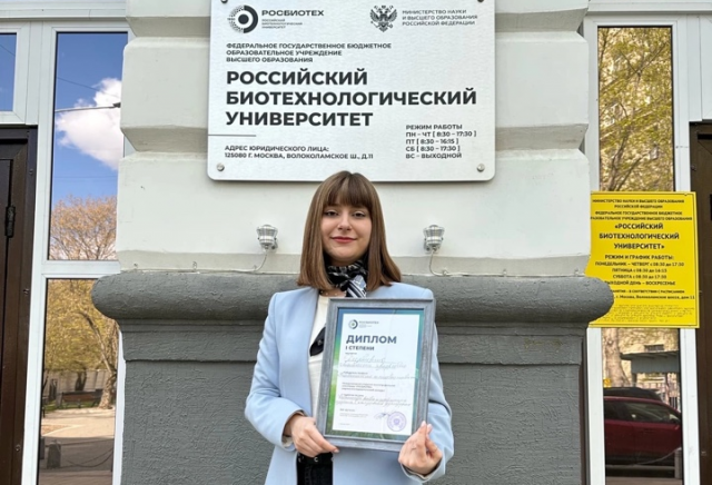 На базе Российского биотехнологического университета (прежнее название - МГУПП) прошла Международная открытая многопрофильная олимпиада «РОСБИОТЕХ». В номинации «Биотехнологии и пищевые системы» победительницей стала студентка 4 курса Института агробиотехнологии Анастасия Десятерик.