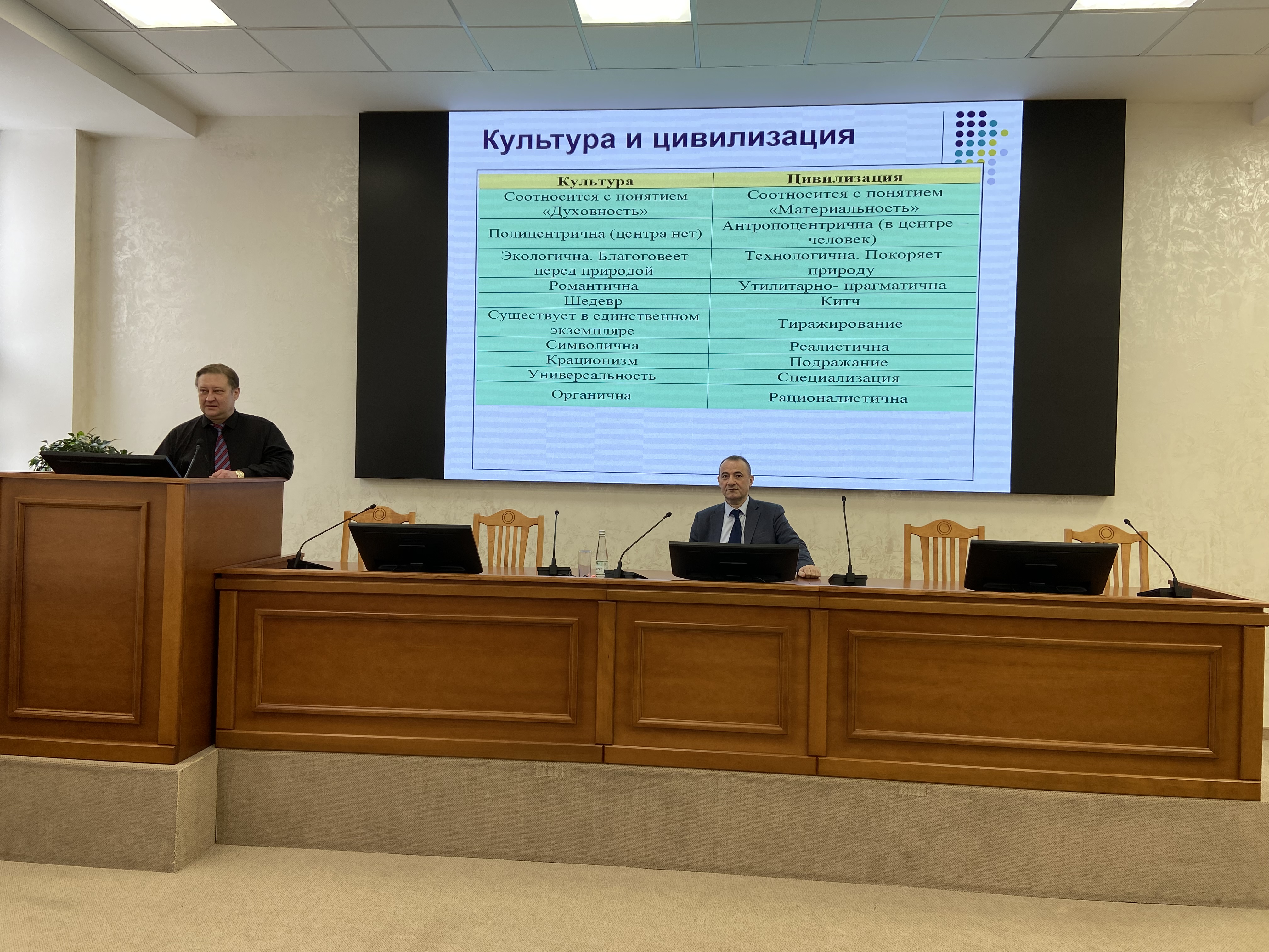 С пленарными докладами выступили: выступили профессор кафедры философии Кортунов Вадим Вадимович. Заведующий кафедрой философии, профессор Мамедов Азер Агабала оглы и профессор кафедры философии Панюков Александр Иванович.