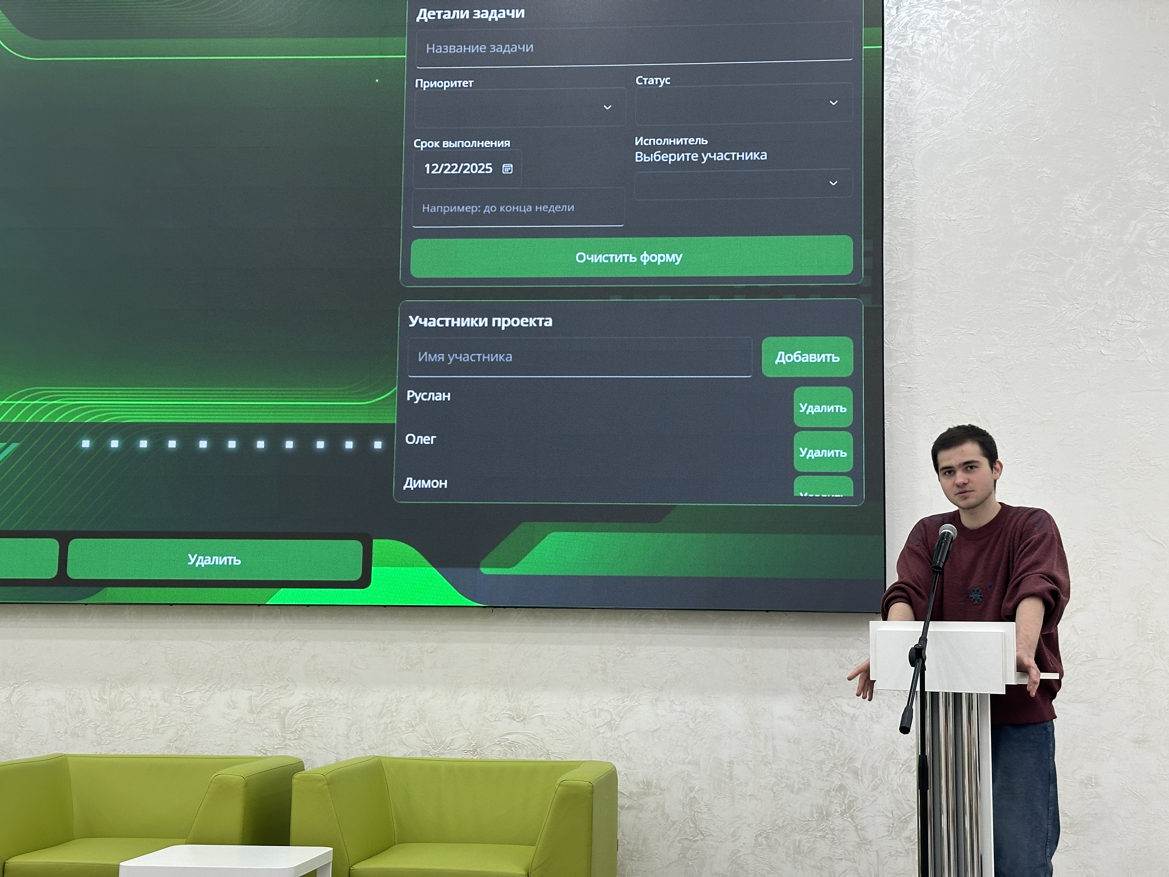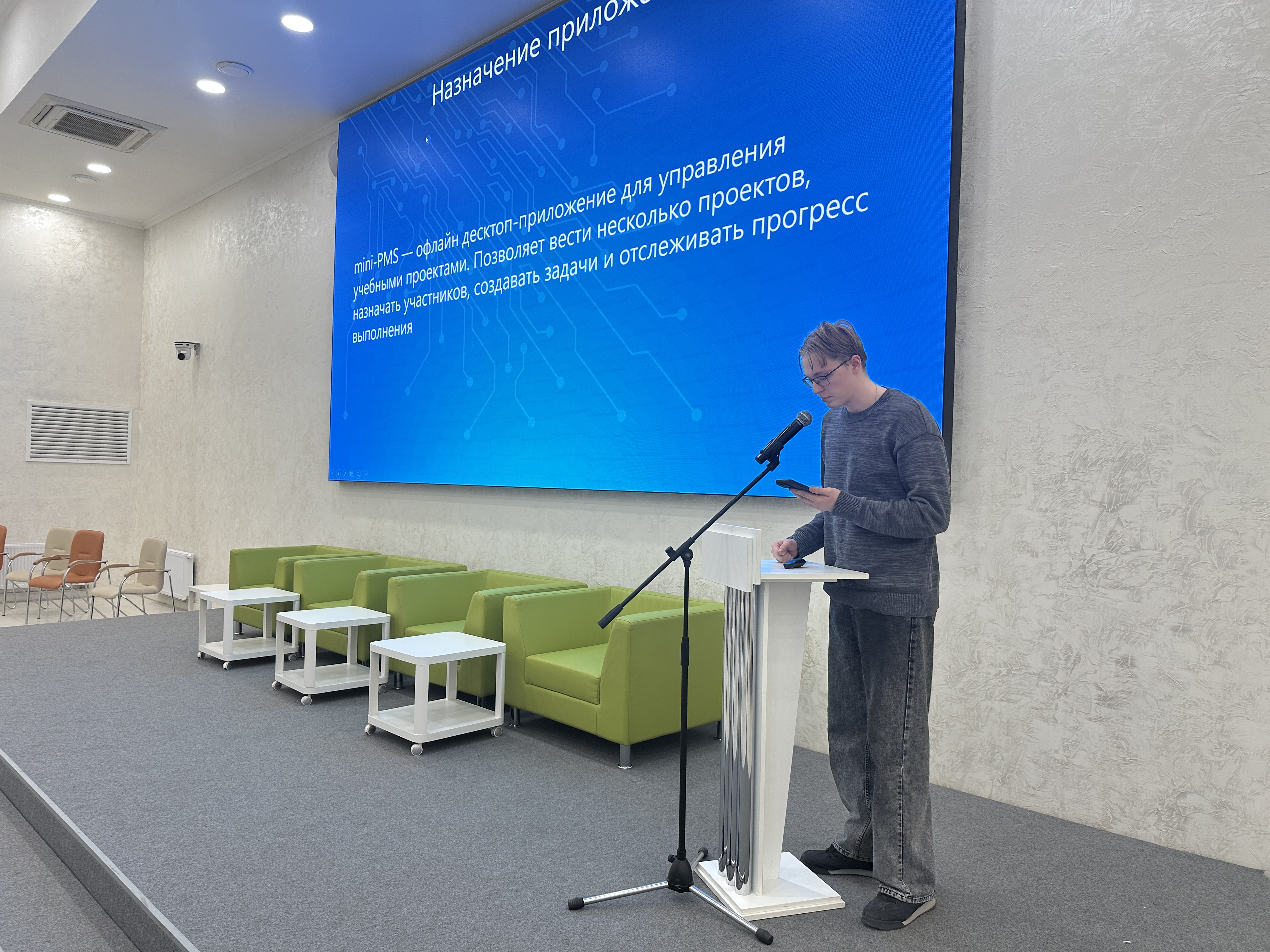 22 Декабрь / 2025Участникам предложили погрузиться в практический кейс, требующий создания прототипа настольного приложения с графическим интерфейсом на выбранном ими языке программирования. Основная задача состояла в разработке приложение для управления учебными проектами – мини-системы поддержки проектной деятельности (mini-PMS). Приложение должно было работать в автономном режиме (без подключения к интернету) и обеспечивать базовое управление задачами, участниками и сроками. При этом важно было обеспечить систему хранения информации с помощью локальной базы данных, а также создать удобный и интуитивно понятный интерфейс, чтобы пользователи могли без труда взаимодействовать с приложением.
