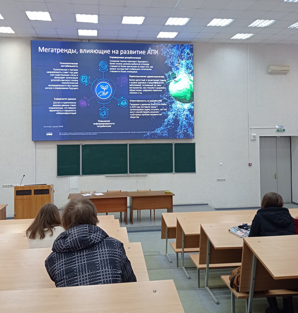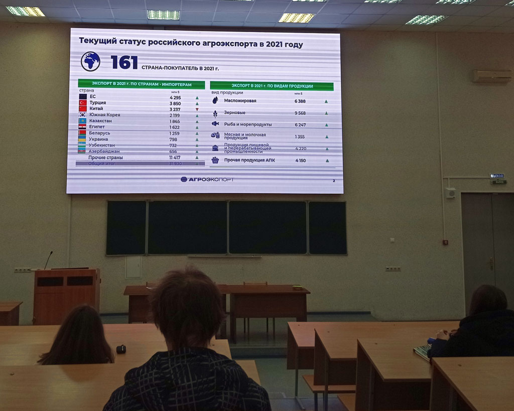 За ходом обсуждения с интересом следили студенты Института экономики и управления АПК, обучающие по направленностям «Маркетинг» и «Мировая экономика». Обсуждение темы «Российский агроэкспорт 2021-2022: тренды, вызовы и новые возможности», проводимой Федеральным центром «Агроэкспорт» продолжится на занятиях по международному маркетингу и на заседаниях студенческого научного общества под руководством заведующего кафедрой мировой экономики и маркетинга, к.э.н. А.Ф. Королькова.