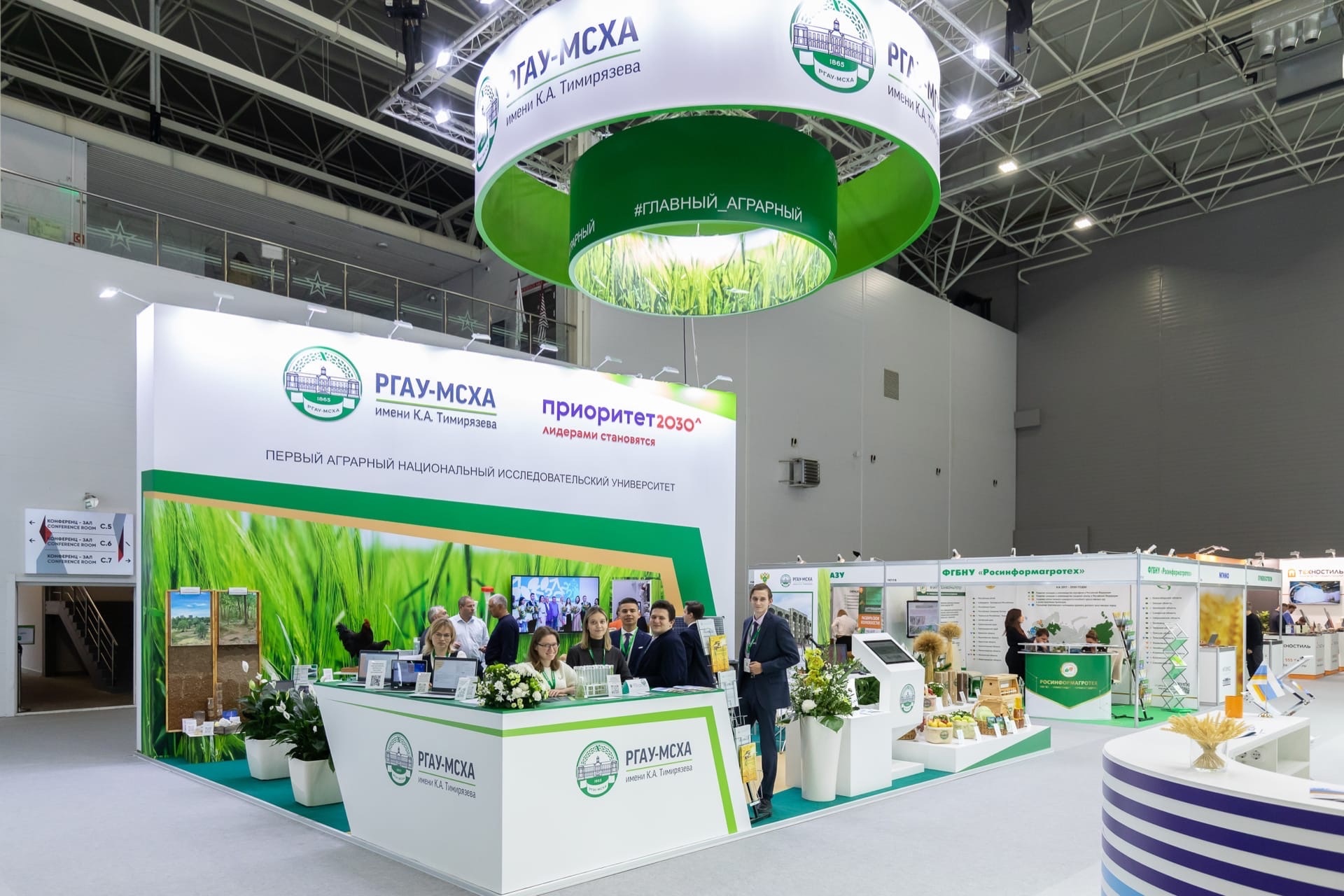 В конце дня студентам предоставили время для осмотра экспозиций, представляющих основные достижения в области растениеводства и животноводства, развития сельских территорий, агротуризма, региональных брендов продуктов питания, экспорта продукции АПК, аграрного образования и науки, цифровизации агропромышленного комплекса. Особое внимание они уделили стенду РГАУ-МСХА имени К.А. Тимирязева, где были представлены достижения ученых академии, а наибольший интерес будущих IT-специалистов вызвали экспонаты в области информационных технологий. Так, интерактивная карта, разработанная при финансовой поддержке РГАУ-МСХА имени К.А. Тимирязева в рамках проекта «Оценка эффективности размещения производства органической продукции растениеводства в условиях формирования Зеленой экономики в Российской Федерации» под руководством доктора экономических наук, профессора Зарук Н.Ф., позволяет оценить возможности для эффективного размещения органической продукции по территории России с учетом почвенно-климатических, экономических, экологических, социальных условий развития сельского хозяйства регионов.