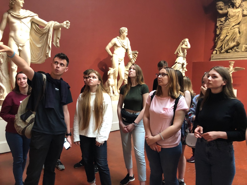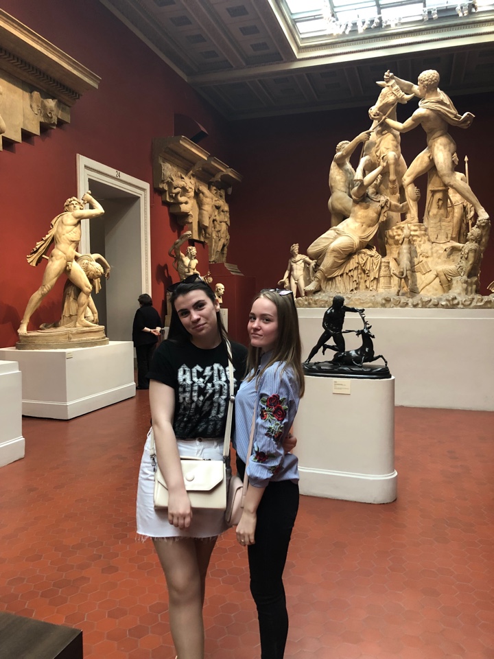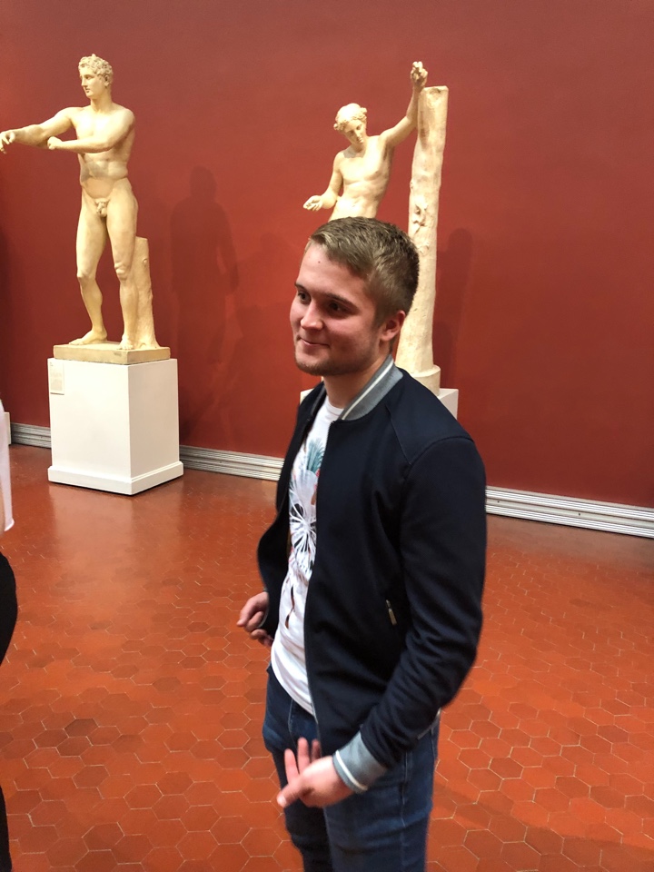 Сегодня в залах главного здания музея размещены экспозиции разных эпох. Об истории музея и его коллекциях студенты узнали очень многое из емкого рассказа доцента кафедры связей с общественностью и речевой коммуникации Елены Валерьевна Гнездиловой, Экскурсия была построена таким образом, что ребята были и слушателями, и рассказчиками. Особенно отличились Александра Преображенская и Александр Малик. Александра рассказала однокурсникам об обычаях древних египтян в эпоху Нового царства, а Александр – об Афинском Акрополе.