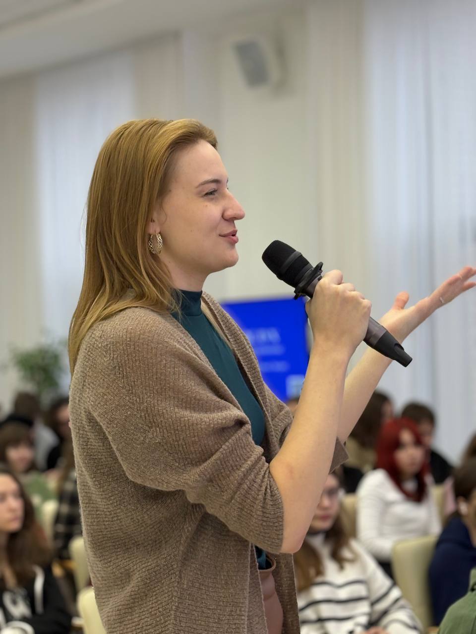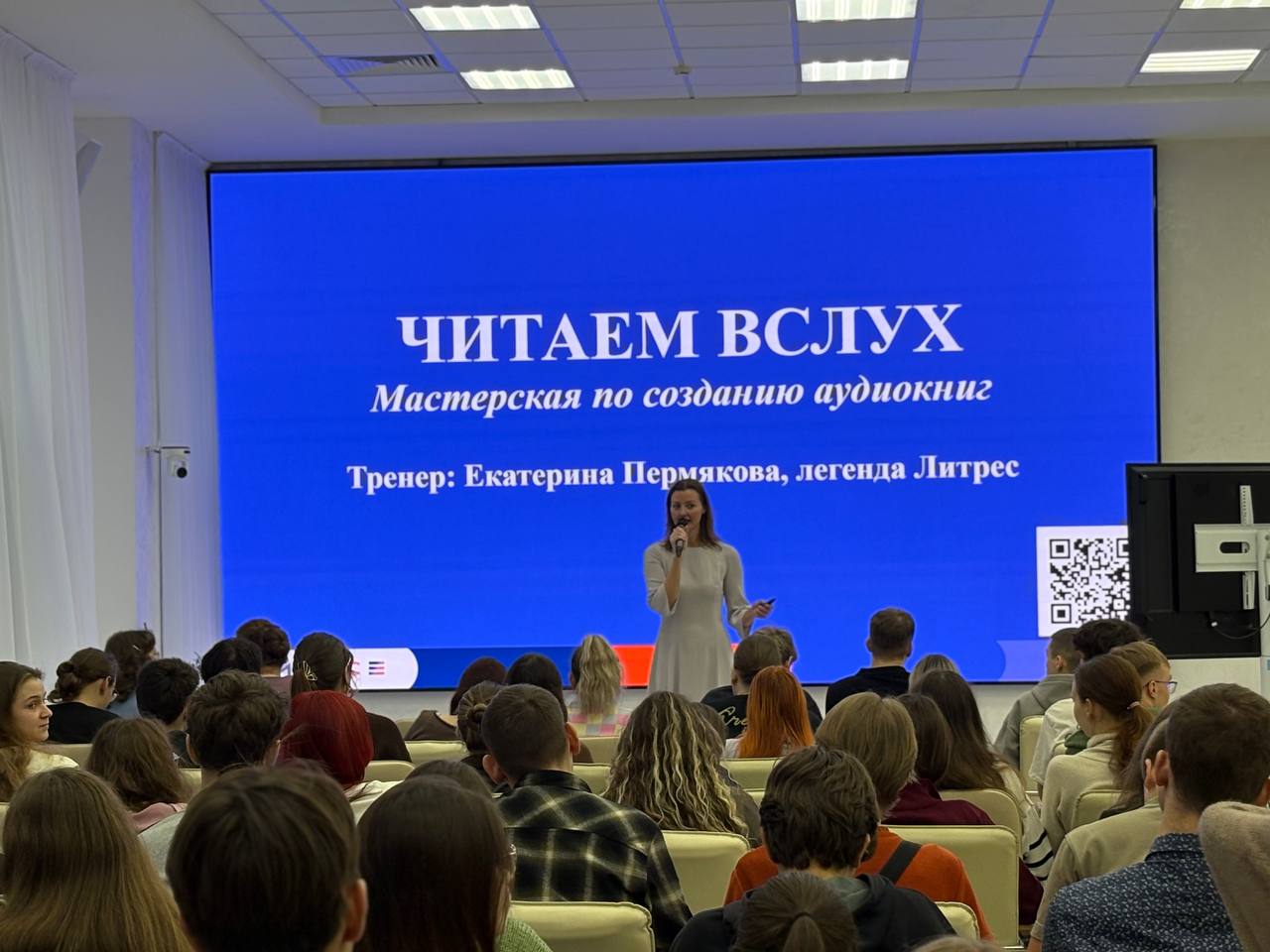 Встречу провела Екатерина Пермякова, легенда Литрес, корпоративный преподаватель по русскому языку и гостиничному сервису, руководитель мастерской по созданию аудиокниги. Она работает с Банком России, РАНХиГС, РЖД, «Газпромом» и является амбассадором издательского сервиса «Литрес».