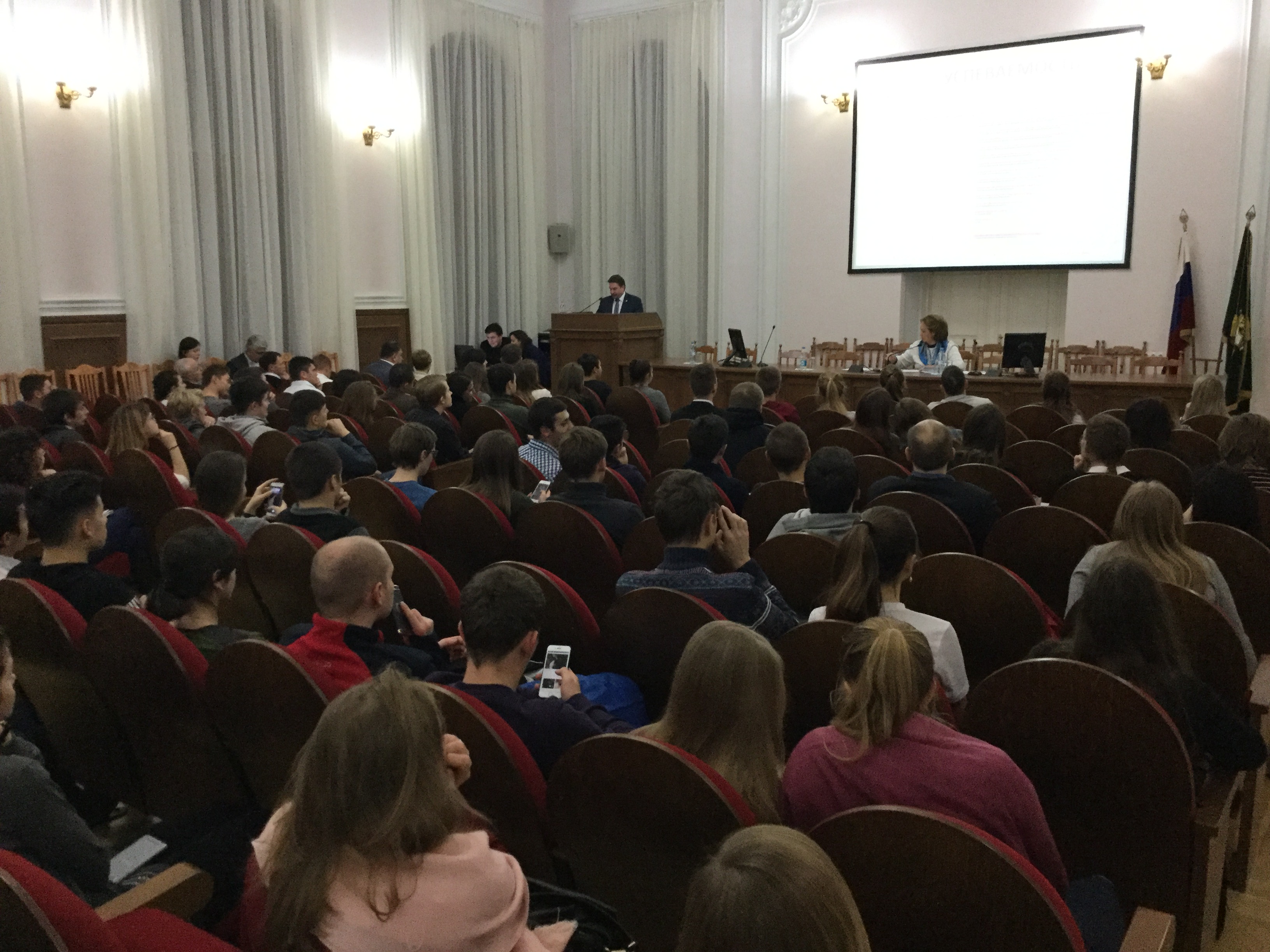 На встрече студенты поделились опасениями, не придется ли покидать общежития в связи с проведением Чемпионата мира по футболу в Москве? Галина Золина уверила, что подобных планов не было и на повестке вопрос не стоит.