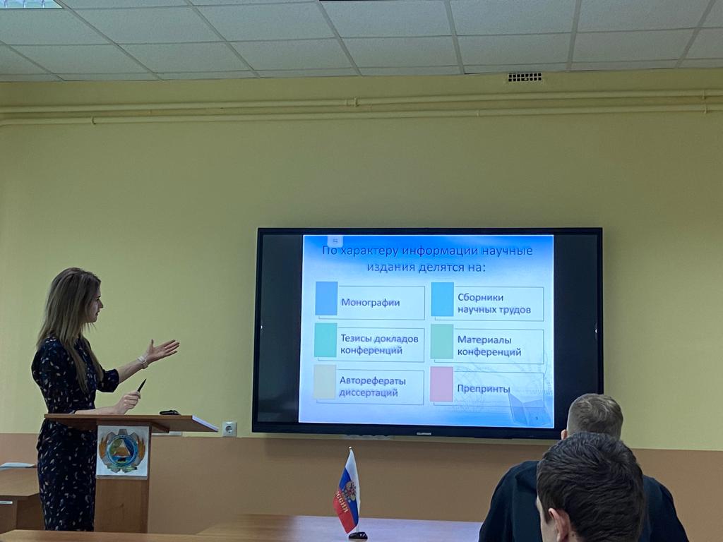 Карпова Н.А. ознакомила обучающихся с существующими научными изданиями, представила методику написания научной статьи. В докладе содержалась информация об информационных системах, которые можно использовать для поиска англоязычных источников, тематических форумах и специализированных сайтах, узкоспециализированных поисковиках, электронных библиотеках, специальных базах данных и иных источников научной информации.