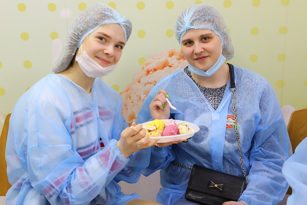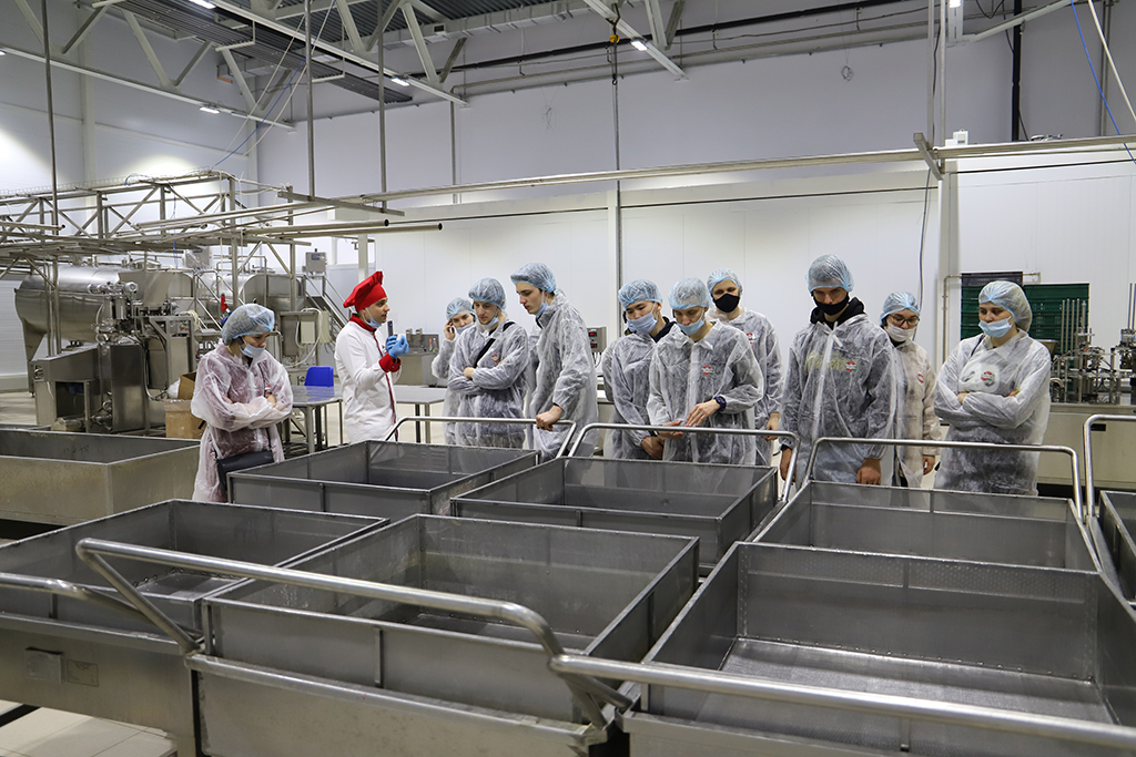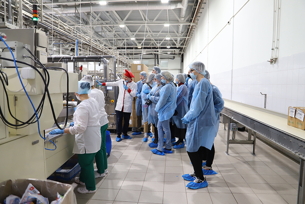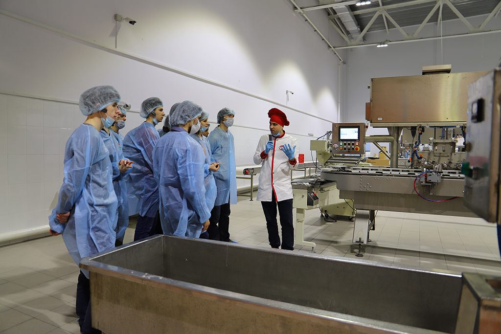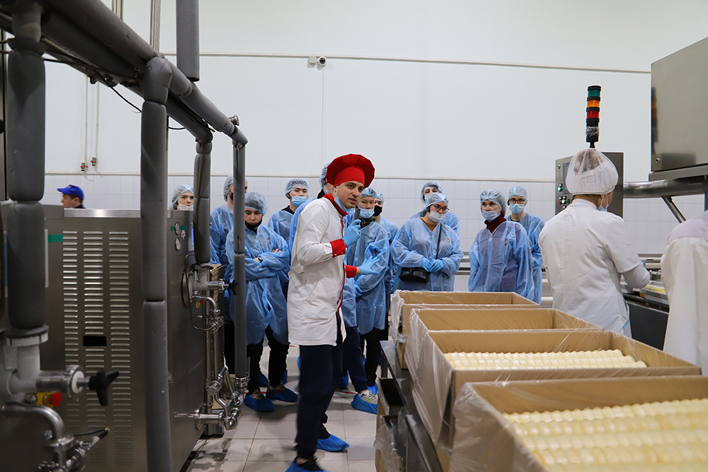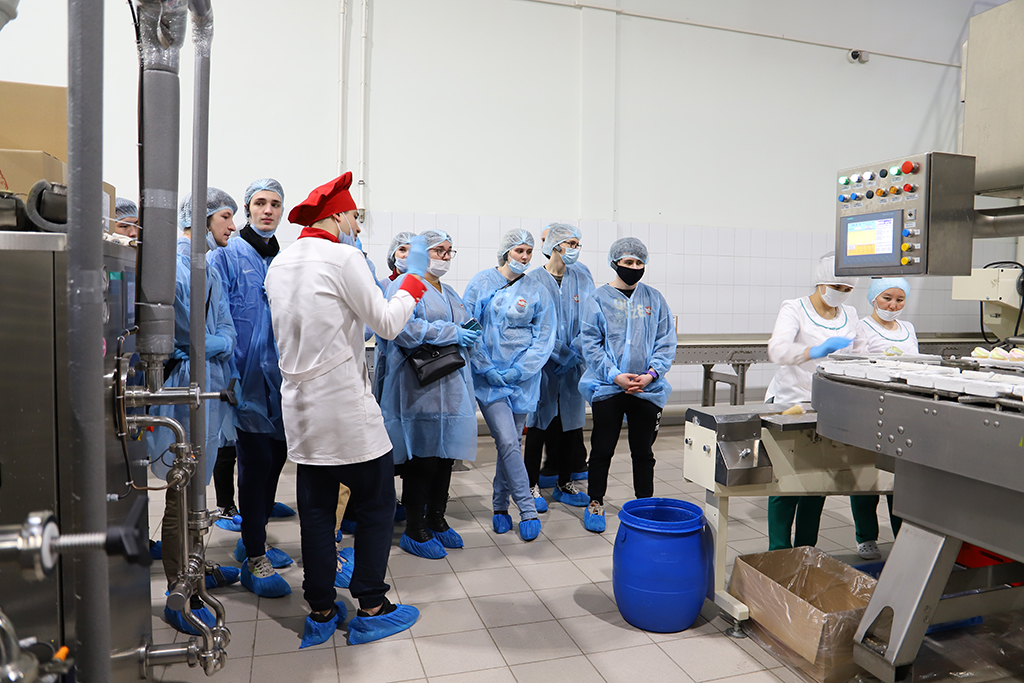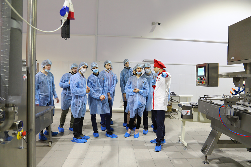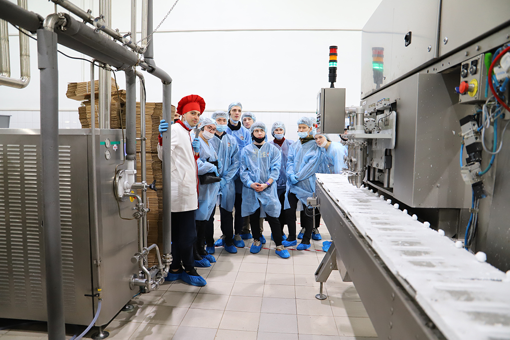 27 Апрель / 2021Вместе с экскурсоводом студенты ознакомились со всеми этапами производства. Особое внимание было уделено изучению устройства оборудования, которое используется на производстве, а также попробовали «немороженное» мороженое прямо из-под фризера.