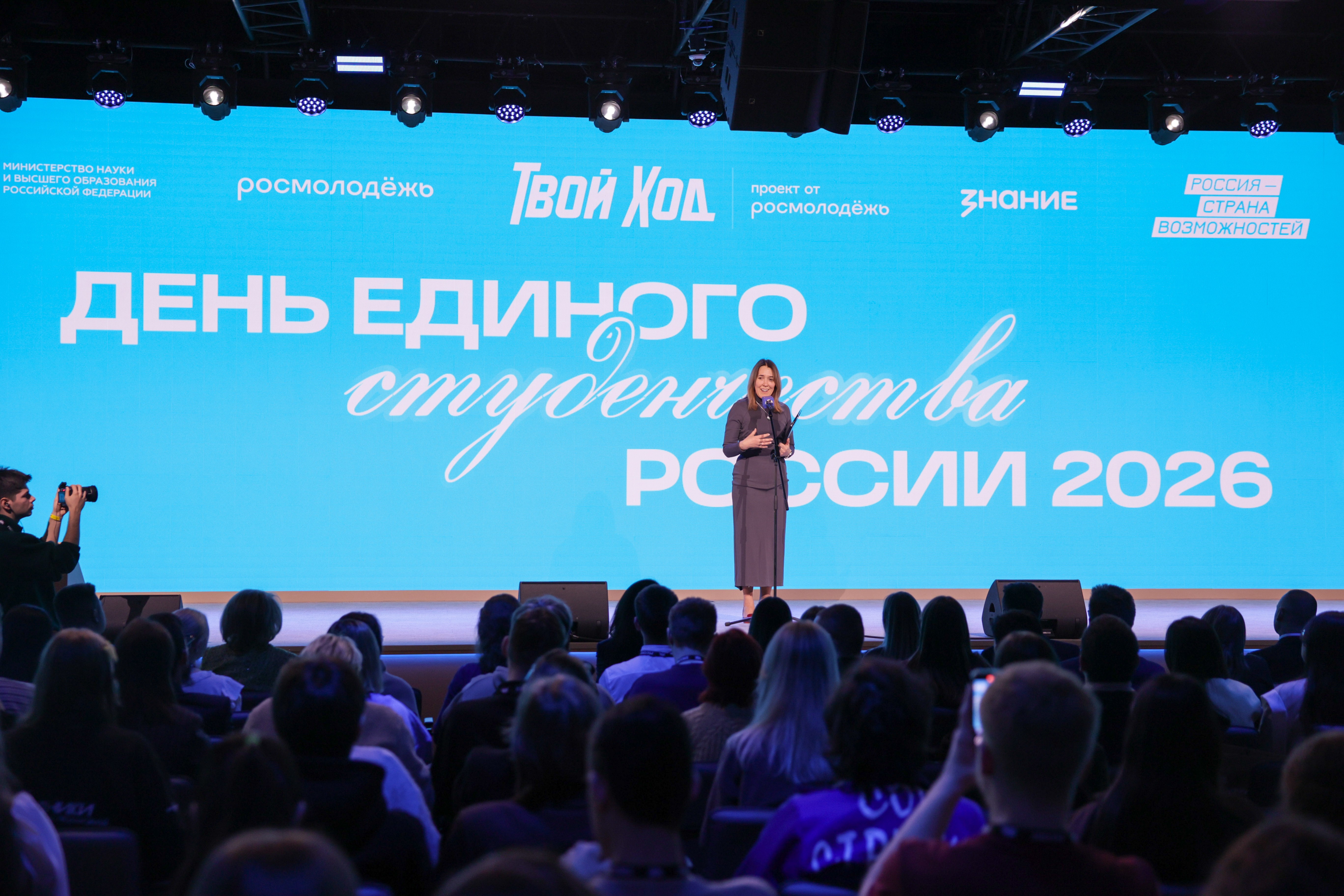 26 Январь / 2026Торжественный старт празднику дали заместитель Министра науки и высшего образования Российской Федерации Ольга Петрова и заместитель руководителя Федерального агентства по делам молодежи Лейла Зотова. Ольга Петрова подчеркнула, что День российского студенчества объединяет поколения, а студенческие годы закладывают фундамент будущего и открывают множество возможностей, в чем помогают такие проекты, как «Твой Ход» и инициативы Росмолодёжи.