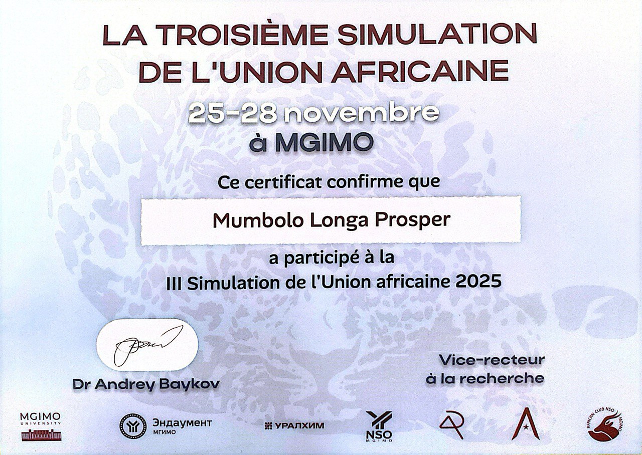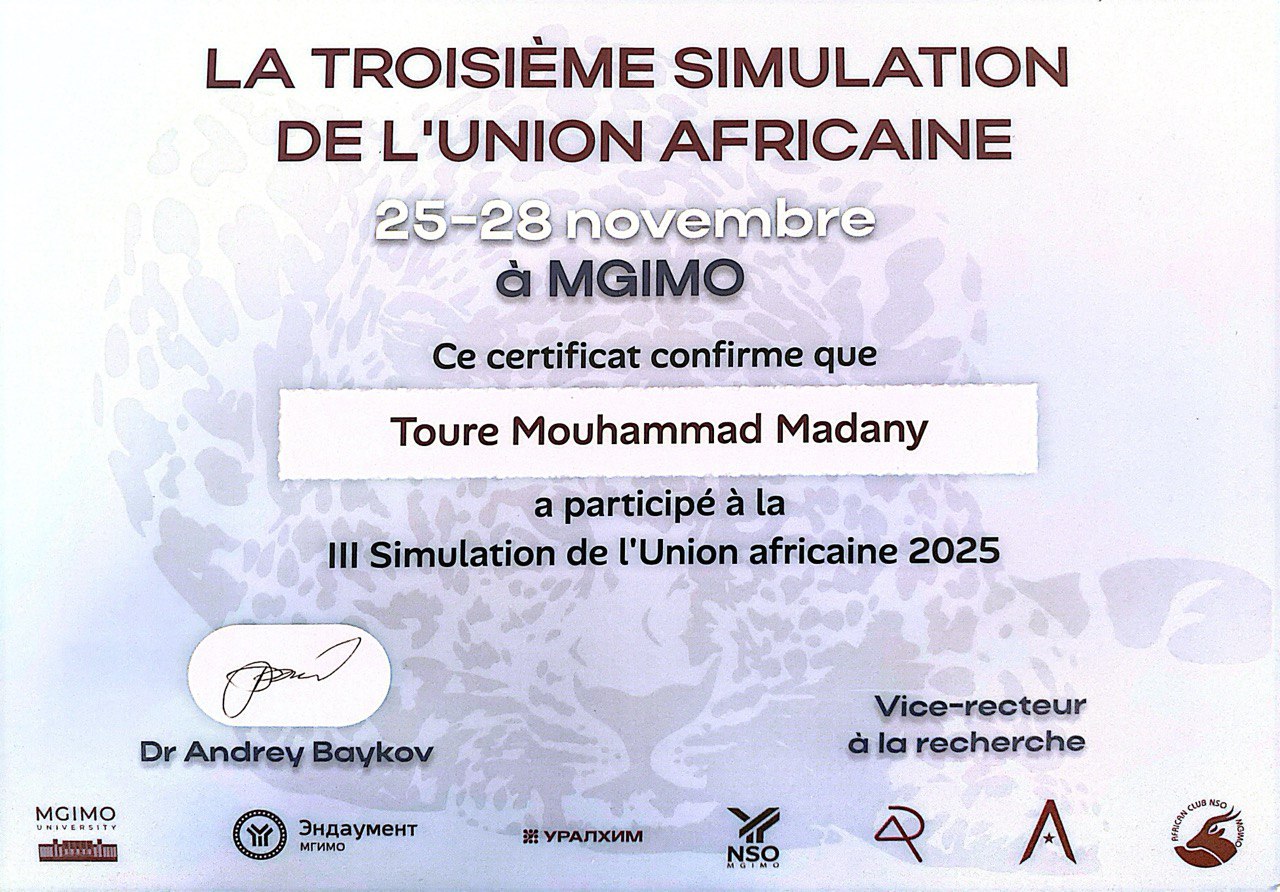 По итогам мероприятия студенты получили сертификаты участников Третьей Международной студенческой Модели Африканского союза, отметив ценный опыт участия в моделировании деятельности международных структур.