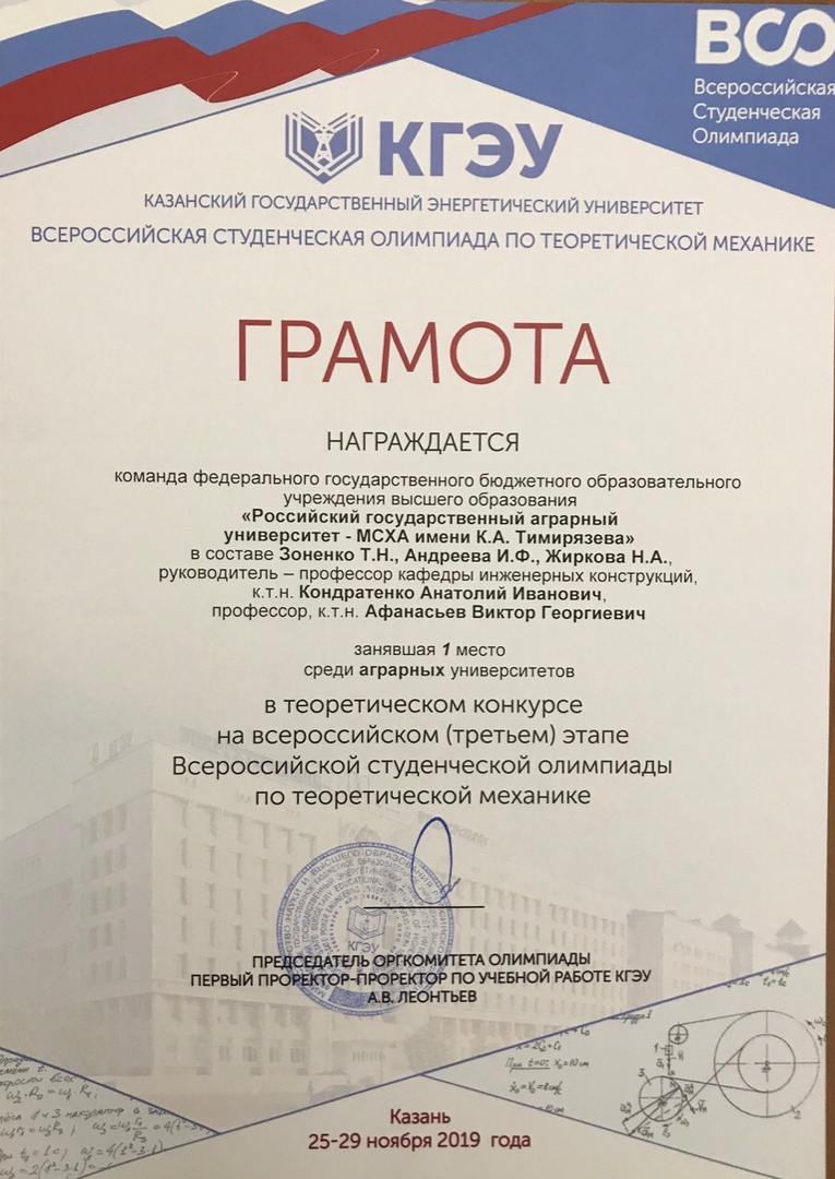 Команда университета блестяще выступила во Всероссийской олимпиаде по теоретической механике в Казани. Наши студенты заняли первое место среди представителей всех аграрных вузов.