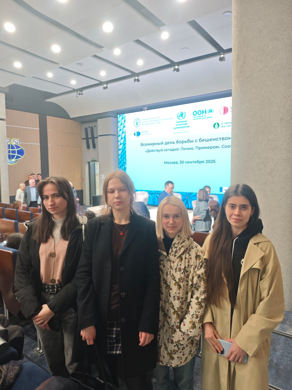 В рамках Всемирного дня борьбы с бешенством, студенты направления подготовки «Ветеринария» кафедры ветеринарной медицины РГАУ–МСХА имени К.А. Тимирязева приняли активное участие в научно-практической конференции «Всемирный день борьбы с бешенством. Действуй сегодня: Лично. Примером. Сообща». Мероприятие прошло на базе Российского университета дружбы народов им. Патриса Лумумбы. Конференция была организована при значительной поддержке представительств Всемирной организации здравоохранения животных (ВОЗЖ), Продовольственной и сельскохозяйственной организации Объединённых Наций (ФАО), Всемирной организации здравоохранения (ВОЗ) и Программы ООН по окружающей среде (ЮНЕП) в России, что подчеркнуло её международный статус и высокое значение.