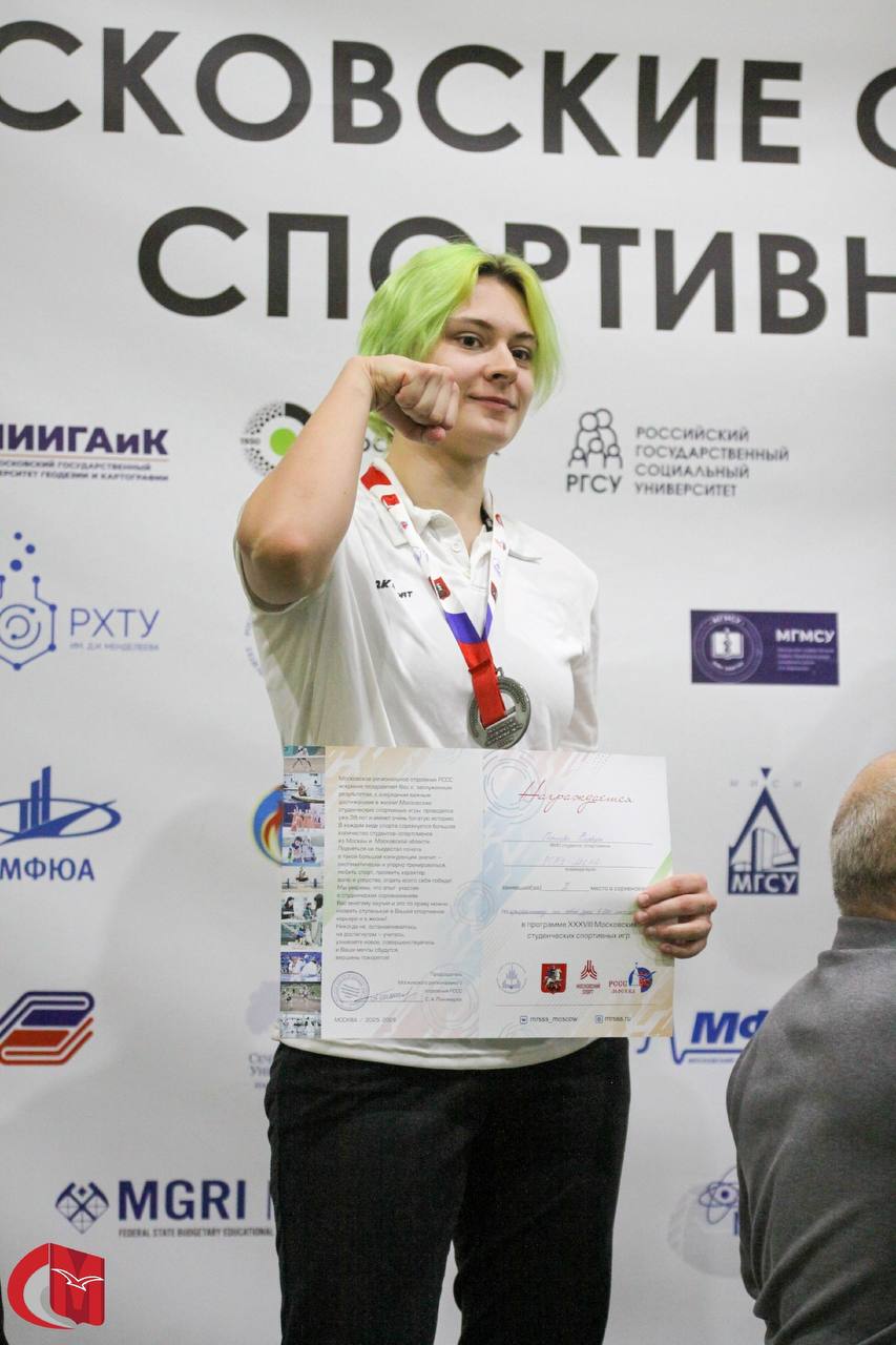 Рассказова Дарья Дмитриевна (Институт мелиорации, водного хозяйства и строительства имени А.Н. Костякова) – абсолютная чемпионка! 1 место правой рукой и 1 место левой рукой.