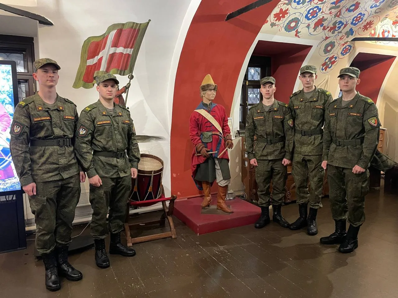 В интерактивной зоне музея каждый желающий мог не только изучить исторические экспонаты, но и попробовать себя в роли стрельца или писца: зарядить мушкет по старинным правилам, освоить игру на старинном барабане, который вёл за собой войска, или погрузиться в мир древнерусской каллиграфии, попробовав письмо по канонам прошлых веков. Эта часть экскурсии позволила студентам не просто узнать о истории, но и прочувствовать её, получив незабываемый опыт.