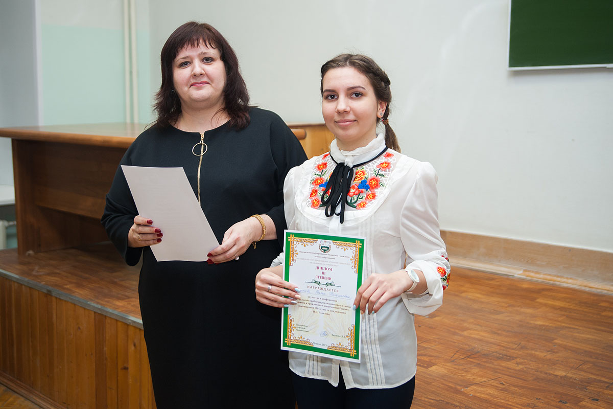 В конкурсном отборе 1 место заняла Полина Васильева, студентка VI курса факультета зоотехнии и биологии, второе - Виктория Щербинина, студентка 2 курса гуманитарно-педагогического факультета, третье – Дарья Чертова, студентка 1 курса гуманитарно-педагогического факультета. Победителям были вручены дипломы, а всем участникам конференции - сертификаты.