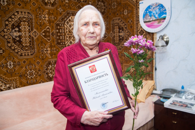8 мая менеджер управления международного сотрудничества Светлана Сухомлинова по поручению руководства и Совета ветеранов университета вручила ветерану Великой Отечественной войны Надежде Малинниковой благодарность президента