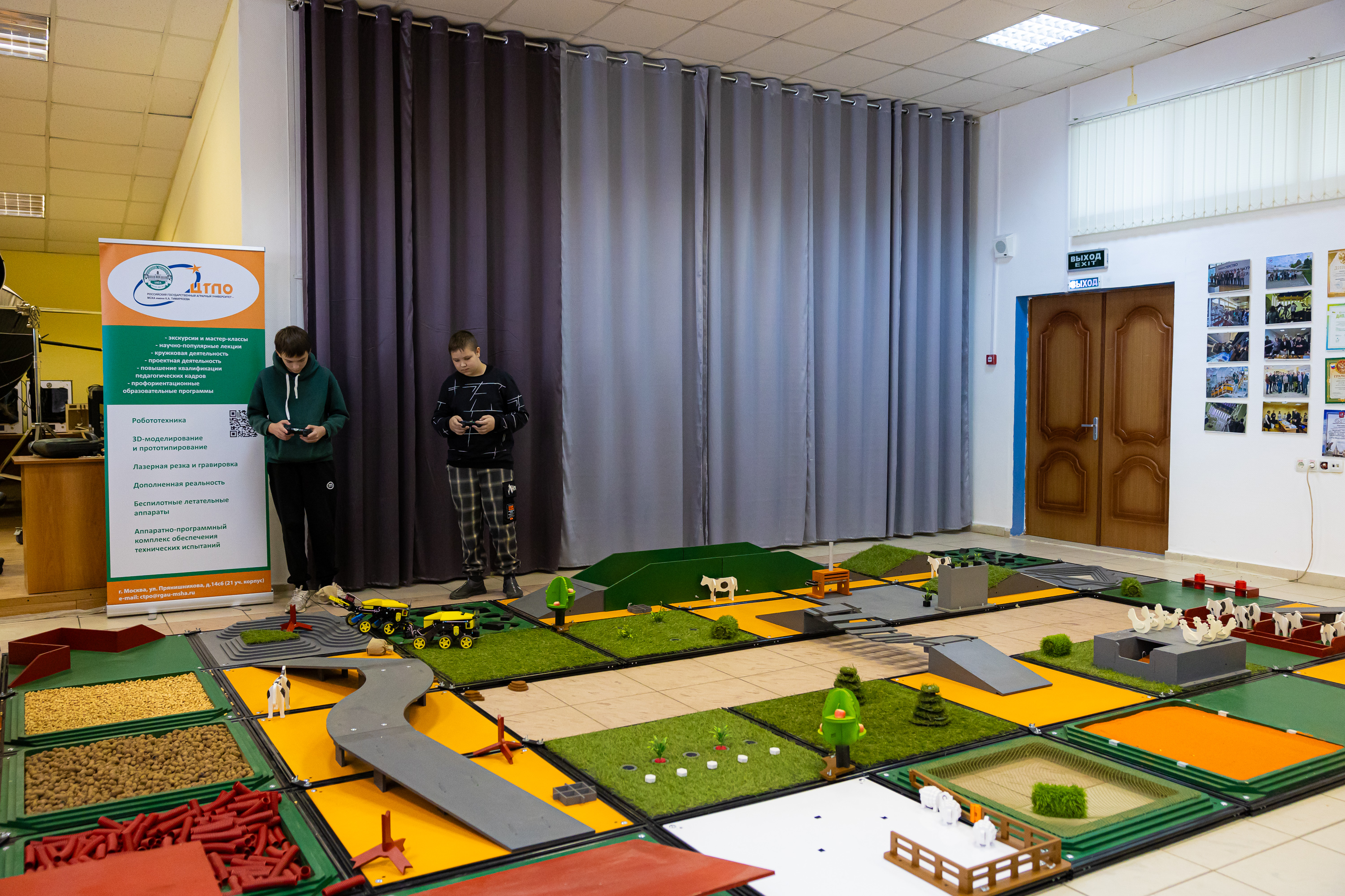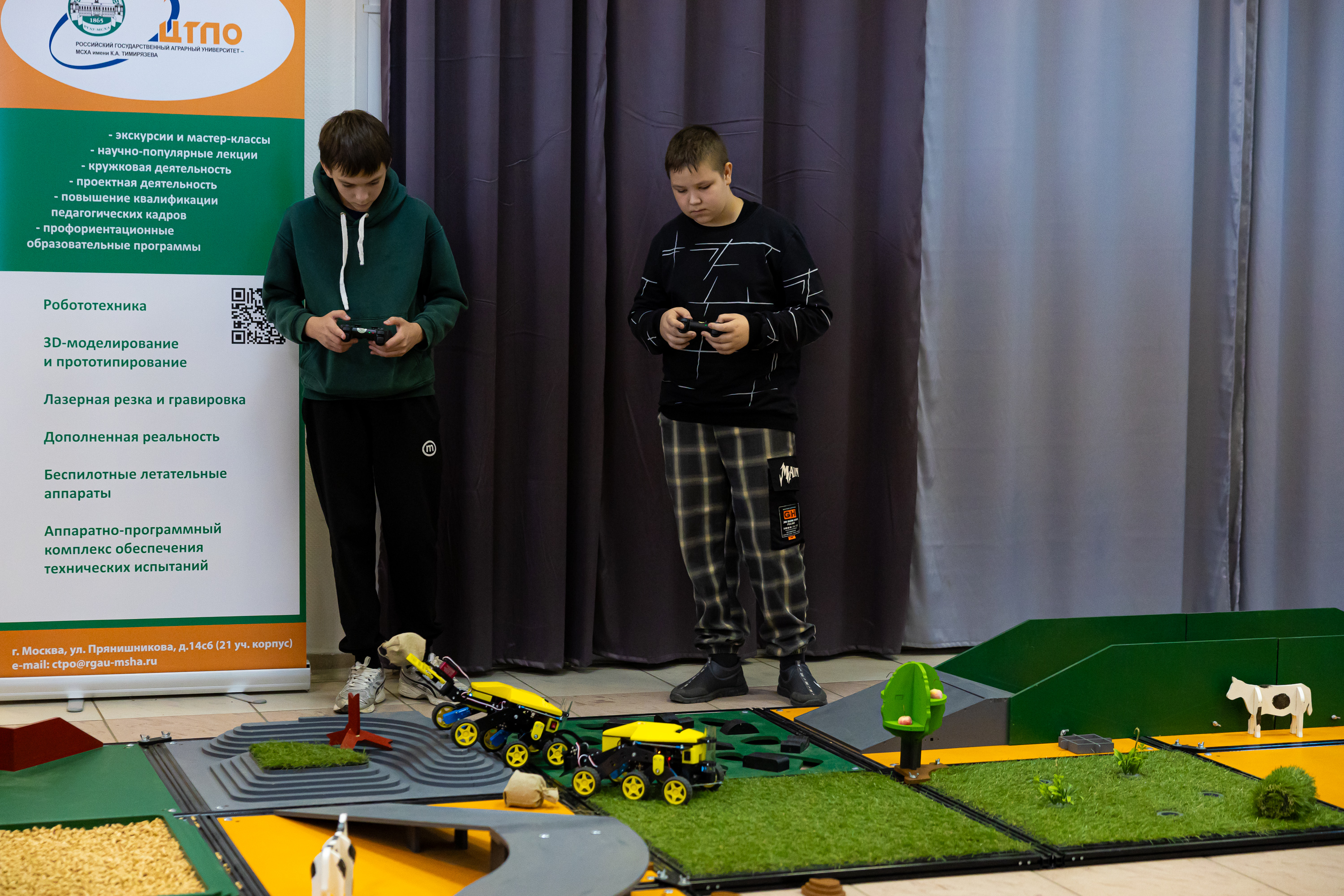 Направления «АгроКоптеры», «АгроРоботы» и «АгроРоверы» проводились на базе Центра технологической поддержки образования РГАУ-МСХА. Участники первого направления демонстрировали мастерство управления квадрокоптером – самостоятельно разрабатывали полётное задание, программировали квадрокоптер и с его помощью проводили аэрофотосъёмку для последующего анализа.