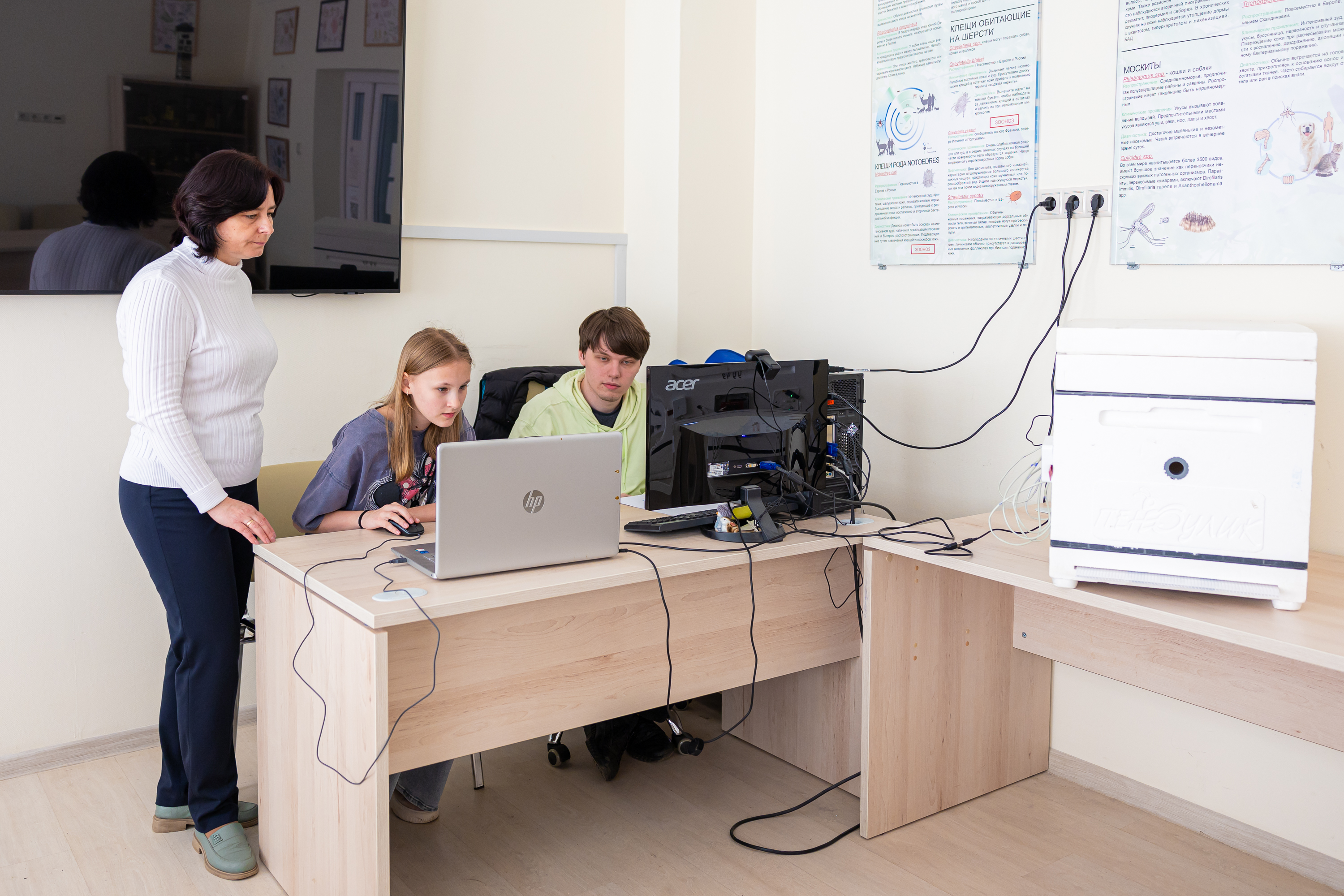 С применением цифровых технологий в традиционном пчеловодстве познакомились участники направления «ДоброПчел». С помощью цифровых карт участники определяли лучшие места для пасек и методы спасения пчел от воздействия пестицидов. Используя архивы данных и онлайн-доступ к умным ульям, школьники моделировали ситуацию и формировали командное решение. Также в рамках направления конкурсанты проводили сборку умного улья. Номинация проводилась на базе кафедры аквакультуры и пчеловодства.