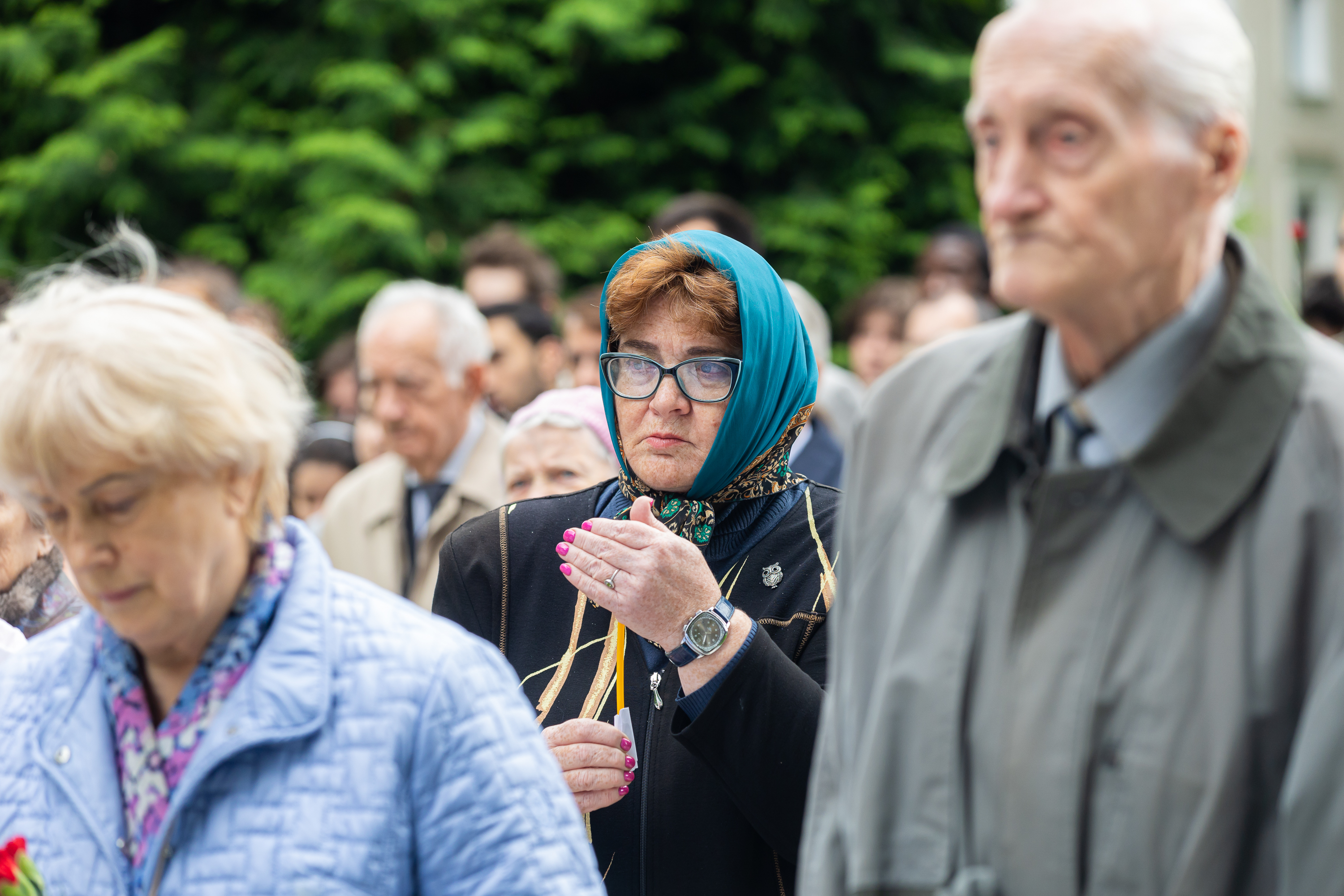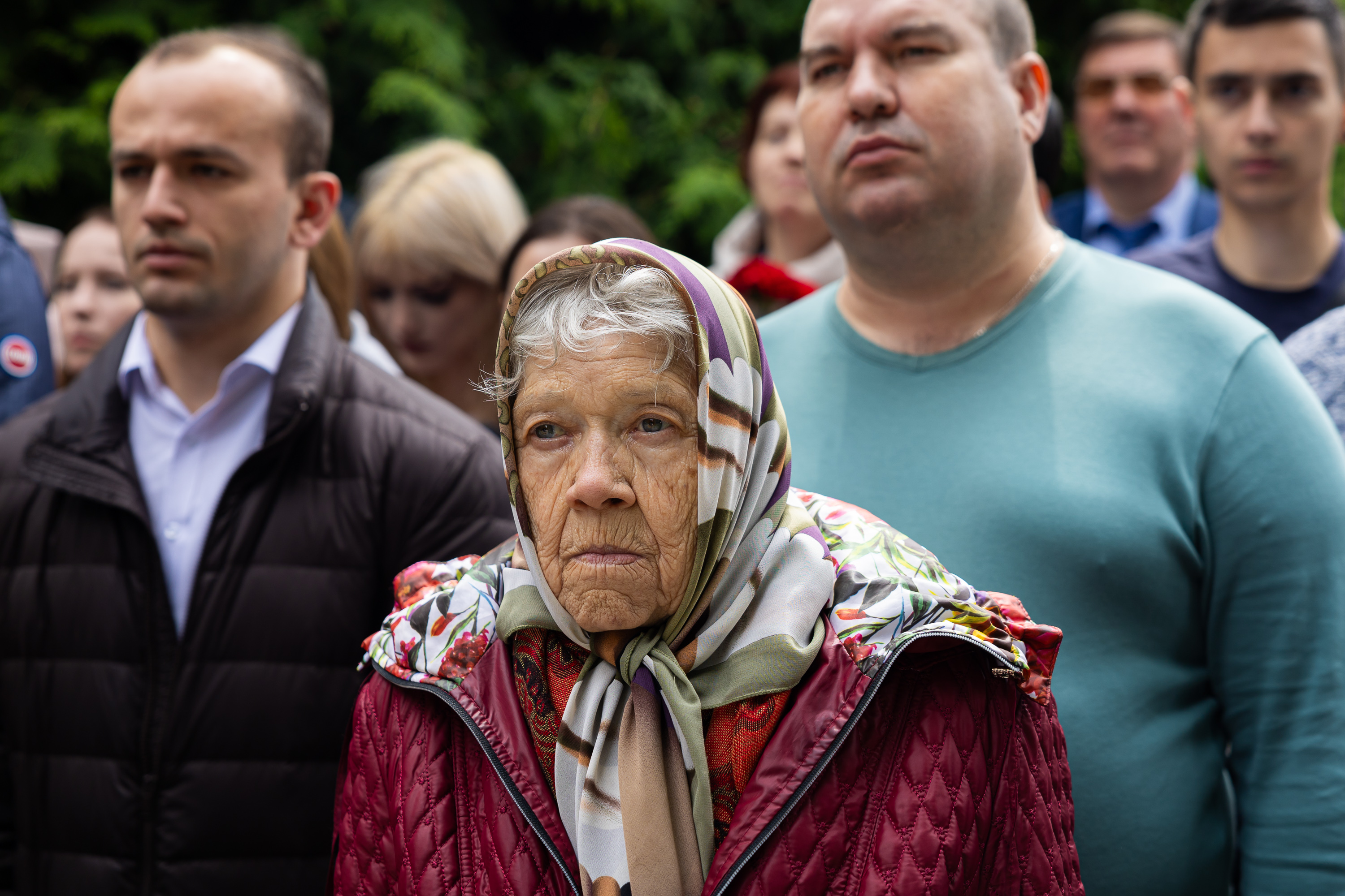 Затем состоялась Минута молчания, присутствующие склонили головы вспоминая миллионы погибших, тех, кто не вернулся с полей сражений, кто погиб в оккупации, в концлагерях, умер от голода и лишений.