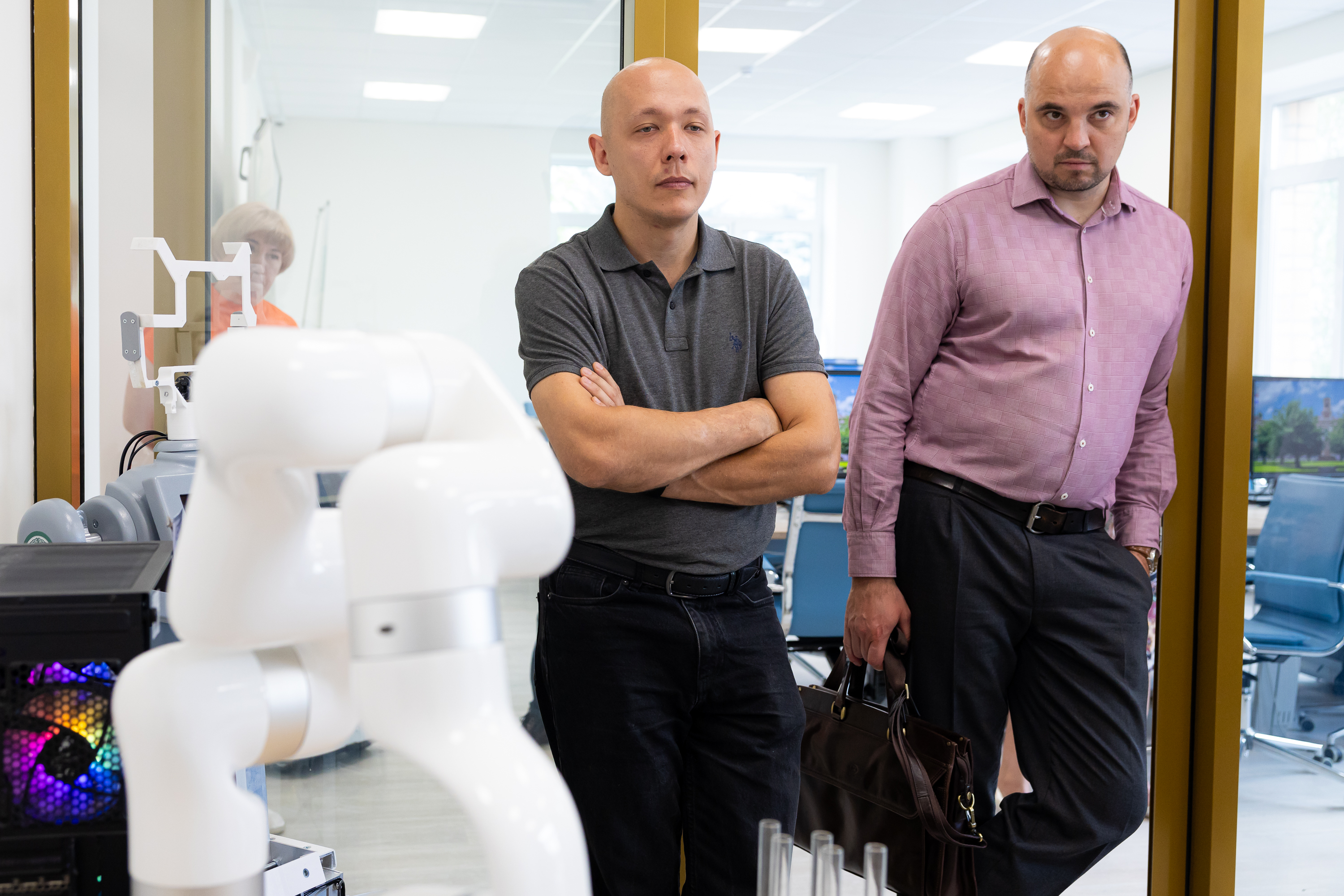 15 Июль / 2025Делегацию МФТИ возглавил ректор Дмитрий Викторович Ливанов. В ее состав также вошли советник ректора по технологическому предпринимательству Андрей Александрович Кривенко, директор Института искусственного интеллекта МФТИ Азамат Хасанбиевич Жилоков и ведущие ученые института.