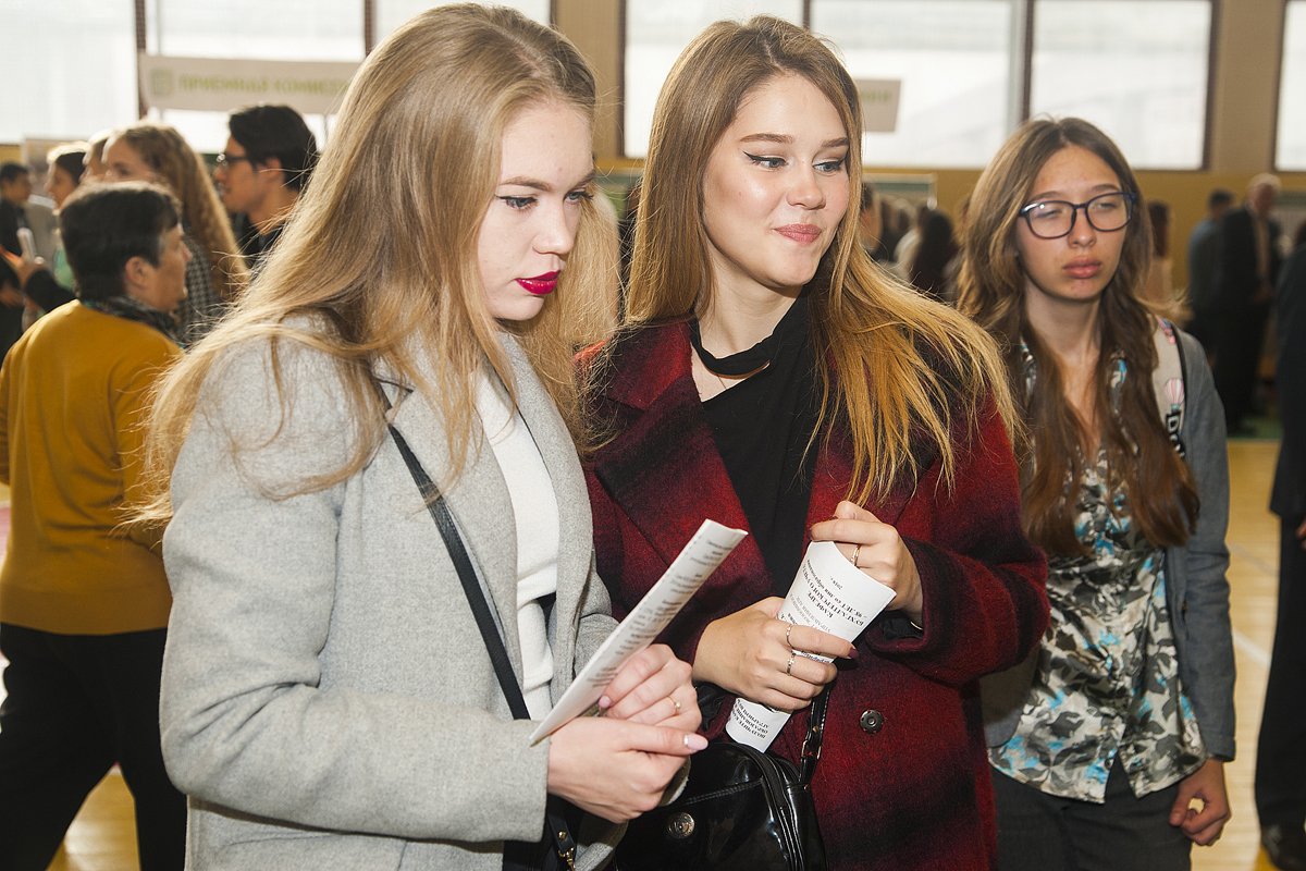 29 сентября в Тимирязевку спешили старшеклассники с родителями. На встречу с ними пришли и. о. ректора Валерия Чайка, председатель Совета ветеранов Юрий Агирбов, председатель приемной комиссии Сергей Акчурин, преподаватели и сотрудники университета