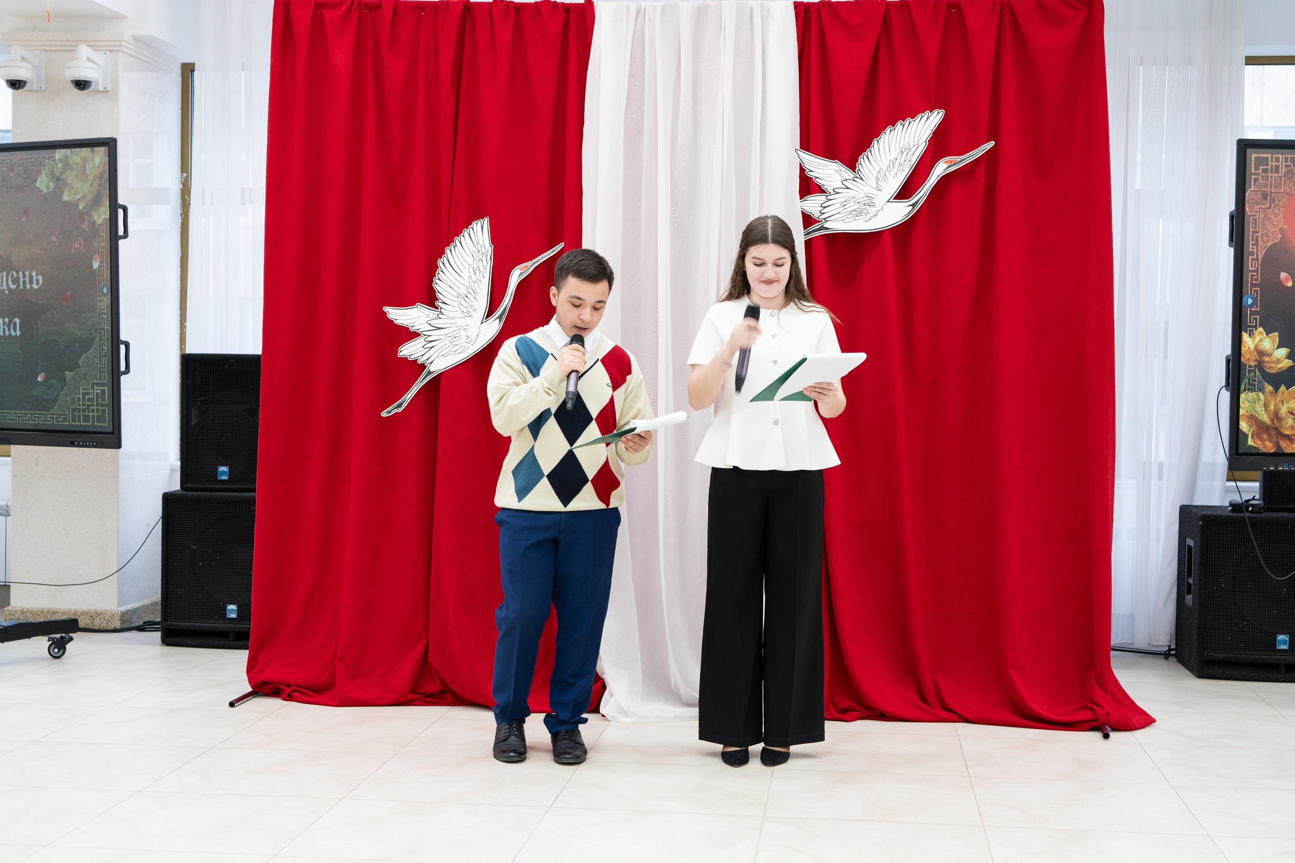 Праздничное событие открылось под мелодичные звуки традиционной китайской музыки в современном исполнении. Ведущие – студенты Илья и Дарья – поприветствовали всех присутствующих на двух языках, задав тон атмосфере дружбы и взаимного интереса.