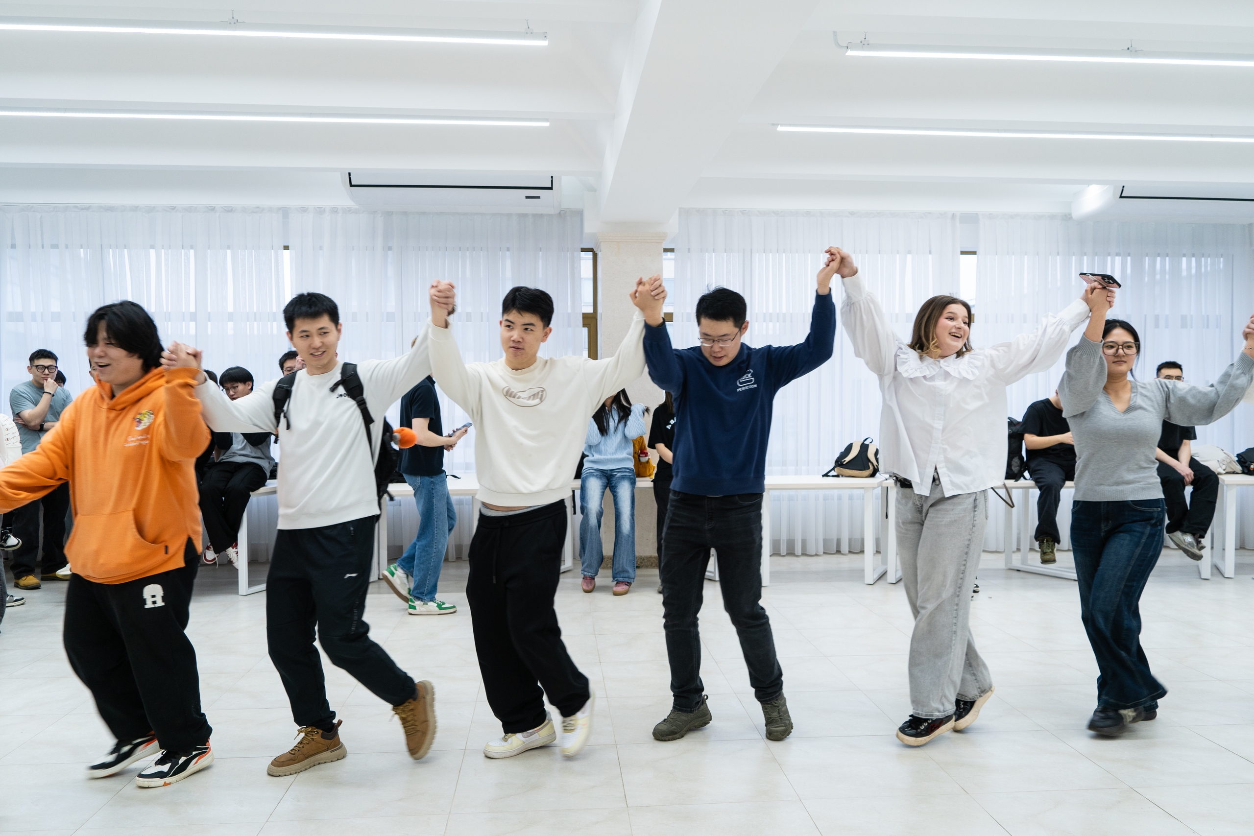 Кульминацией праздника стал масштабный интерактив – «Круг дружбы». Под руководством ведущих студенты, преподаватели и гости мероприятия объединились в общий хоровод, символизирующий единство, гармонию и открытость к диалогу. Этот яркий момент наглядно показал: несмотря на языковые и культурные различия, стремление к взаимопониманию объединяет людей.