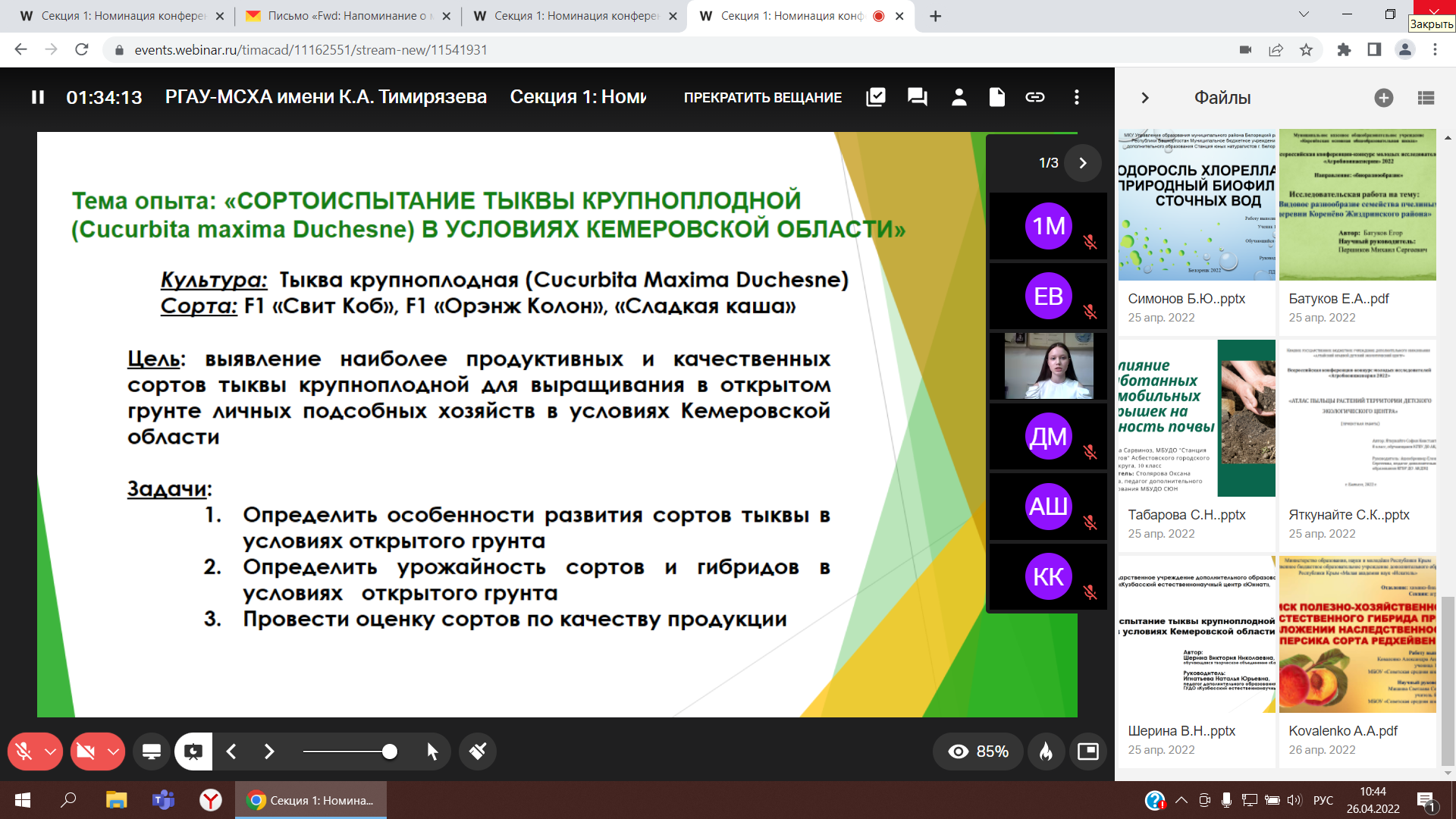 Соревнование молодых исследователей проводилось в два этапа. На заочном этапе, проходившем с 1 февраля по 31 марта, участники представили конкурсные работы в рамках 12 аграрных и агроинженерных направлений. Среди них – селекция, генетика и биотехнологии растений, экология, садоводство, агрономия, почвоведение, сельскохозяйственное оборудование и многое другое.