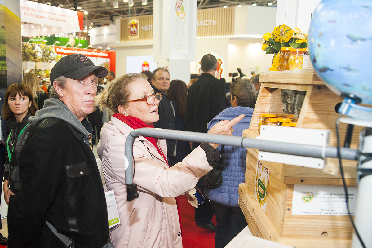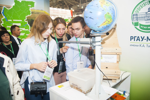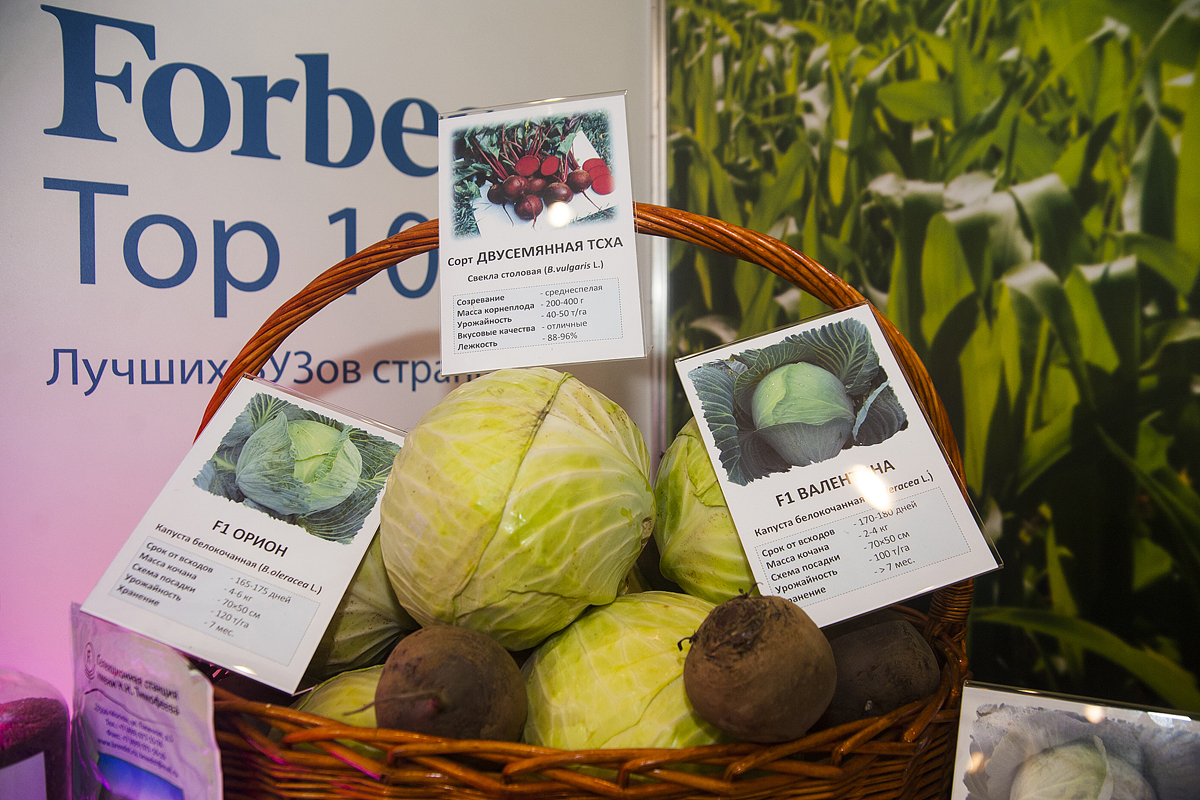 Пристальное внимание участников и посетителей престижной выставки приковано к стенду Тимирязевской академии. Делегация ученых университета во главе с и.о. ректора Валерией Чайкой представили более 20 инновационных разработок и селекционных достижений. Среди них – сорта и гибриды цветочных культур, белого люпина, льна, ячменя, тритикале, мискантуса, устойчивые к нескольким видам заболеваний и вредителям сорта овощей, которые относятся к так называемому борщевому набору, яблоки урожая Мичуринского сада.